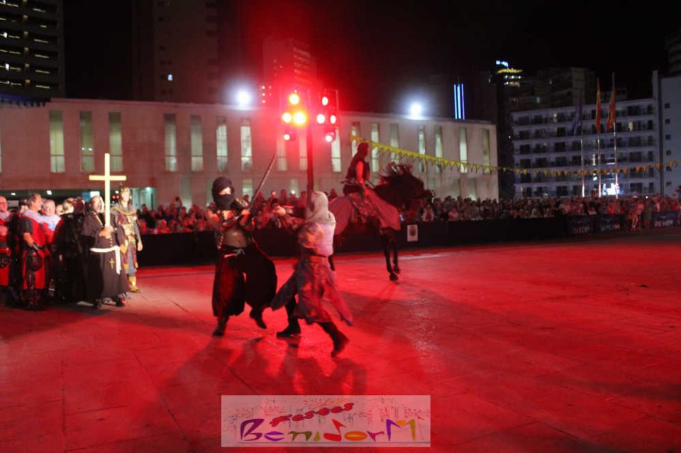 Las fiestas de Moros y Cristianos de Benidorm ha proseguido este viernes por segundo día. Tras el ataque que tuvo lugar en la noche del jueves, las tropas de la cruz han vuelto con el objetivo de reconquistar la plaza.