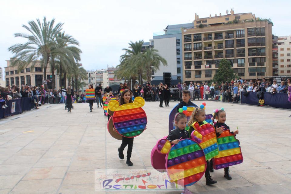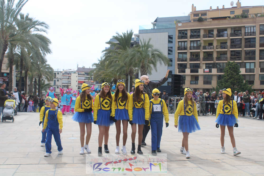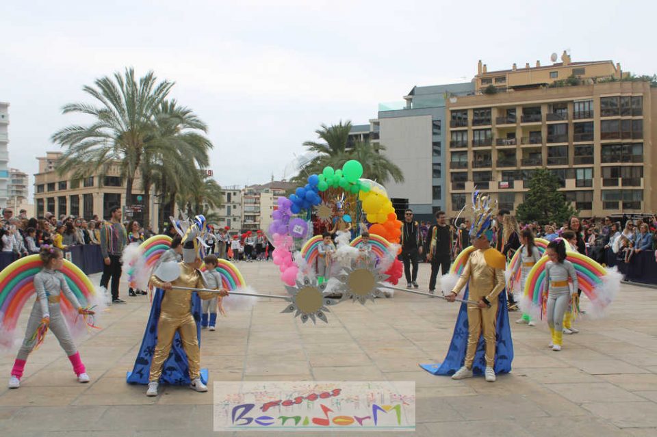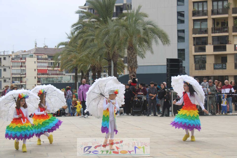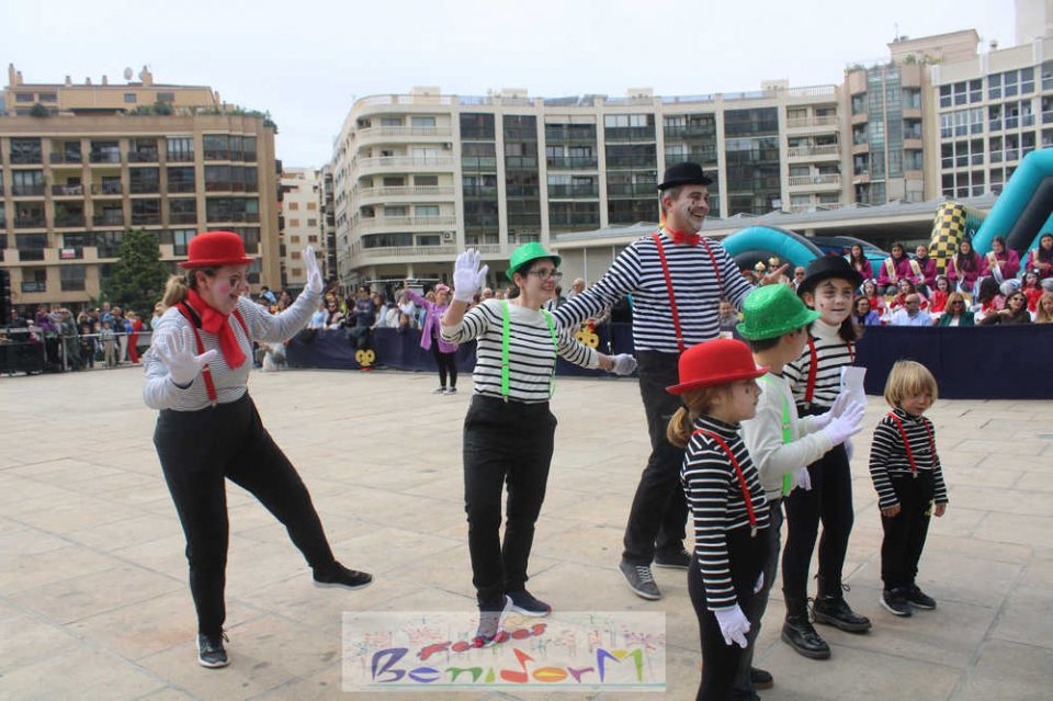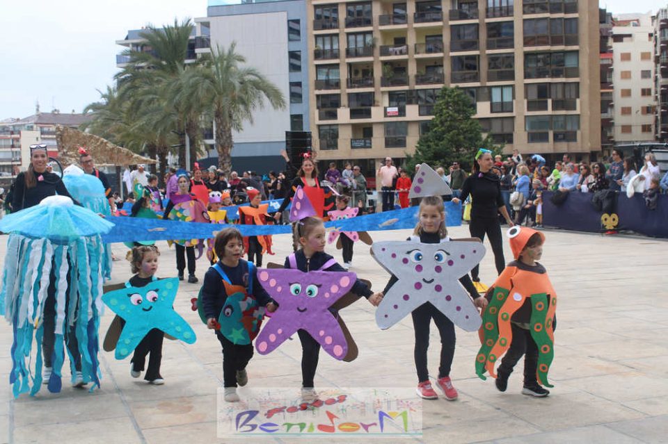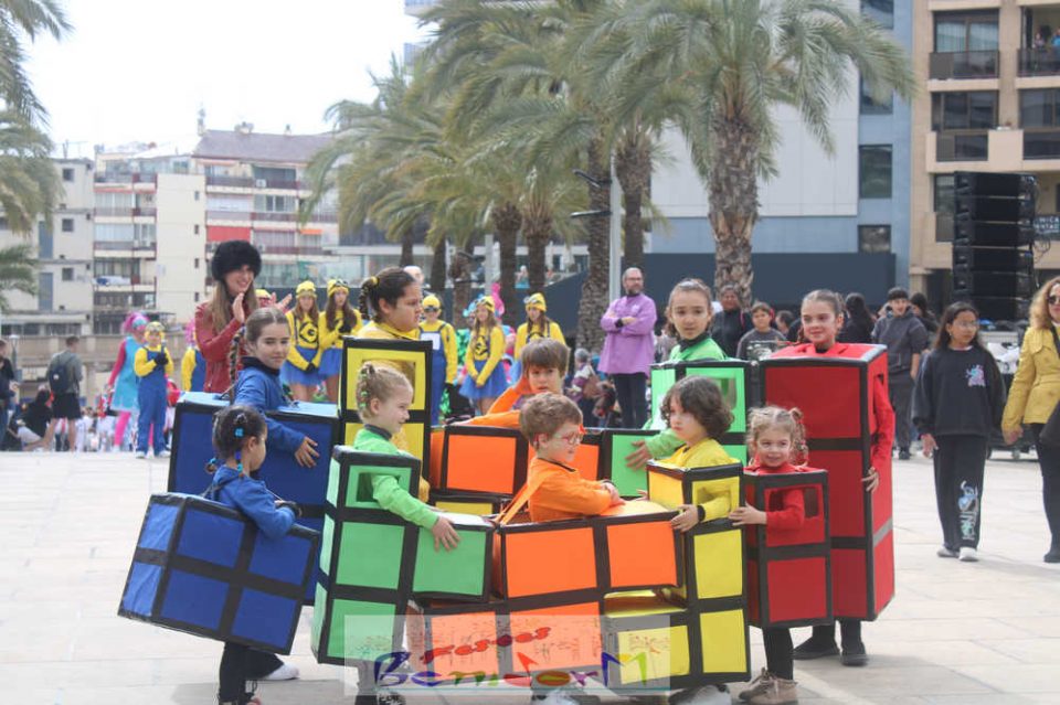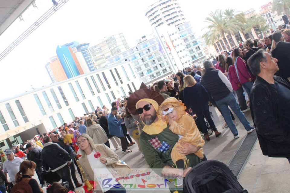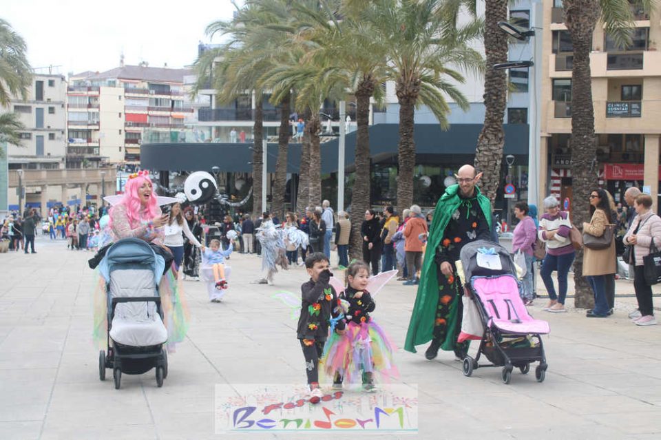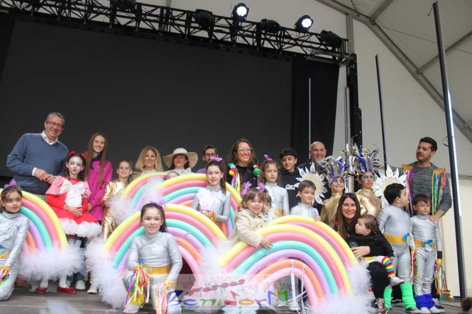 Cientos de niños y mayores han disfrutado ayer sábado por la mañana del Carnaval infantil de Benidorm, que ha llenado de ingenio, diversión y colorido las calles más céntricas de la ciudad, con un vistoso desfile organizado por la Associació de Penyes Verge del Sofratge. El alcalde de la ciudad, Toni Pérez, y la concejal de Fiestas, Mariló Cebreros, junto a numerosos miembros de la Corporación municipal y el presidente del colectivo peñista, Jonathan López, han recibido en la plaza de SS MM los Reyes de España a todos los participantes en esta cabalgata multicolor, que ha seguido también muchísimo público durante todas las fases del recorrido, después de que la pasada semana tuviera que ser aplazada debido a la previsión de fuertes lluvias.