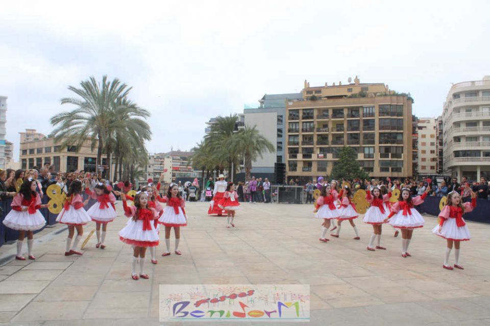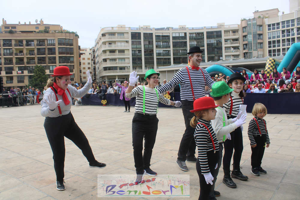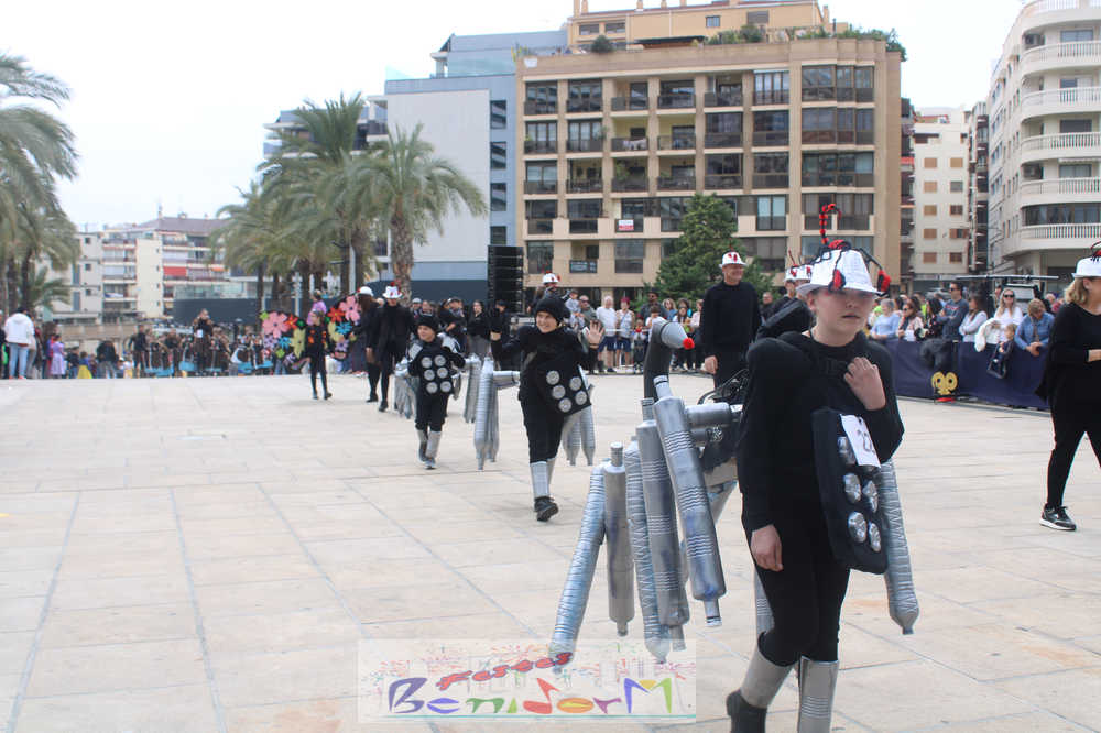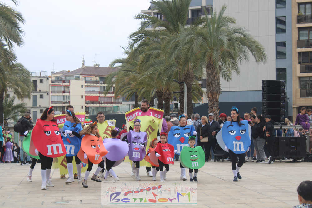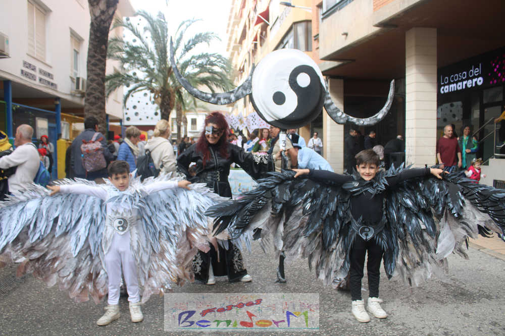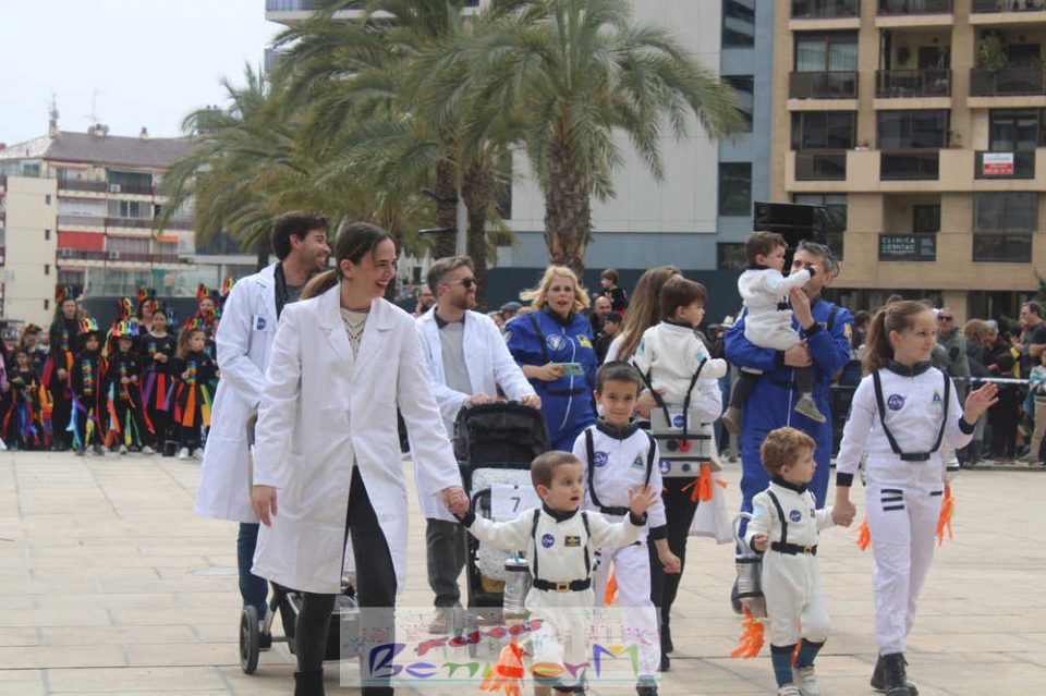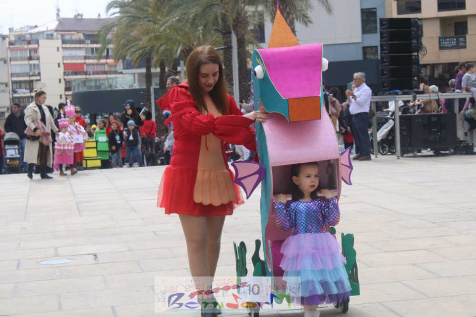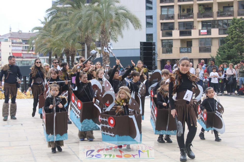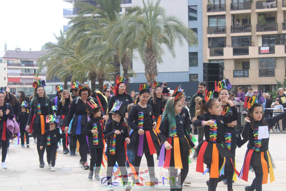 Cientos de niños y mayores han disfrutado ayer sábado por la mañana del Carnaval infantil de Benidorm, que ha llenado de ingenio, diversión y colorido las calles más céntricas de la ciudad, con un vistoso desfile organizado por la Associació de Penyes Verge del Sofratge. El alcalde de la ciudad, Toni Pérez, y la concejal de Fiestas, Mariló Cebreros, junto a numerosos miembros de la Corporación municipal y el presidente del colectivo peñista, Jonathan López, han recibido en la plaza de SS MM los Reyes de España a todos los participantes en esta cabalgata multicolor, que ha seguido también muchísimo público durante todas las fases del recorrido, después de que la pasada semana tuviera que ser aplazada debido a la previsión de fuertes lluvias.