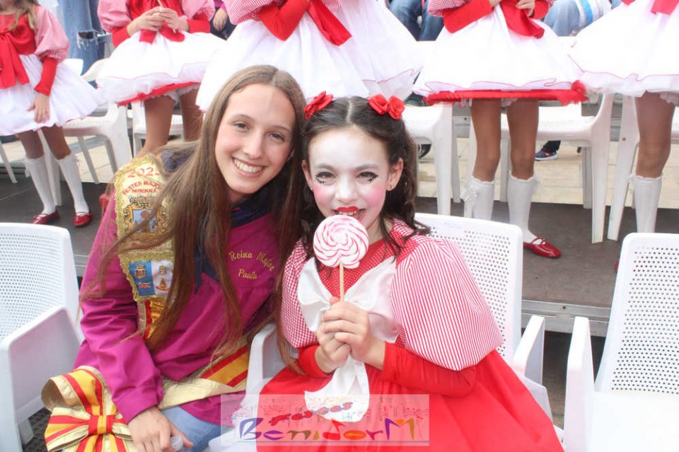 Un enorme payaso ha sido el encargado de abrir el desfile de Carnaval de los más pequeños junto a reina infantil de las Festes Majors Patronals 2025, Aitana Pérez Guitiérrez, que ha desfilado fuera de concurso junto a su corte de honor con un elaborado disfraz de muñecas de cuerda. Con ellas también ha participado en el desfile la presidenta de la Comissió, Susana Martínez, y una vez en la plaza se han unido en la tribuna oficial a la reina mayor, Paula Pascual Sánchez, y sus damas.