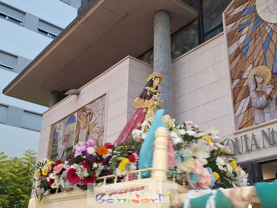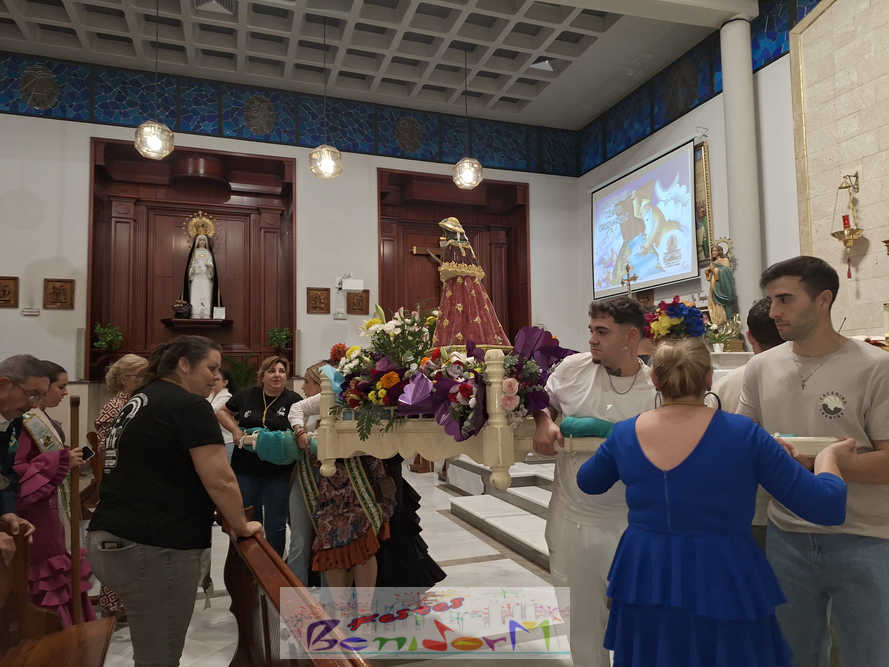 Ayer, a las 19:00 horas, la Casa de Andalucía en Benidorm puso el broche final al Rocío Chico con el tradicional traslado de la Virgen a la iglesia de la Almudena.
