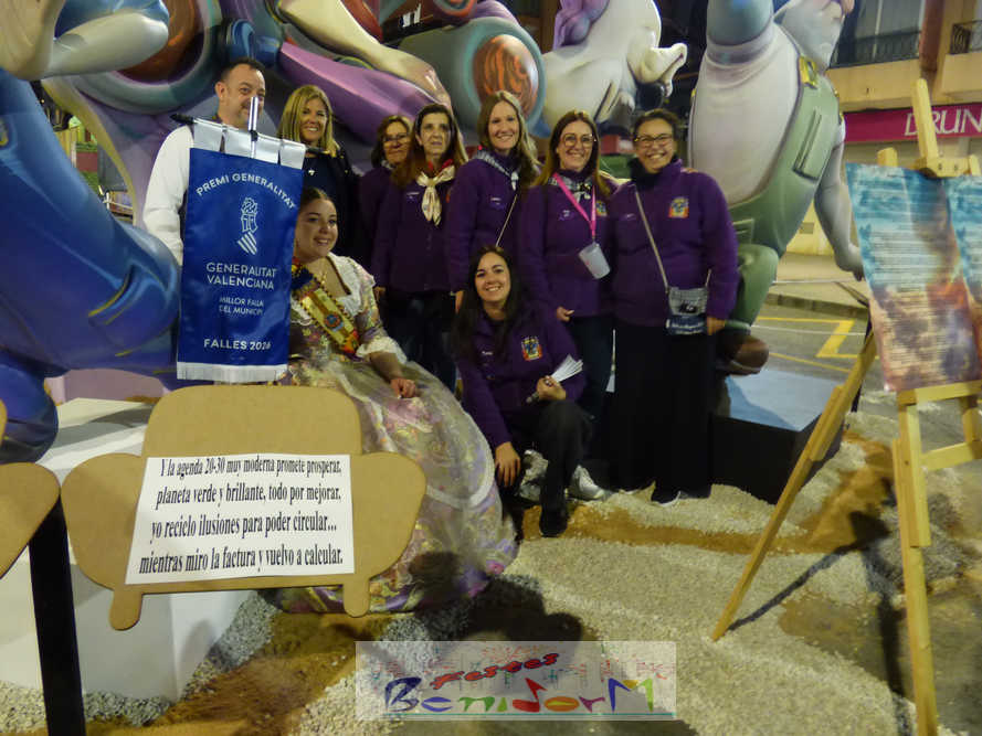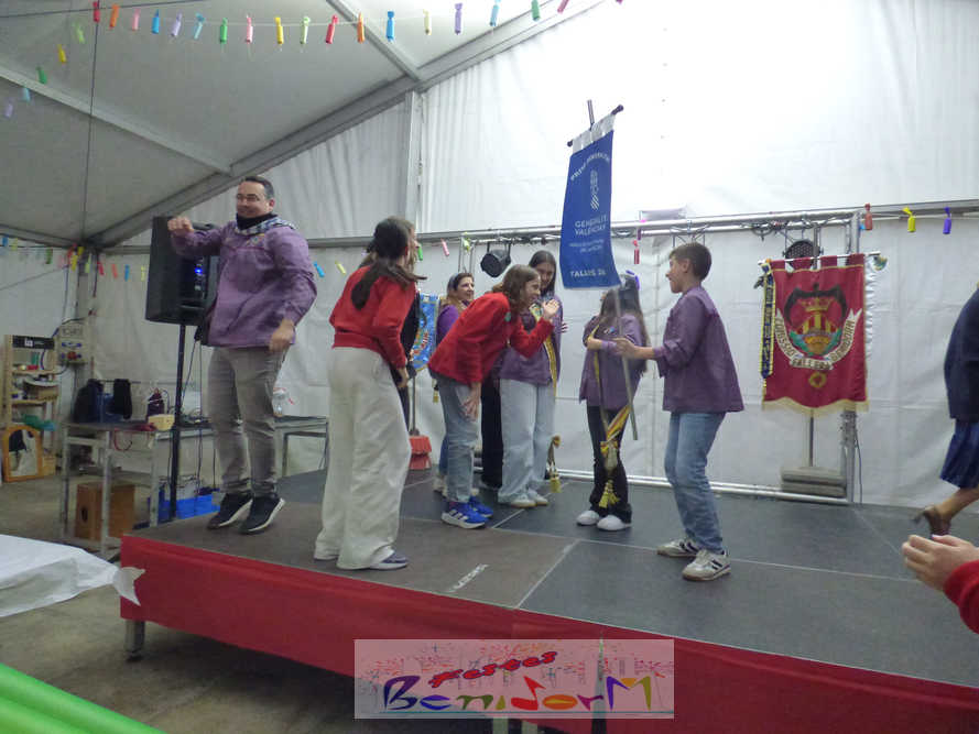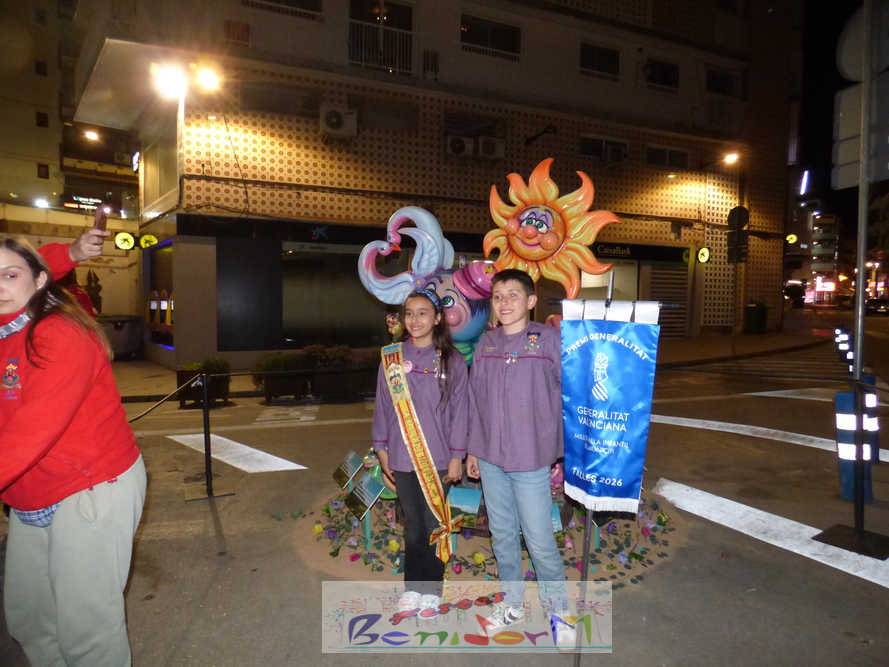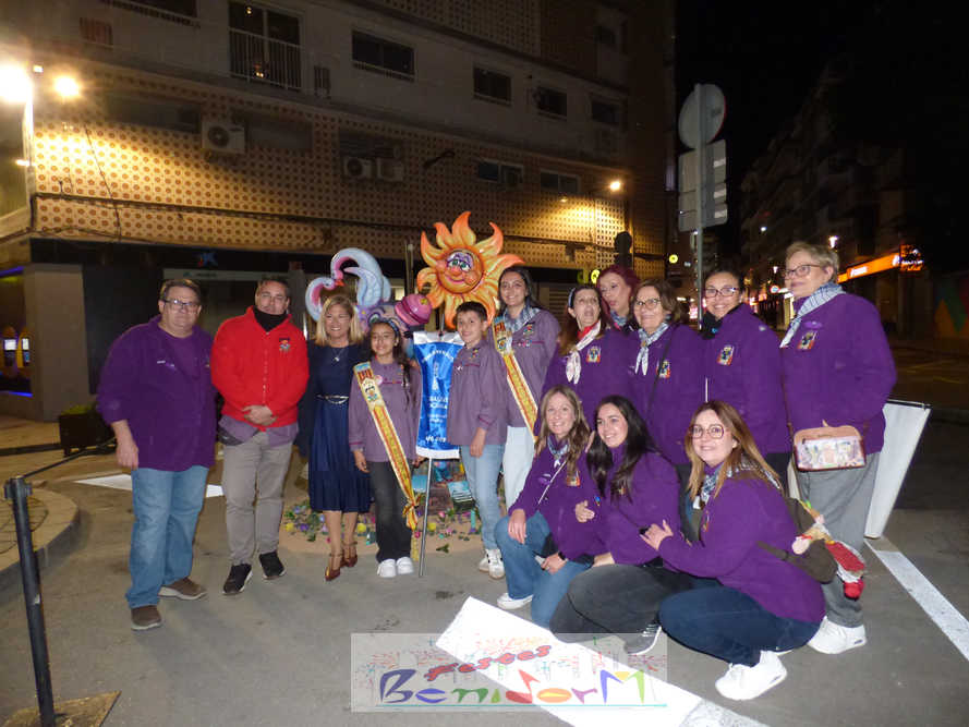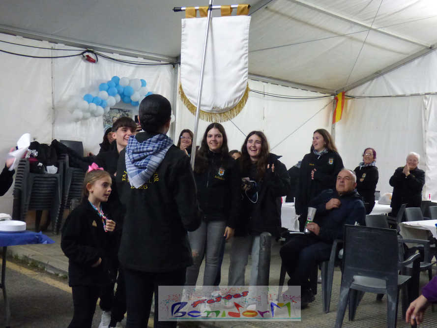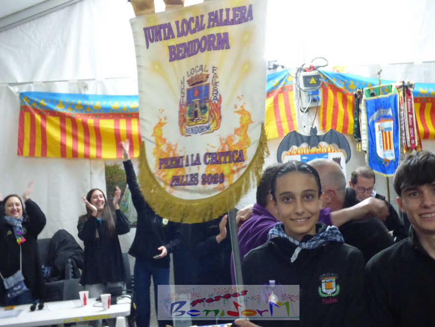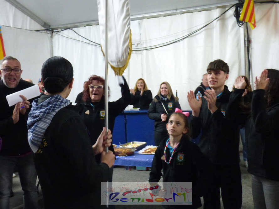 Estos banderines fueron recogidos por los máximos representantes de cada una de las comisiones: la fallera mayor y el presidente de la Falla Els Tolls, Teresa Peris y Wenceslao Peris; la fallera mayor infantil de la Falla Rincón de Loix, Nahia Fernández, junto a su presidente infantil, Samuel Cortés, y su presidente, Javier Rico; y la fallera mayor infantil y presidente infantil de Benidorm Centro, Thais Jiménez y Carlos de Torres, acompañados de la fallera mayor Jaira Rodríguez, y el presidente, Antonio de Torres.