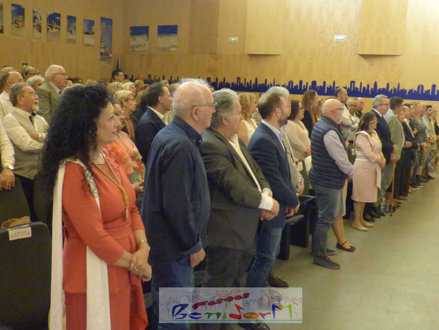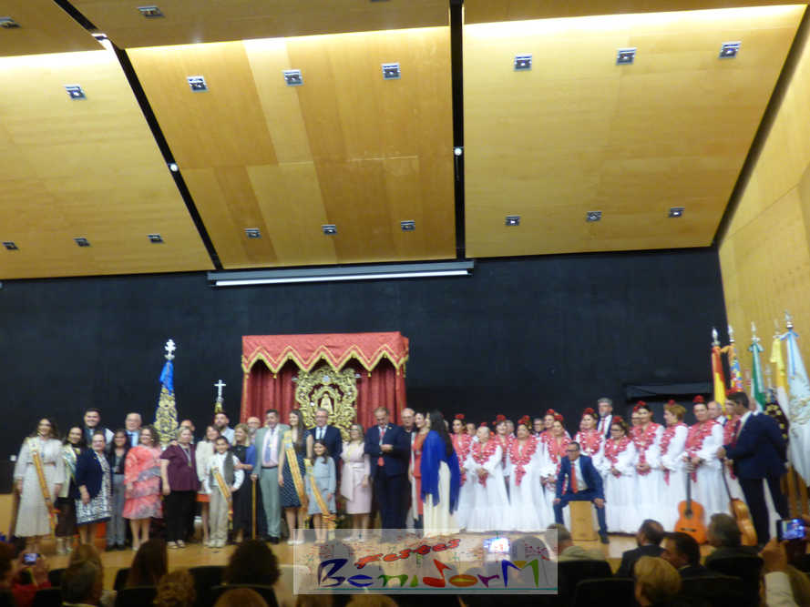 El pregonero no dejó pasar la ocasión para recordar cómo la Hermandad del Rocío trajo a Benidorm la primera imagen de la Reina de las Marismas y la estrecha relación de fe que une a benidormenses, almonteños y onubenses para terminar su declamación con la Salve Rociera acompañado por todo el público en puesto en pie.