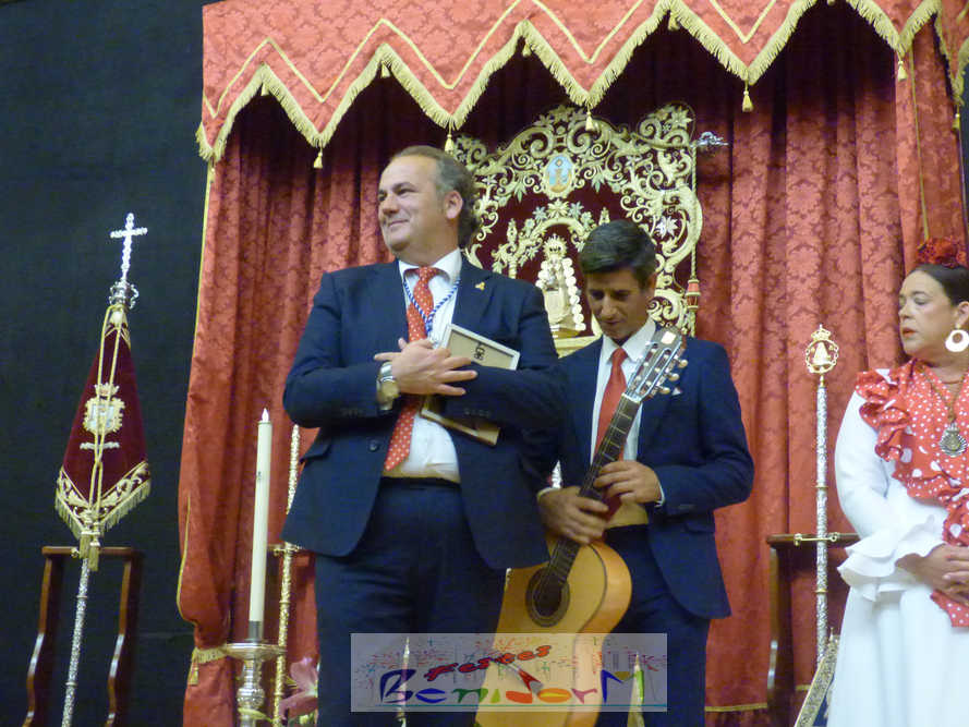 También se ha dirigido al coro extrañándose y en broma que no hubieran interpretado ‘Blanca y azul’, tema popularizado por los Marismeños, para incidir, una vez más en aquello que une a Benidorm con el Rocío. “Blanca y azul es la bandera de Huelva y blanca y azul es la bandera de Benidorm y la de Alicante”.