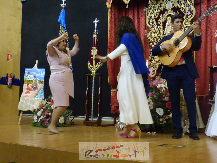 Pasadas las 18.30, en la sala municipal resonaba el tamboril y la flauta rociera para anunciar una de las fiestas que más han arraigado en Benidorm y que traslada en el imaginario popular a este enclave mediterráneo hasta la pequeña aldea de Huelva donde se venera a la Blanca Paloma.