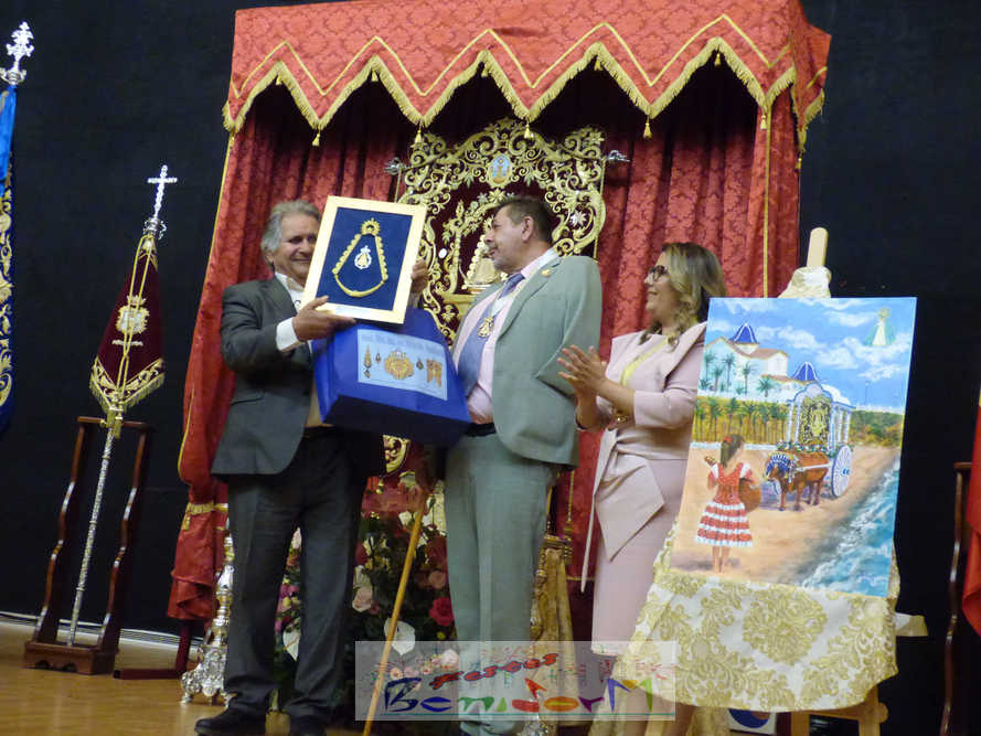 Tras desvelar el cartel, la Hermandad ha entregado al autor de la obra un recuerdo y también al realizador del cartel del 2025, José M. Albero, que no pudo asistir al evento del año pasado.