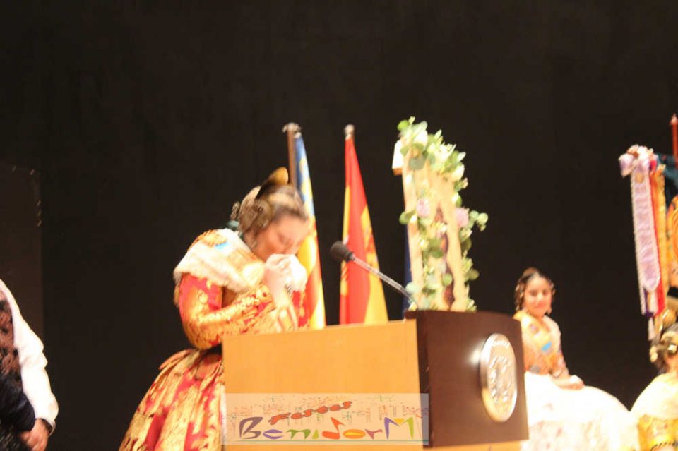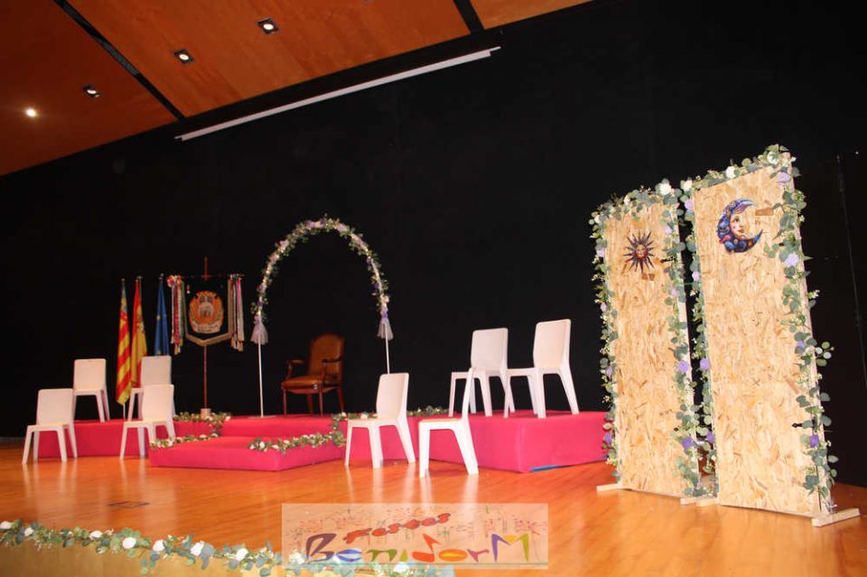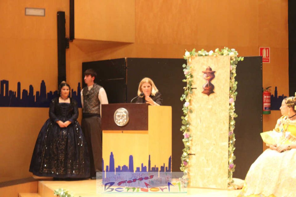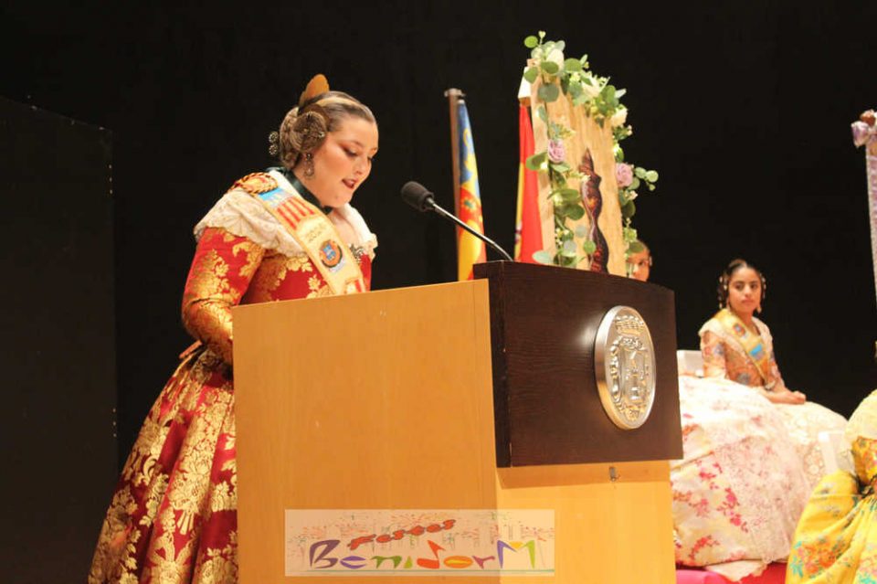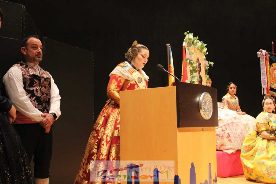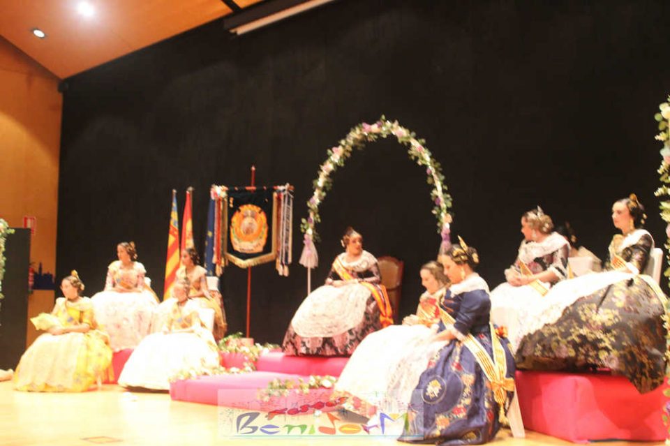 El evento comenzó con la imposición de bandas a Selena Cortes, Alicia Alcántara, Nadia León, Aitana Ballester, Aida Peña y Trinidad Fuster acto seguido se le hizo entrega de un ramo de flores a Noemí y Alejandra por parte de los presidentes de la Comisión, David y Wenceslao y después, David acompañó a Alejandra para que dijera unas palabras y tras ella, Wenceslao acompaño a Noemí. Ambas dedicaron unas palabras llenas de cariño y agradecimiento