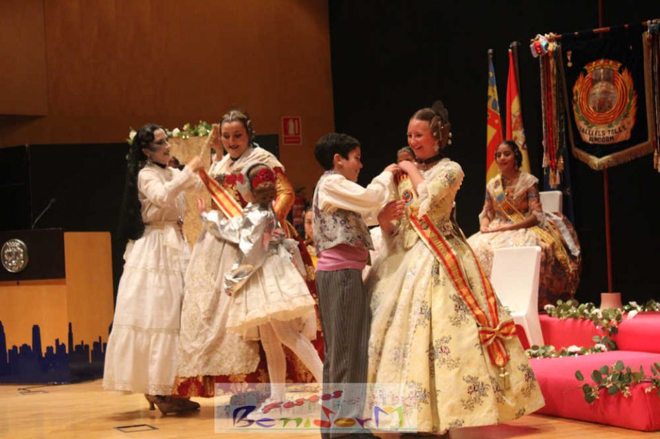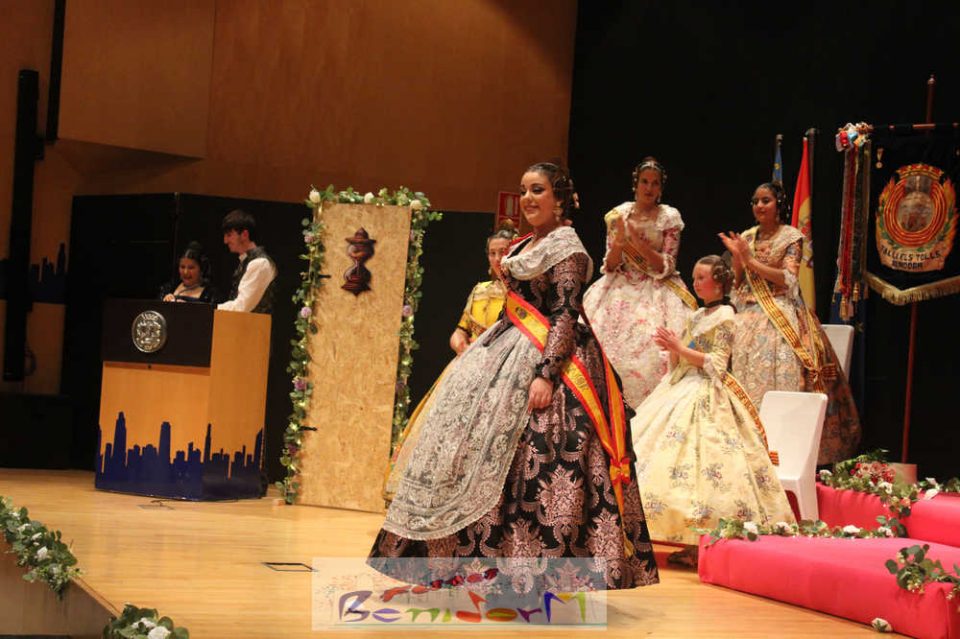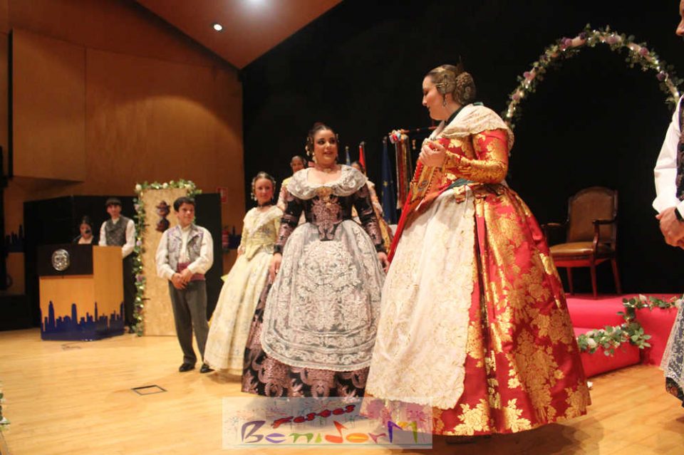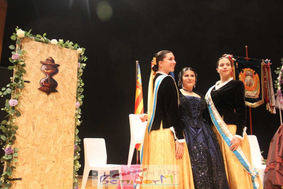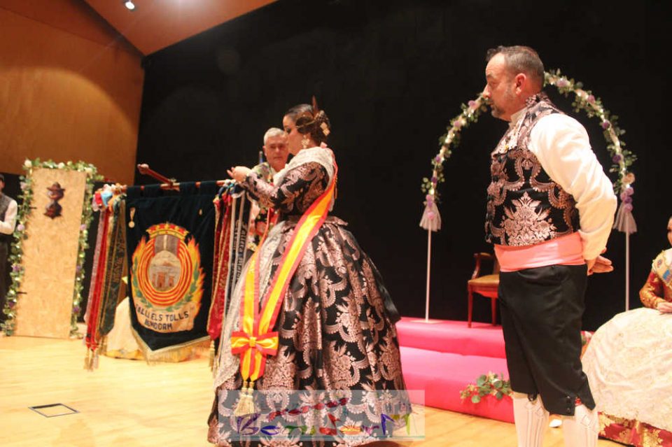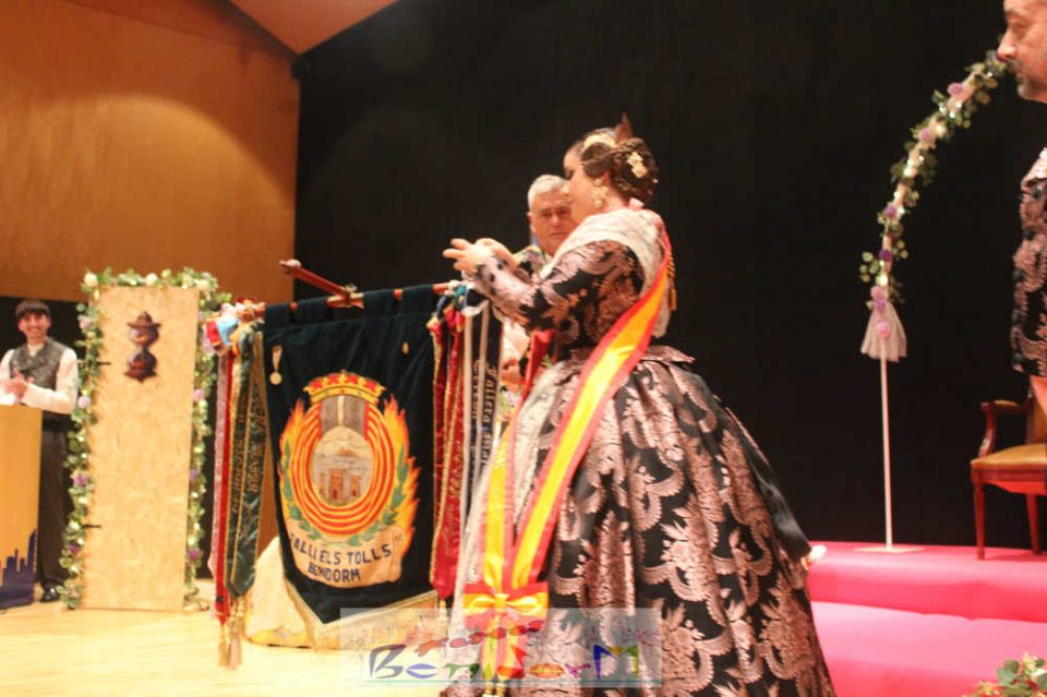 El salón de actos del Ayuntamiento de Benidorm acogió ayer por la tarde un emotivo acto en el que la Falla Els Tolls despidió a sus Falleras Mayores 2023-2024, Noemí y Alejandra, y dio la bienvenida a su nueva máxima representante, la señorita Teresa Peris Molina, como Fallera Mayor de 2025.