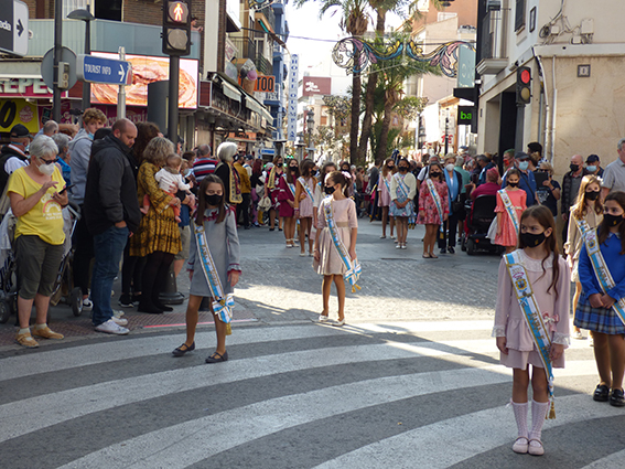 A las 12.15 horas ha comenzado la Entrada de Bandas de Música, cuyo recorrido ha partido desde la plaza de San Jaime y ha pasado por las principales calles del centro de Benidorm acompañadas por las Reinas y sus Cortes de Honor, abanderado, mayorales de honor, autoridades y Comissió de Festes. En la Entrada han tomado parte la Colla de Xirimiters de La Marina, la Societat Musical La Lira Relleuense, la Unión Musical La Aurora de Sella, la Unió Musical de Polop de la Marina, la Societat Musical La Nova de Benidorm, la Societat Musical L’Illa de Benidorm y la Unión Musical de Benidorm.
