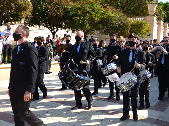 Las bandas se han concentrado a las 13 horas en el auditorio Julio Iglesias en donde han interpretado diferentes pasodobles para dar la bienvenida a las Festes. Una vez allí ha tenido lugar la interpretación conjunta del pasodoble ‘Festa en Benidorm’ bajo la dirección del maestro D. Rafael Domenech Pardo, autor de la obra, que ha sido acompañado con las palmas de una gran multitud de asistentes al auditorio.