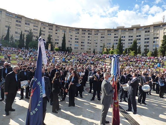 Las Festes Majors Patronals de Benidorm de 2021 han dado comienzo de manera oficial este mediodía con el Volteo General de Campanas que ha estado acompañado de un gran bombardeo aéreo disparado desde varios puntos de la localidad. Antes del inicio oficial se ha celebrado una misa en la Iglesia Parroquial de San Jaime y Santa Ana en honor a la patrona, la Virgen del Sufragio oficiada por el párroco D. Juan Antonio González Magaña y cantada por la ACR La Barqueta.