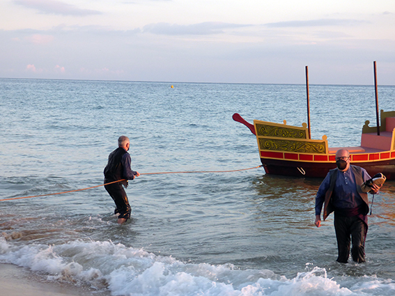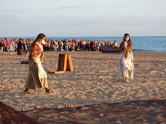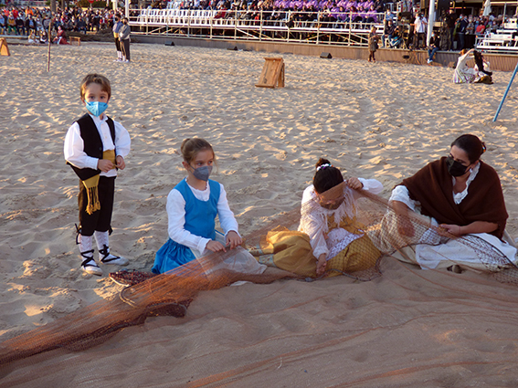 Miles de personas se congregaron en el playa de Levante, nueva ubicación este año, en la tradicional recreación del Hallazgo de la Virgen del Sufragio, fiesta de Interés Turístico Autonómico, escenificada desde 1971 por la Asociación Cultural Recreativa ‘La Barqueta’.