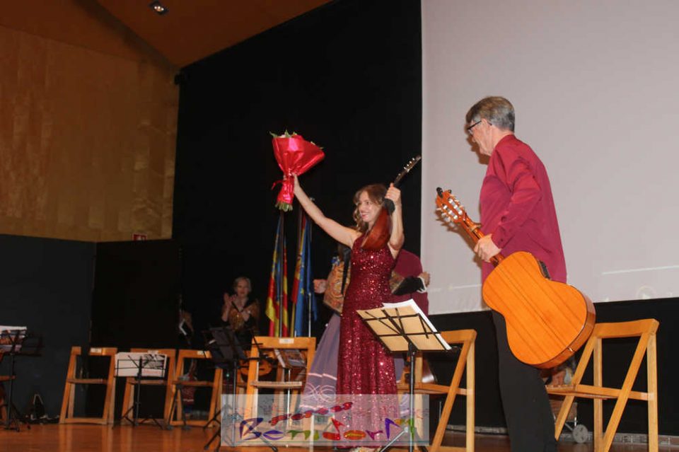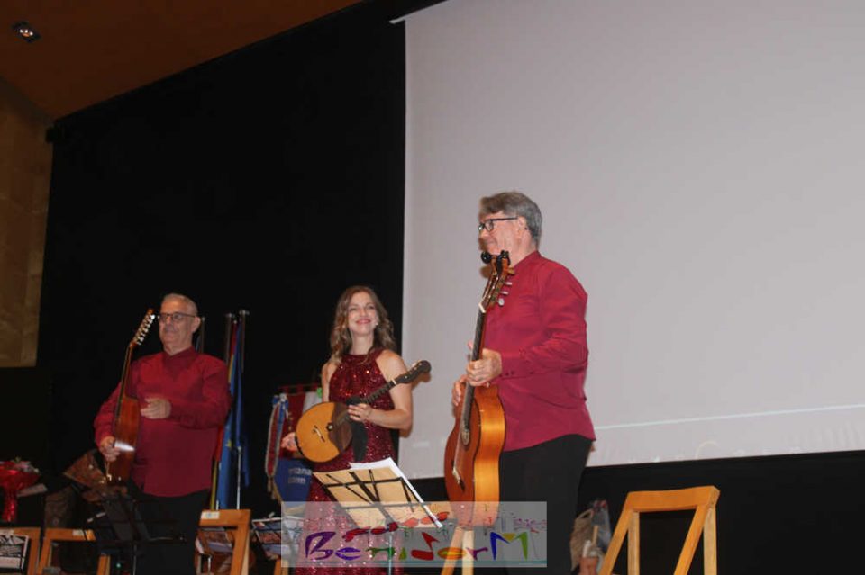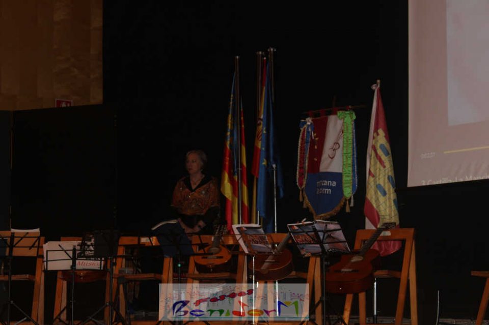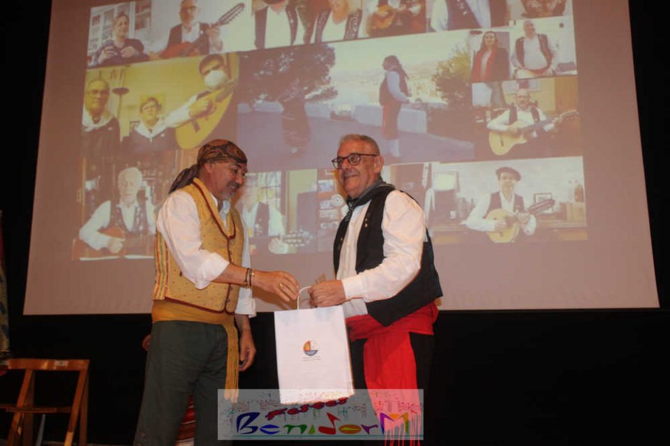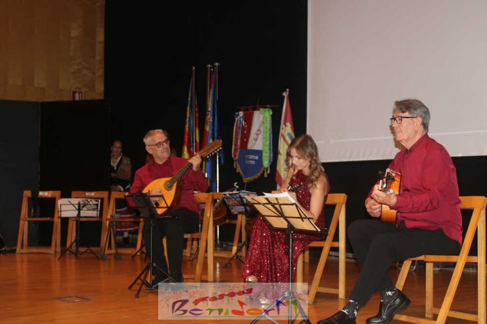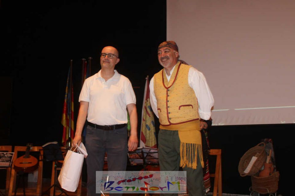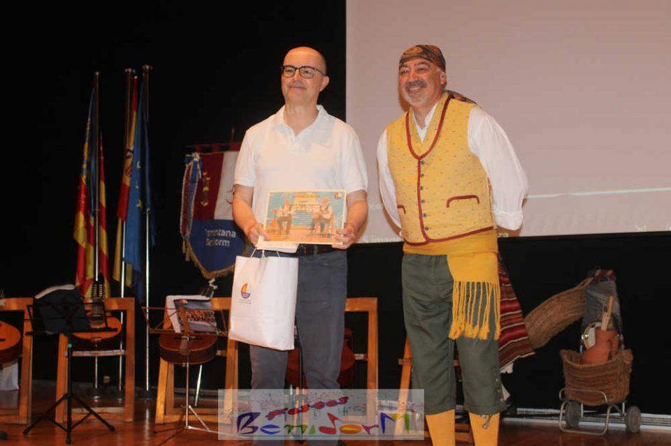 En primer lugar ha llegado la música de la mano de Natalia Kulesh, nacida en Rusia y residente en Benidorm, que ha estado acompañada del laúd y la guitarra de Luis Moreno y Antonio Bustos. Tras ella ha sido el turno del mantenedor del acto, José Antonio Báidez Guerrero, natural de Albacete, que es ingeniero industrial por la UPV y profesor de ámbito científico en la Escuela de Adultos de Benidorm desde 2020. Báidez ha hablado del folclore manchego, la seguidilla, los mayos, la jota manchega «que nunca pierde su esencia», de la que ha dicho que “es ante todo diversión y fiesta”. También ha destacado el papel de la asociación Tramontana, por ser “un ejemplo de cómo el folclore puede traspasar fronteras” y ha afirmado que hablar del folclore manchego “es hablar de una forma de estar en el mundo”.