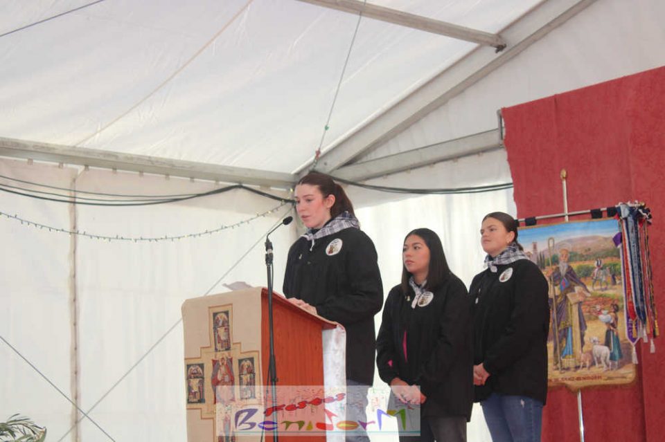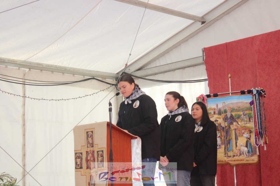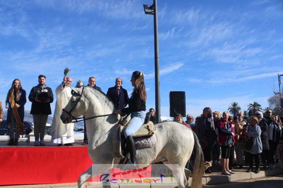 Tras finalizar la misa, en el exterior y sobre un templete habilitado al efecto, ha tenido lugar la tradicional bendición de los animales en la que han participado las numerosas mascotas y sus propietarios que hasta allá se han desplazado desde todos los barrios de Benidorm para compartir este acto singular.
