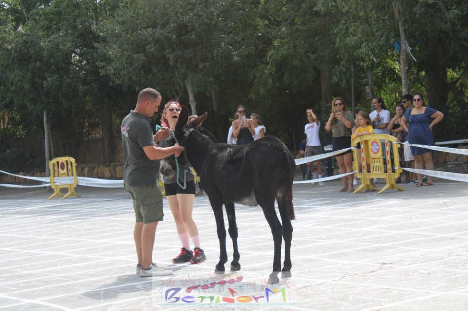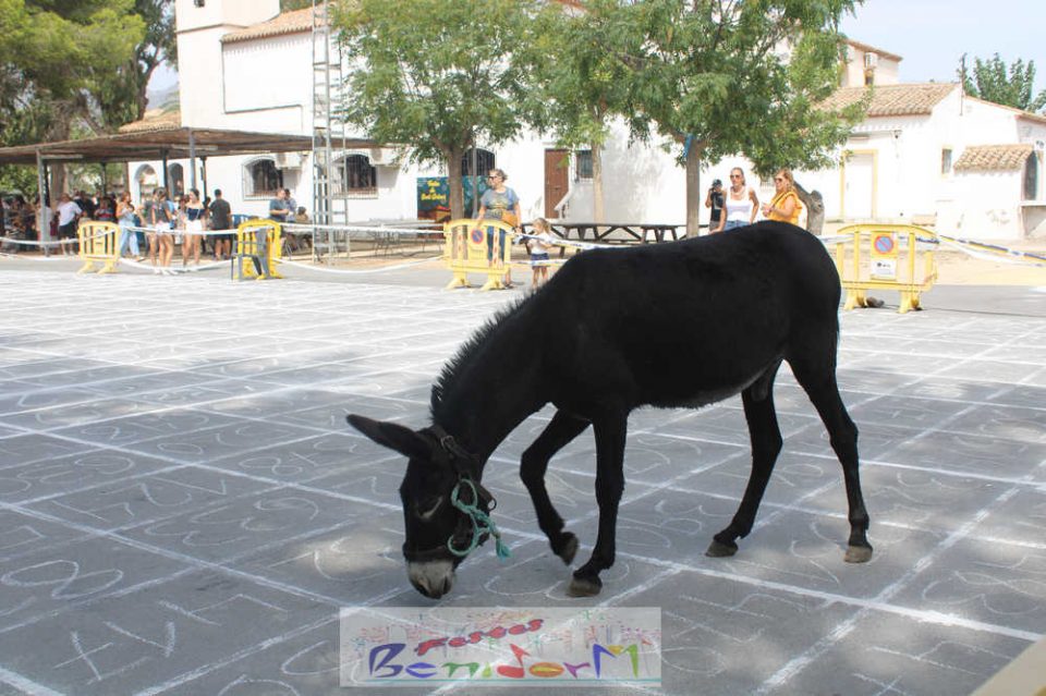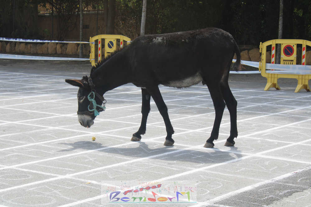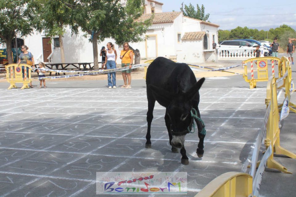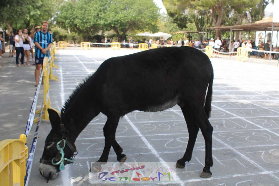 Esta iniciativa para recaudar fondos surgió por primera vez en Benidorm en 2014, cuando uno de los miembros de la Comissió de Sant Antoni de aquel año, José Fuster, sugirió dividir un terreno en pequeñas parcelas numeradas en donde se situaría el animal. Las parcelas están numeradas y los vecinos pueden comprar los tickets con la numeración. Gana el premio quien haya adquirido el boleto correspondiente al número de la parcela donde la burra haga sus ‘aguas mayores’.