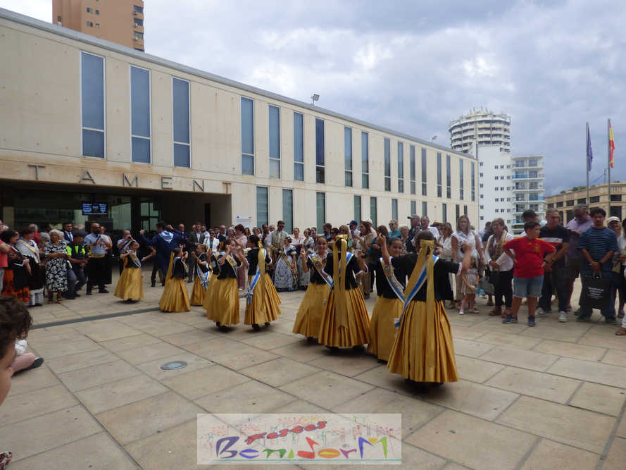Como cada año, coincidiendo con la celebración del 9 d’octubre, este mediodía ha abierto sus puertas la ‘Fira de Productes Típics de la Terra’, que organiza la Comissió de Festes Majors Patronals y que se desarrolla en el Parque de Elche. El alcalde, Toni Pérez; la concejal de Fiestas, Mariló Cebreros; y las Reinas de les Festes, Paula Pascual y Aitana Pérez, han sido los encargados de cortar la cita inaugural de la Fira. Previamente, y como es tradición en el Dia de la Comunitat Valenciana, las Reinas y sus cortes de honor han interpretado, a ritmo de ‘xirimita i tabalet’, el ‘ball del peuet’ en la plaza de SS MM Los Reyes de España ante la atenta mirada de residentes y turistas. Un tradicional baile que ha tenido lugar justo después de la finalización del pleno institucional del 9 d’Octubre.