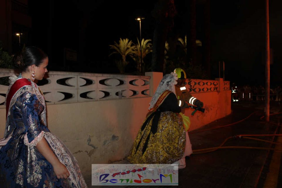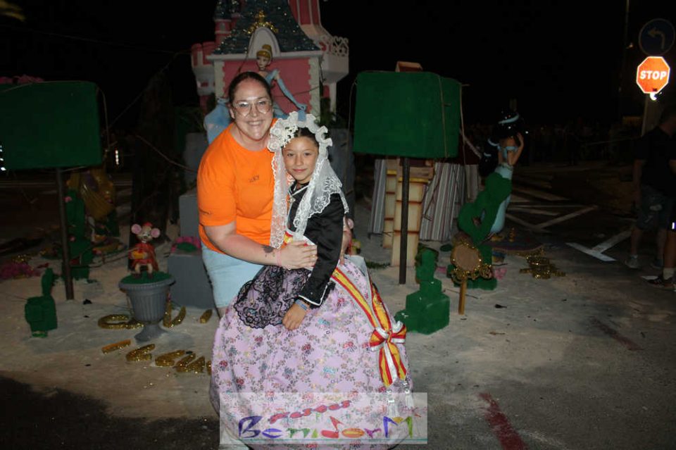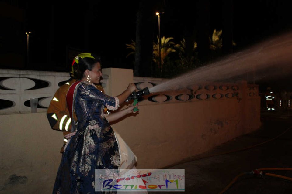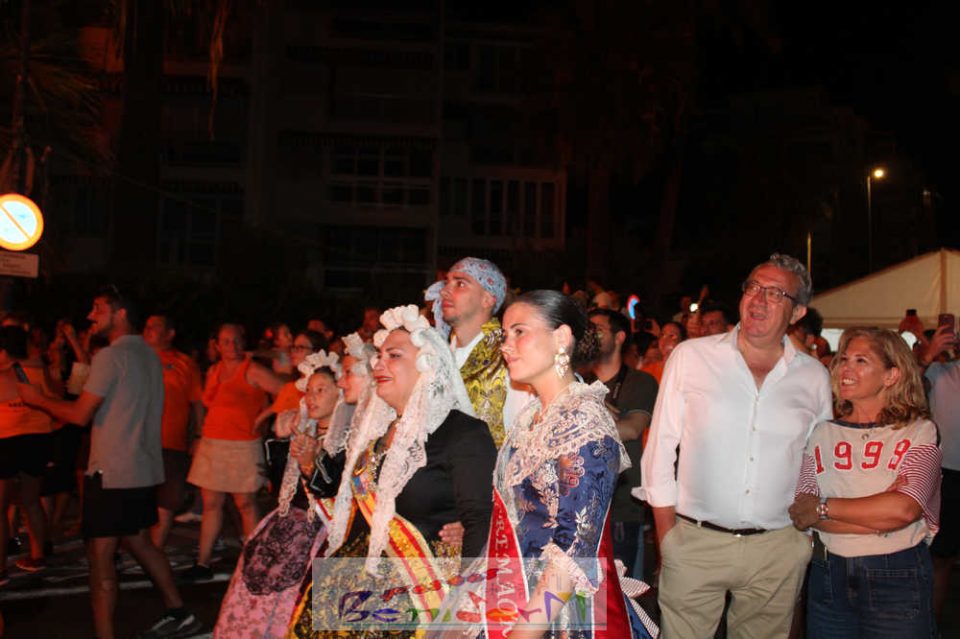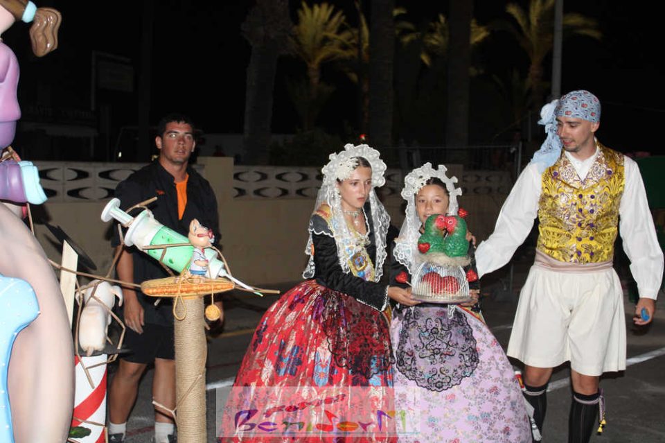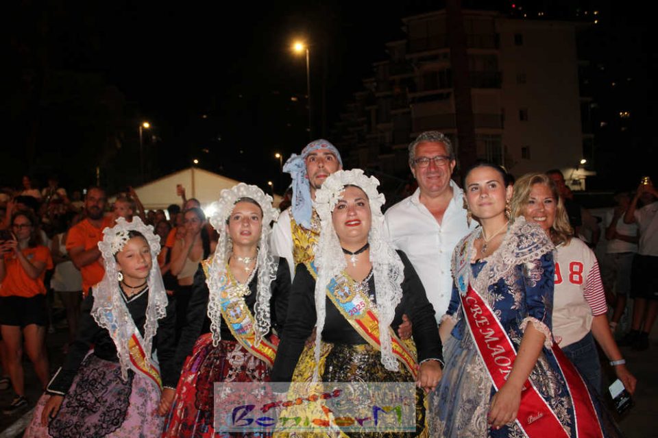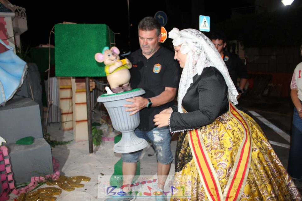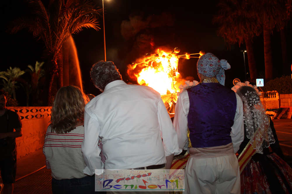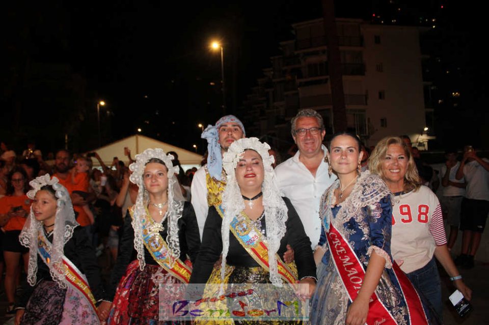 Benidorm puso fin pasada la medianoche de ayer a la fiesta de las Hogueras en el barrio de La Cala con una emotiva ‘Nit de la Cremà’ que cumplió fielmente con el ritual del fuego. El acto arrancó poco antes de las once de la noche, con la cremà de la hoguera infantil. Pocos minutos después de la medianoche le siguió la del monumento mayor. La ‘Bellesa’ Claudia Salas y la ‘Cremaora’ Paula González de Zárate fueron las encargadas de prender la mecha que acabó por devorar el monumento, no sin antes proceder al indulto de ‘ninots’ como recuerdo de este ejercicio festero. Por último, como manda la tradición, la velada finalizó con la tradicional ‘banyà’ de festeros y público. Antes del inicio de la ‘cremá’ varios centenares de personas se dieron cita en el paseo de la playa a la altura de la calle Murtal para no perderse detalle del evento.