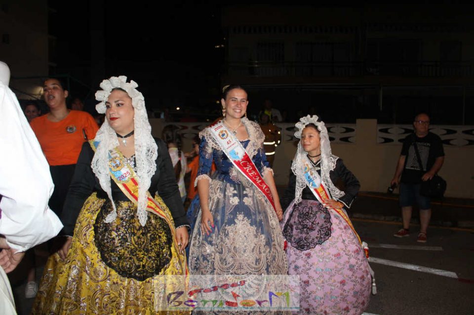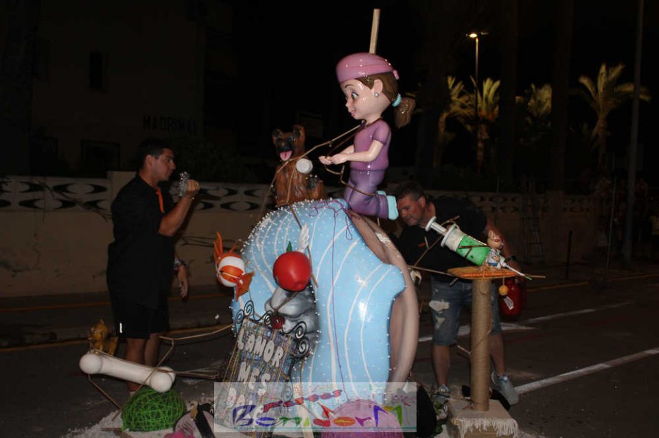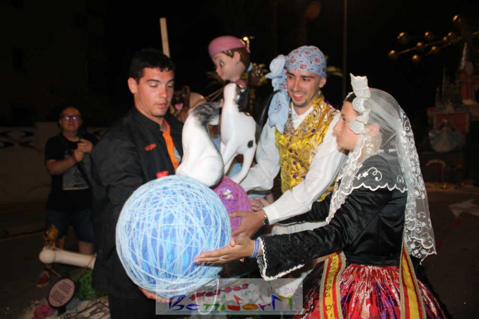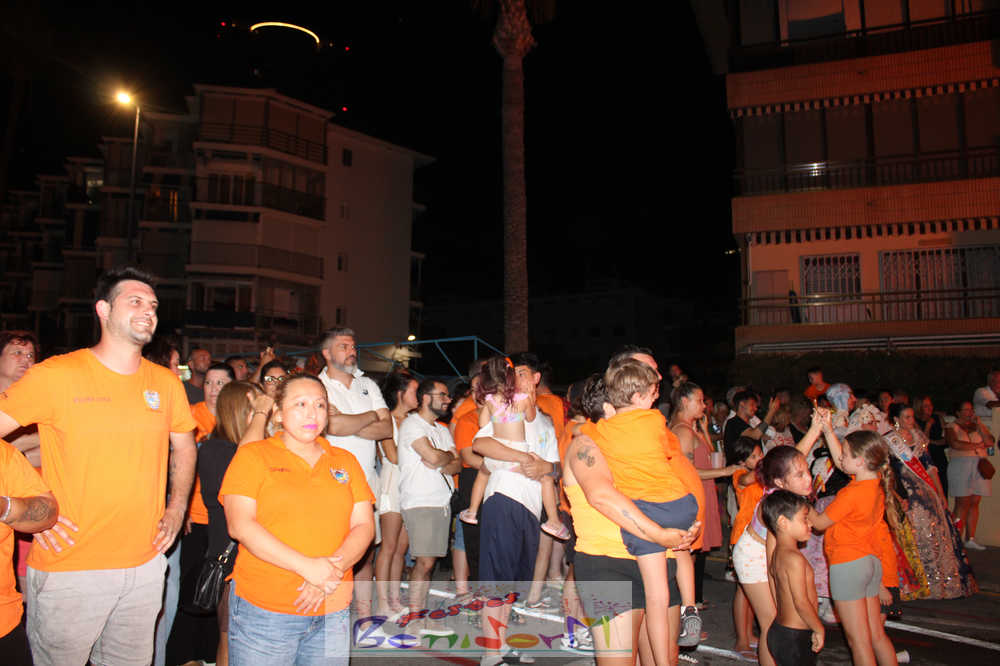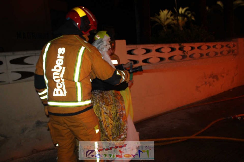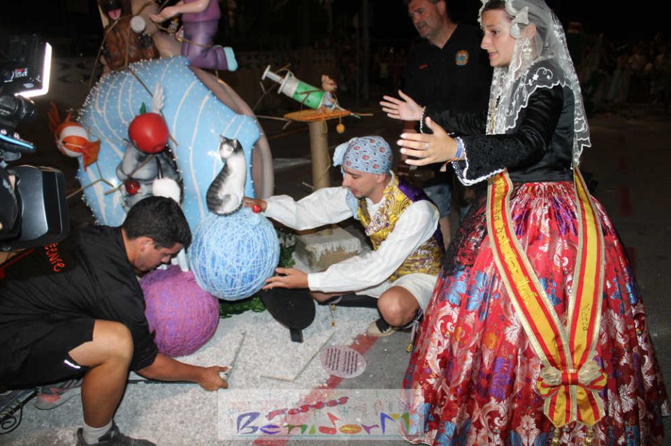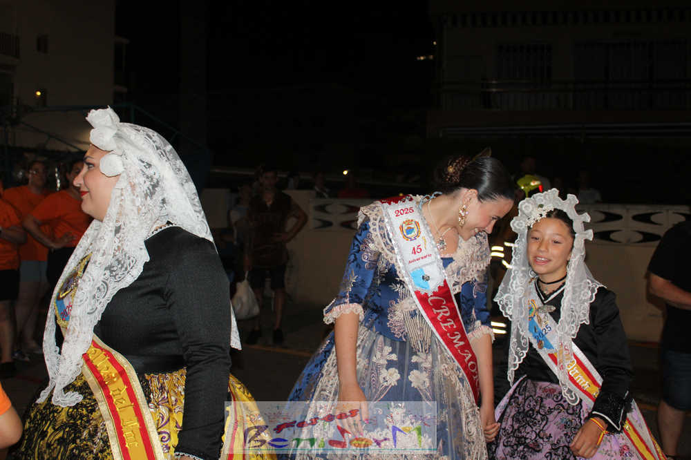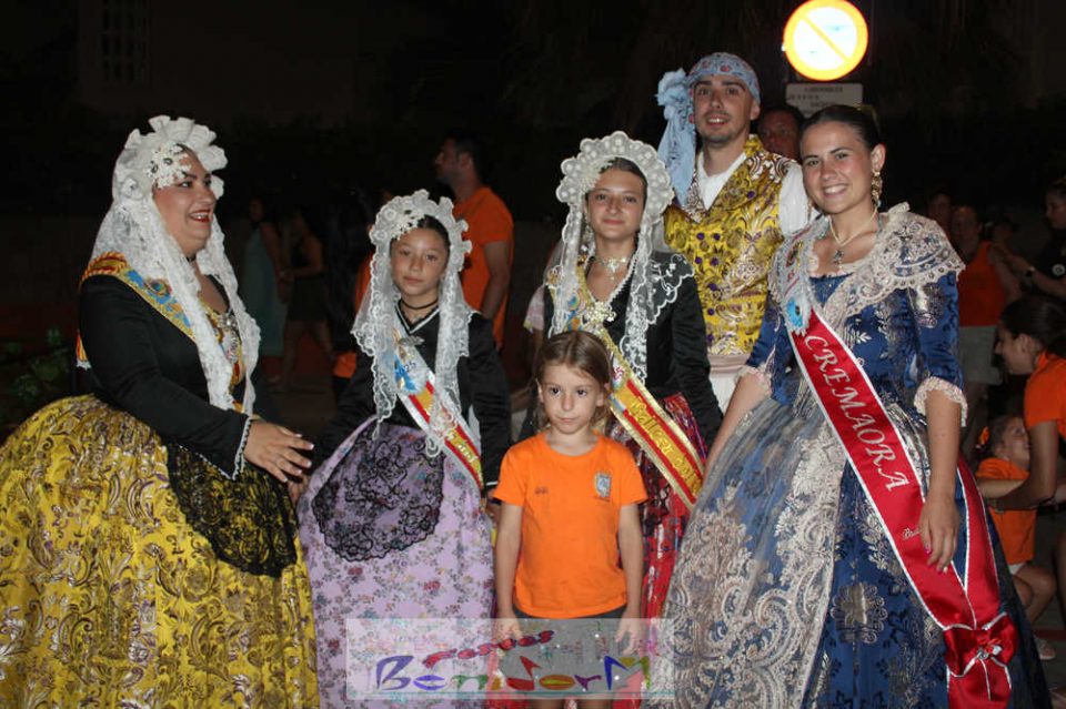 Benidorm puso fin pasada la medianoche de ayer a la fiesta de las Hogueras en el barrio de La Cala con una emotiva ‘Nit de la Cremà’ que cumplió fielmente con el ritual del fuego. El acto arrancó poco antes de las once de la noche, con la cremà de la hoguera infantil. Pocos minutos después de la medianoche le siguió la del monumento mayor. La ‘Bellesa’ Claudia Salas y la ‘Cremaora’ Paula González de Zárate fueron las encargadas de prender la mecha que acabó por devorar el monumento, no sin antes proceder al indulto de ‘ninots’ como recuerdo de este ejercicio festero. Por último, como manda la tradición, la velada finalizó con la tradicional ‘banyà’ de festeros y público. Antes del inicio de la ‘cremá’ varios centenares de personas se dieron cita en el paseo de la playa a la altura de la calle Murtal para no perderse detalle del evento.