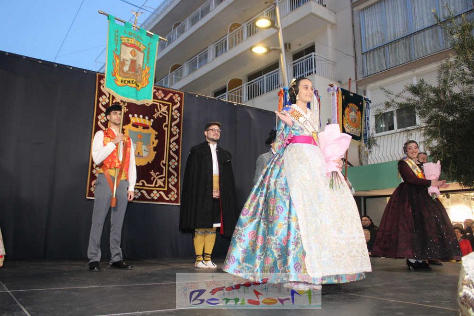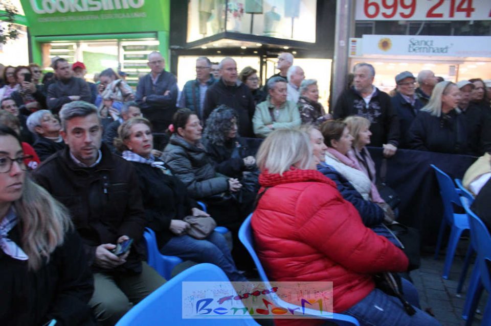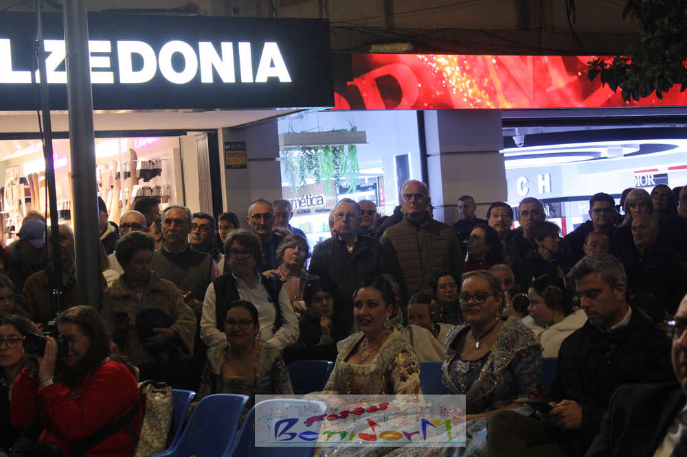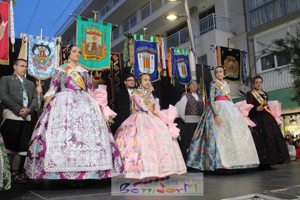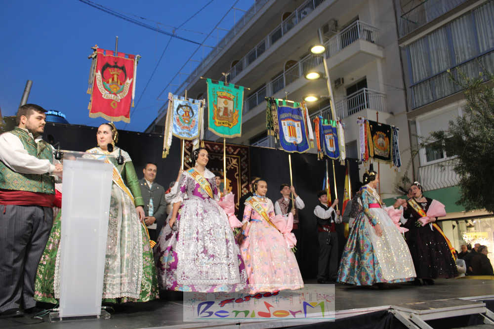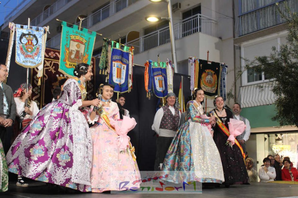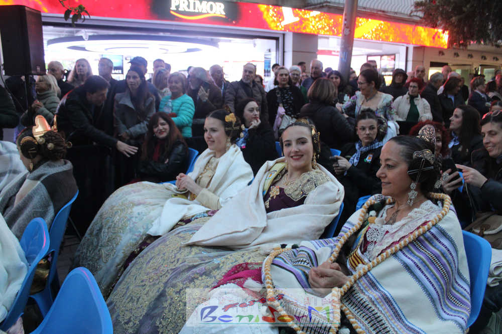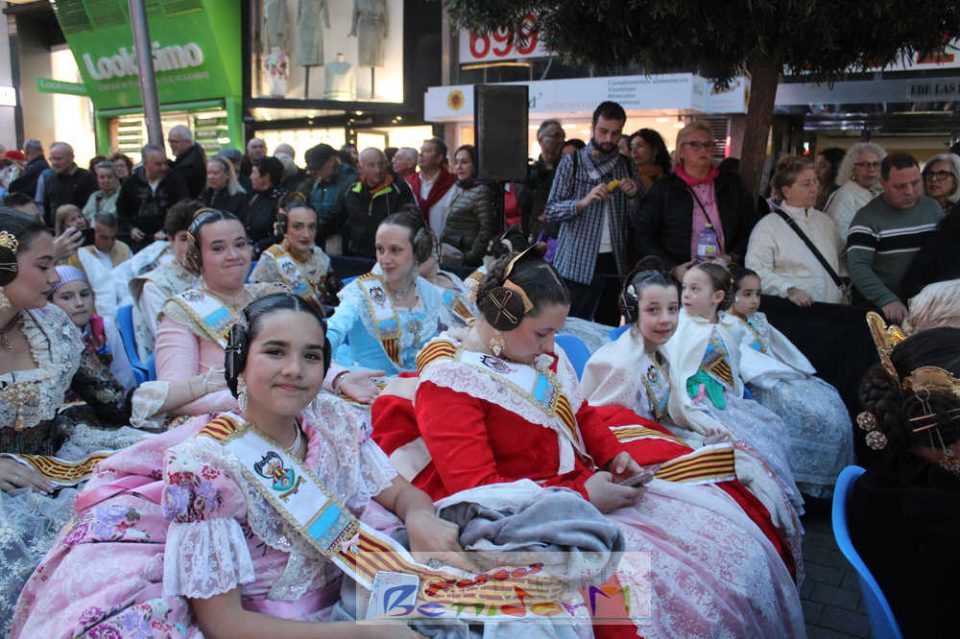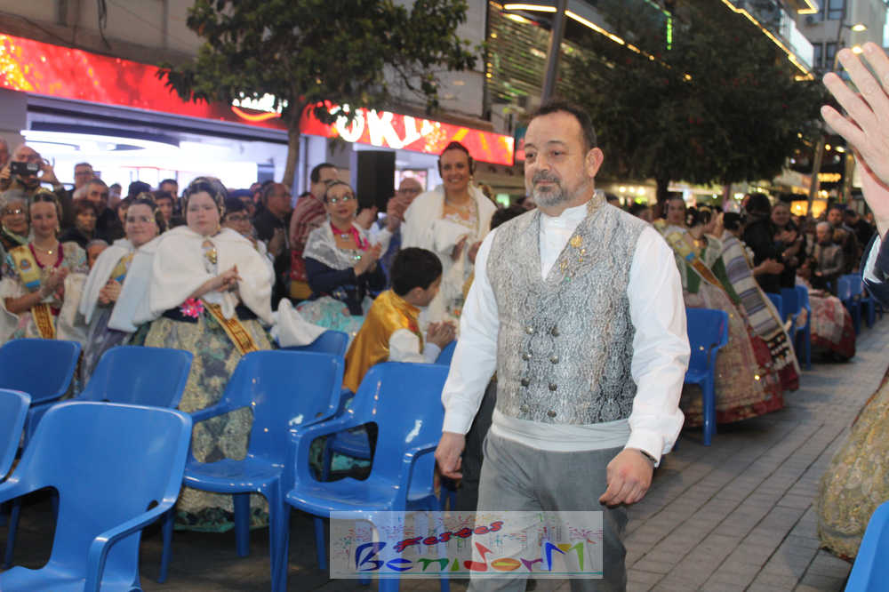 El acto se inició con un pasacalles desde la avenida de Europa, Mediterráneo y plaza de la Hispanidad, hasta llegar a la calle Gambo, donde se instaló el tradicional templete para anunciar al pueblo de Benidorm y a sus visitantes que comienza el mes fallero por excelencia.
