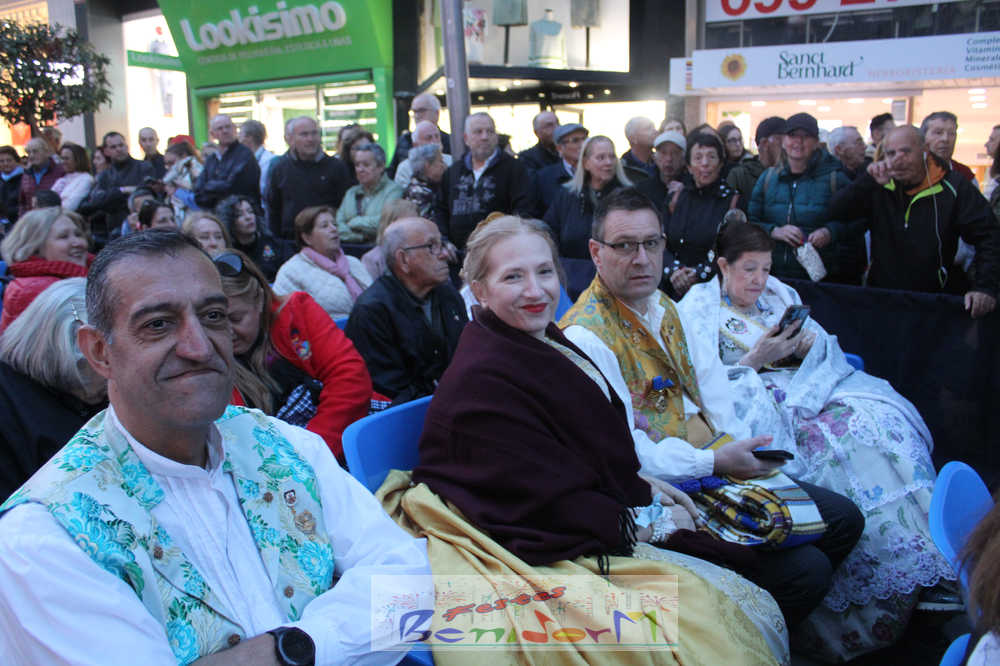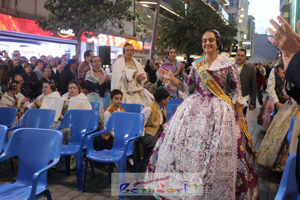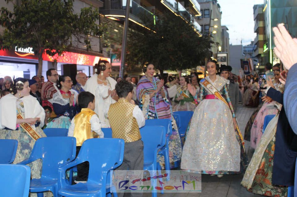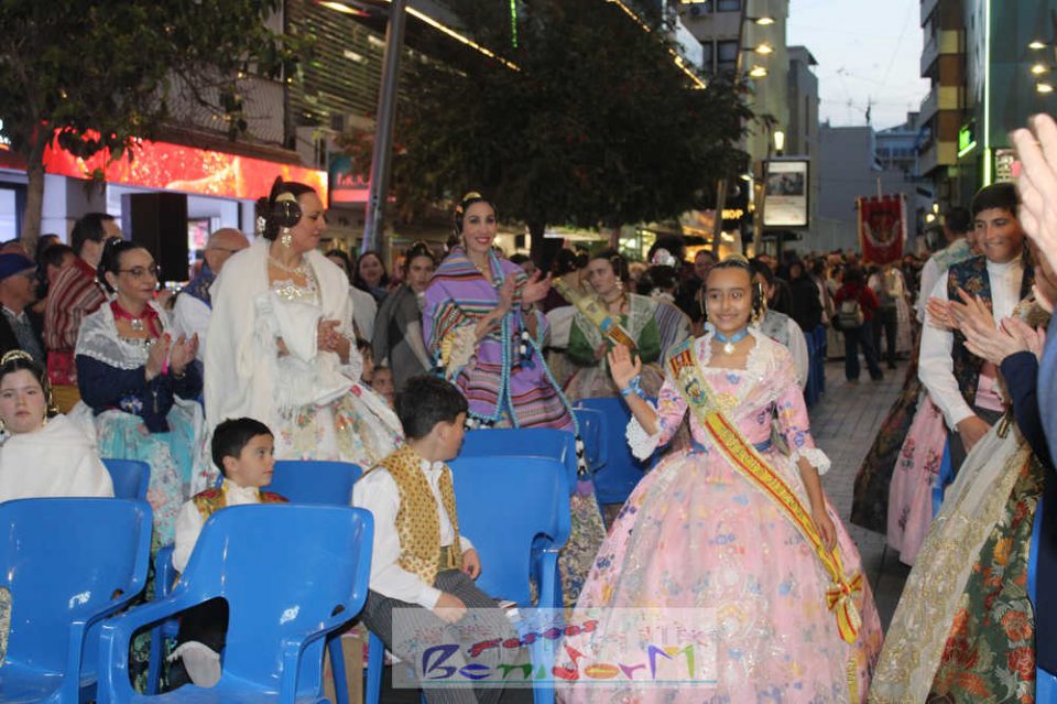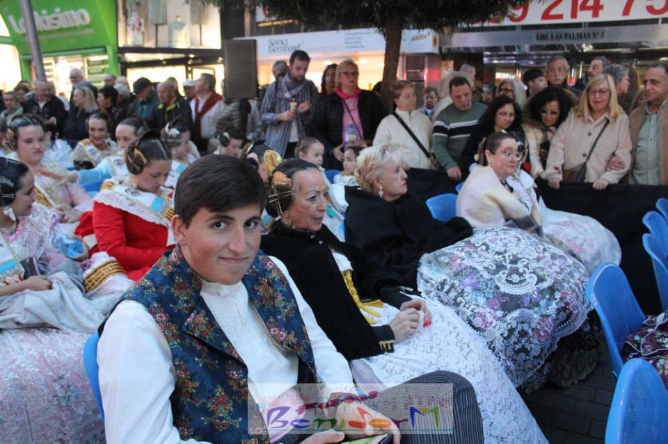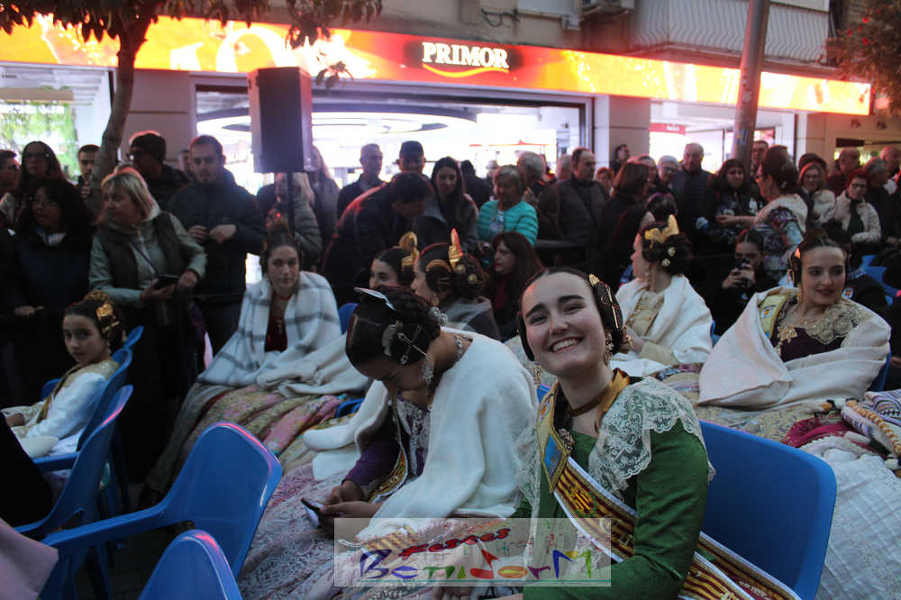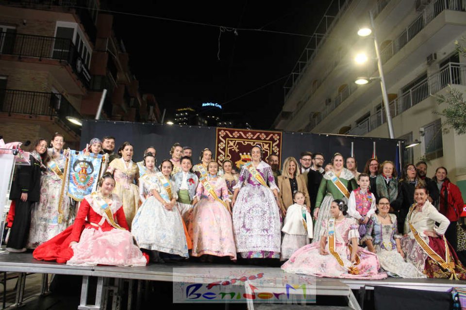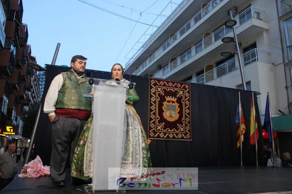 El acto se inició con un pasacalles desde la avenida de Europa, Mediterráneo y plaza de la Hispanidad, hasta llegar a la calle Gambo, donde se instaló el tradicional templete para anunciar al pueblo de Benidorm y a sus visitantes que comienza el mes fallero por excelencia.