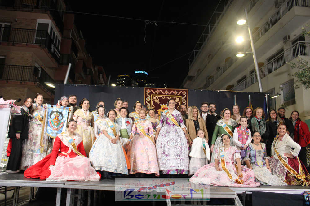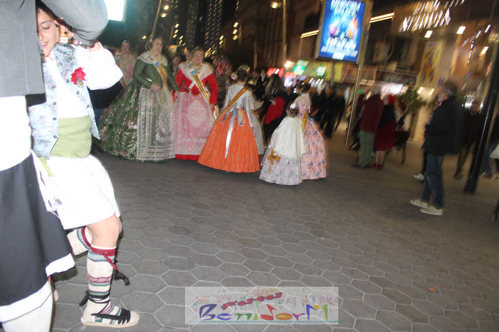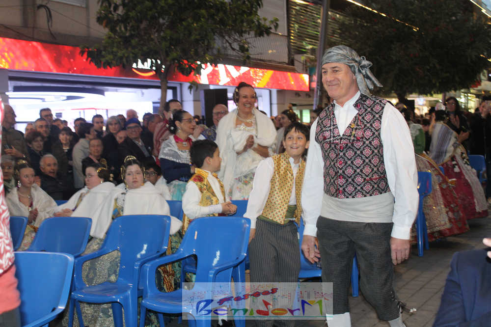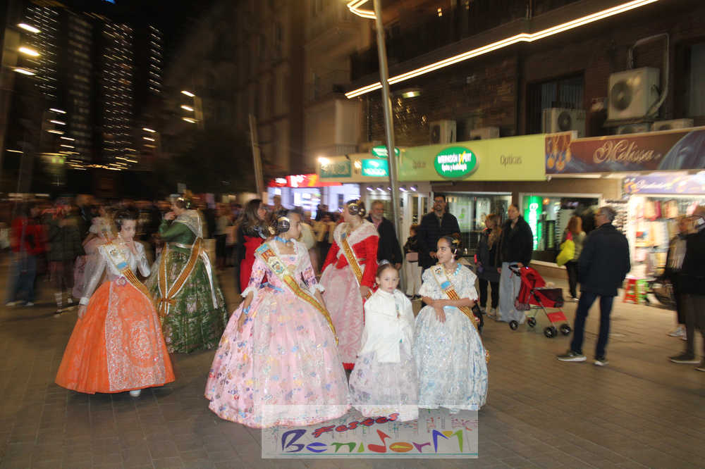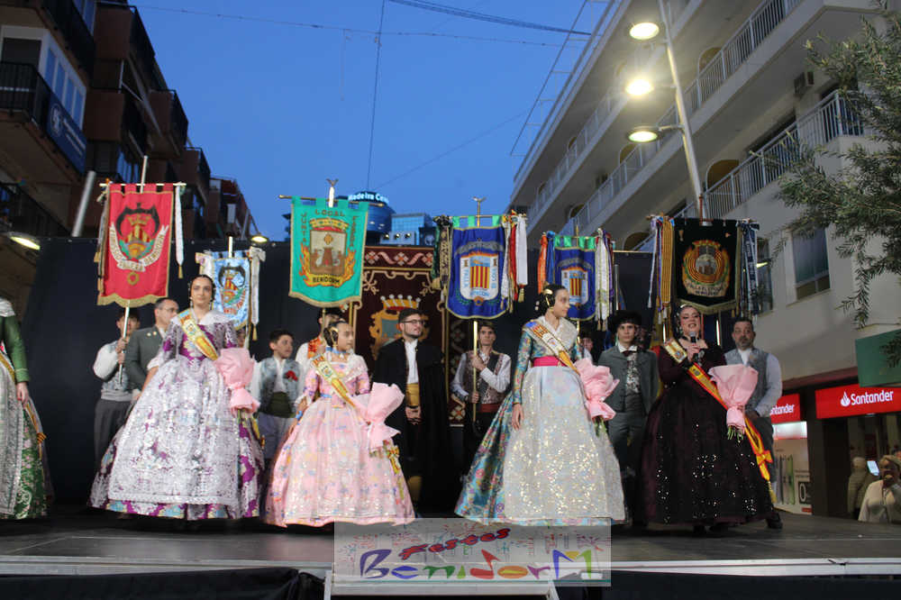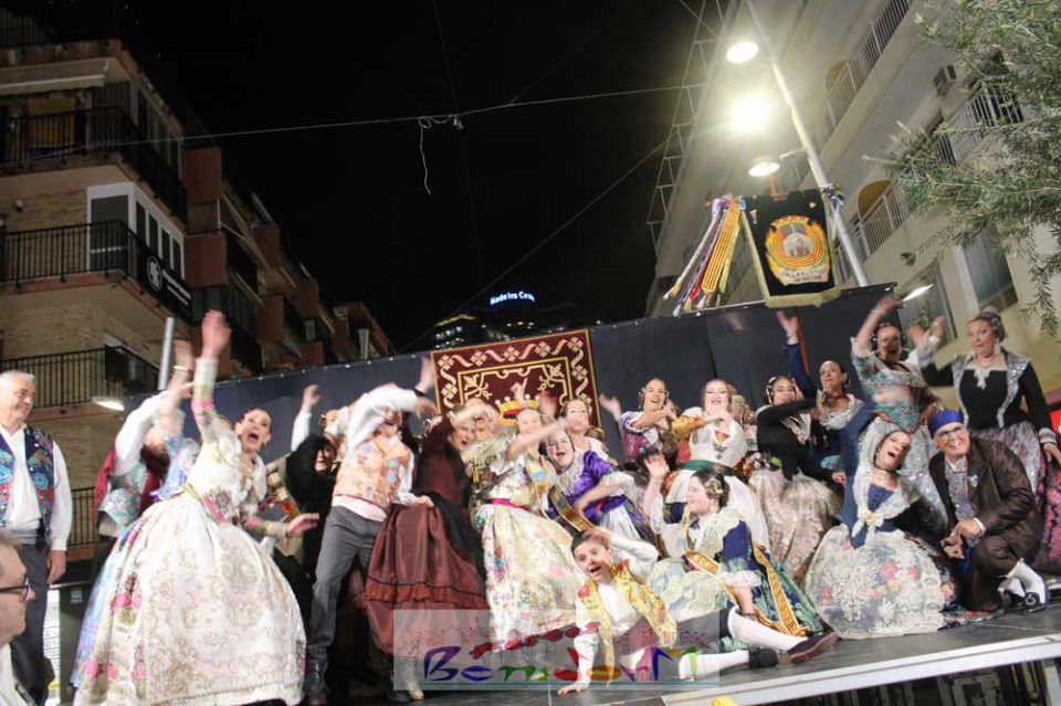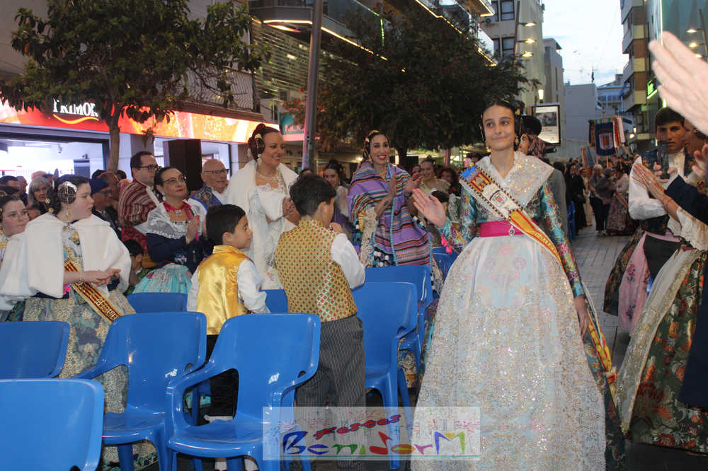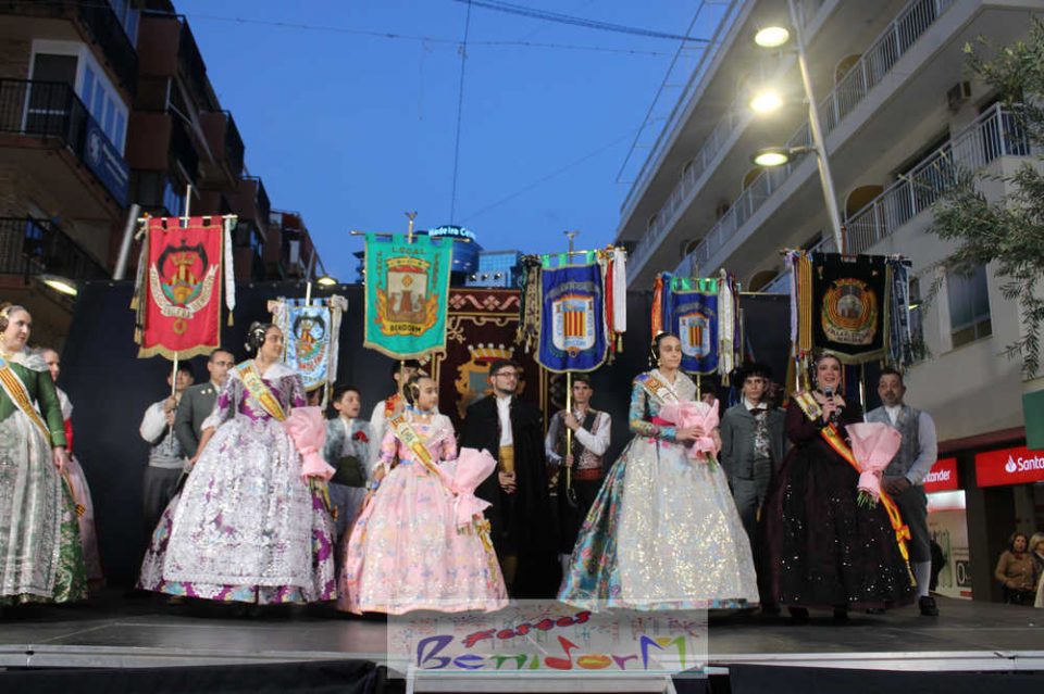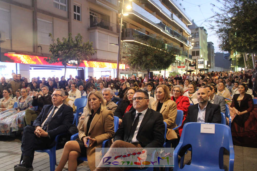 El acto se inició con un pasacalles desde la avenida de Europa, Mediterráneo y plaza de la Hispanidad, hasta llegar a la calle Gambo, donde se instaló el tradicional templete para anunciar al pueblo de Benidorm y a sus visitantes que comienza el mes fallero por excelencia.