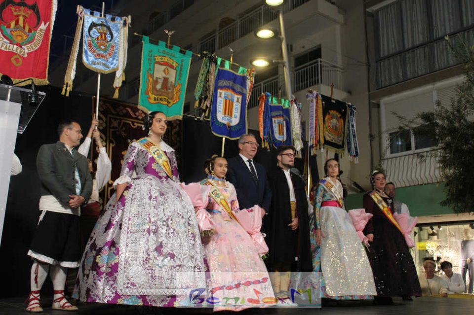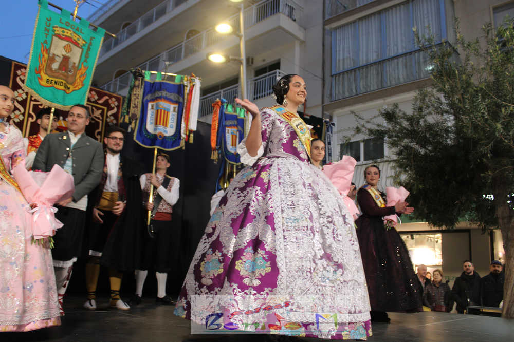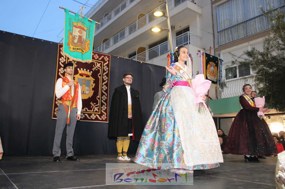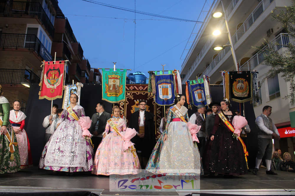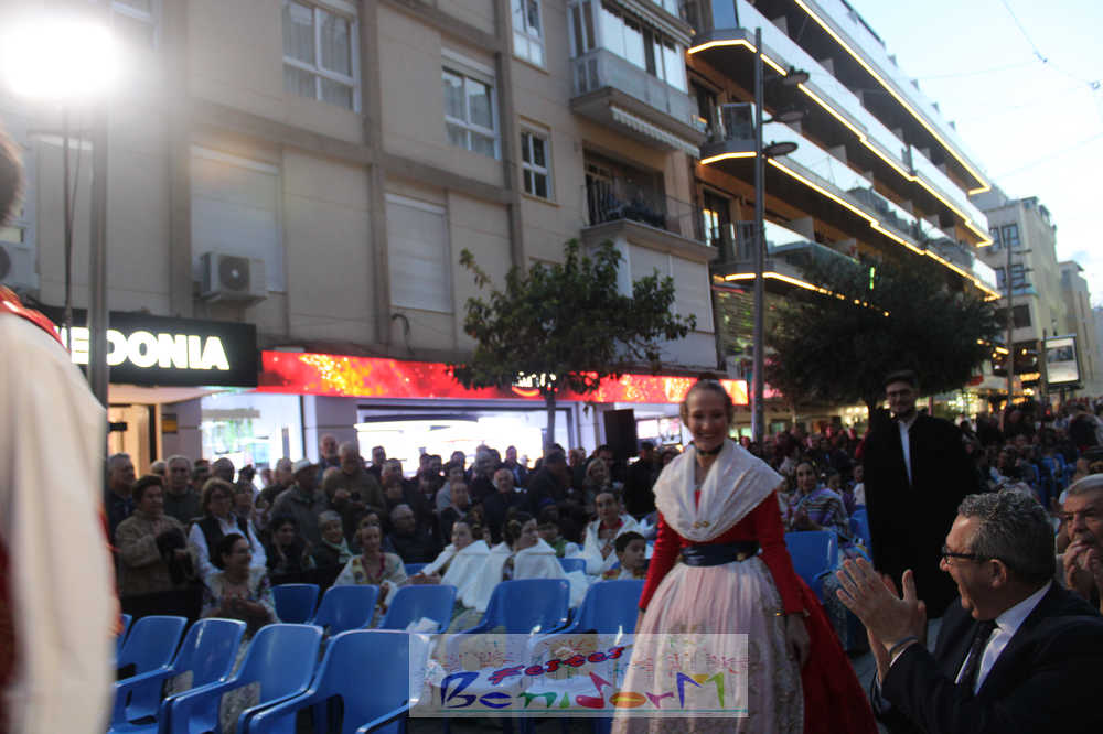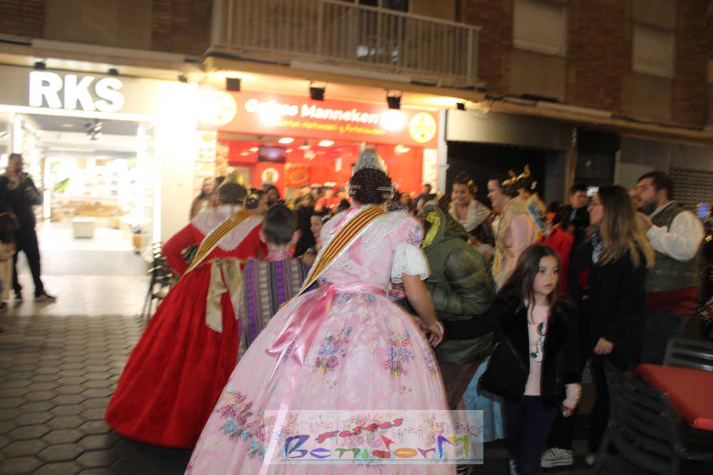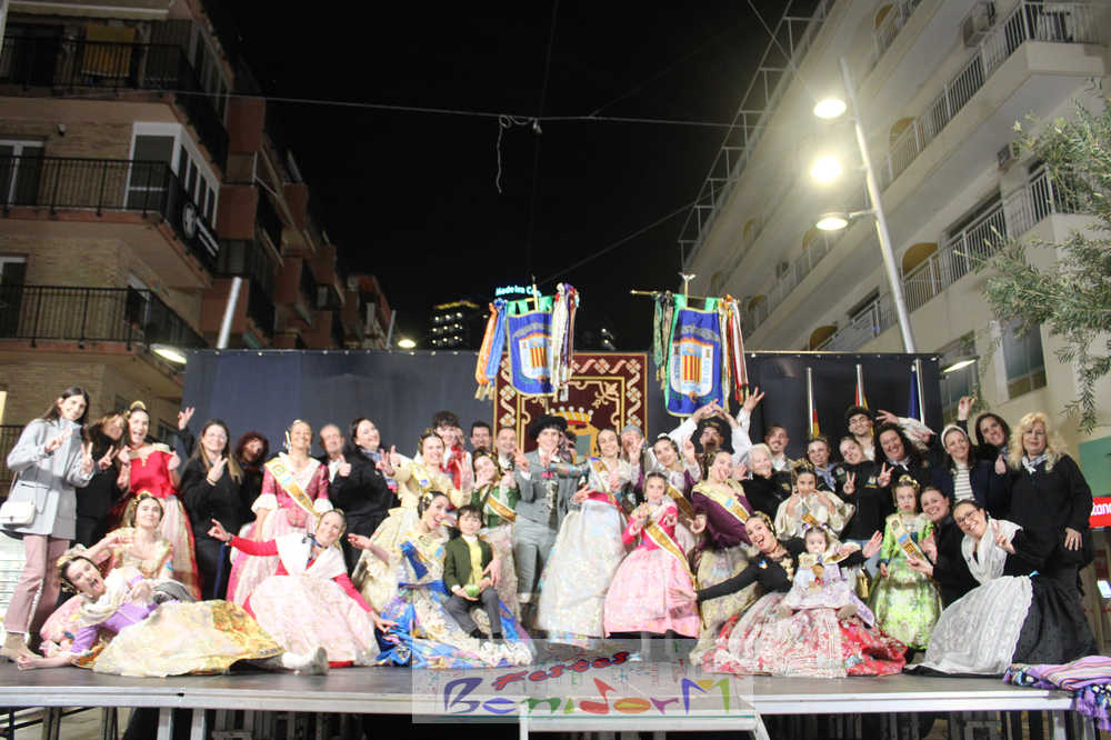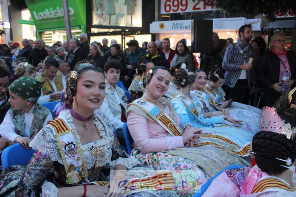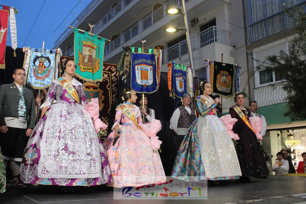 El acto se inició con un pasacalles desde la avenida de Europa, Mediterráneo y plaza de la Hispanidad, hasta llegar a la calle Gambo, donde se instaló el tradicional templete para anunciar al pueblo de Benidorm y a sus visitantes que comienza el mes fallero por excelencia.