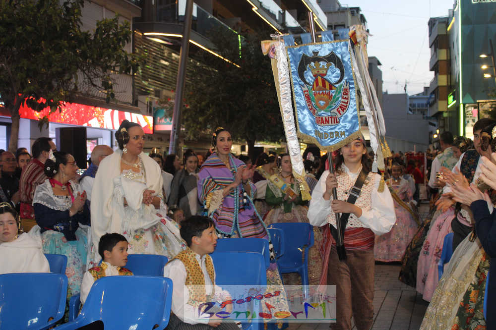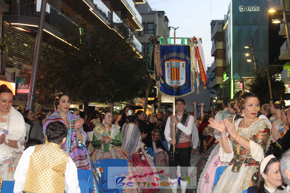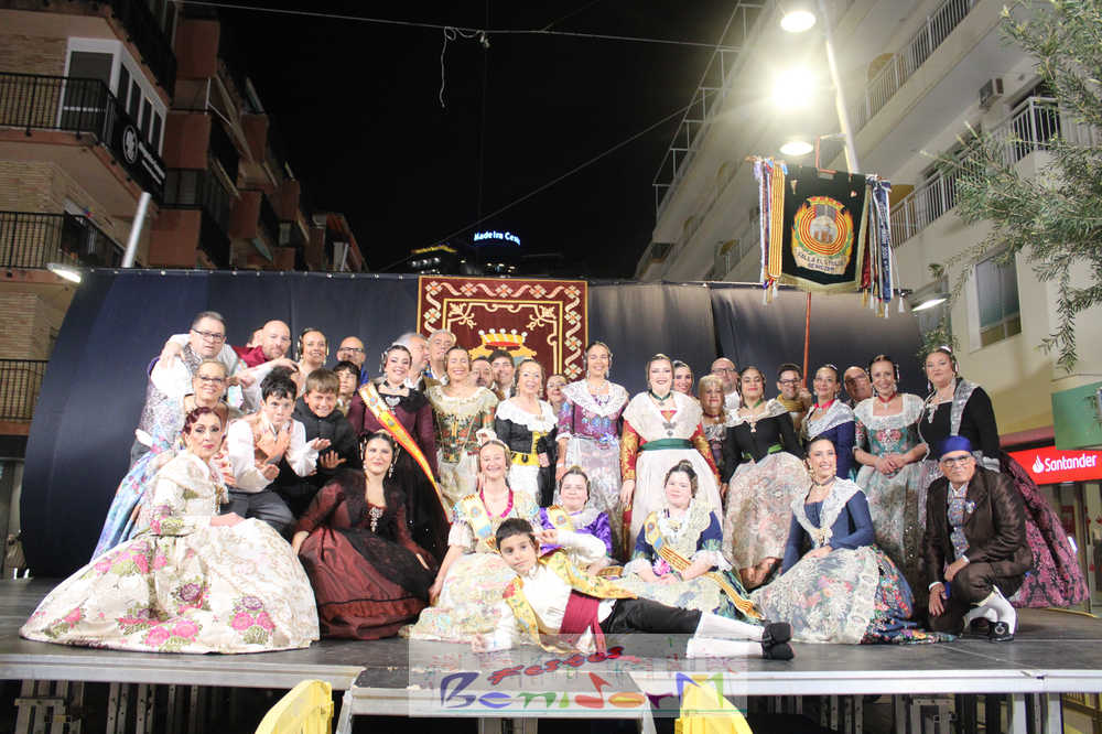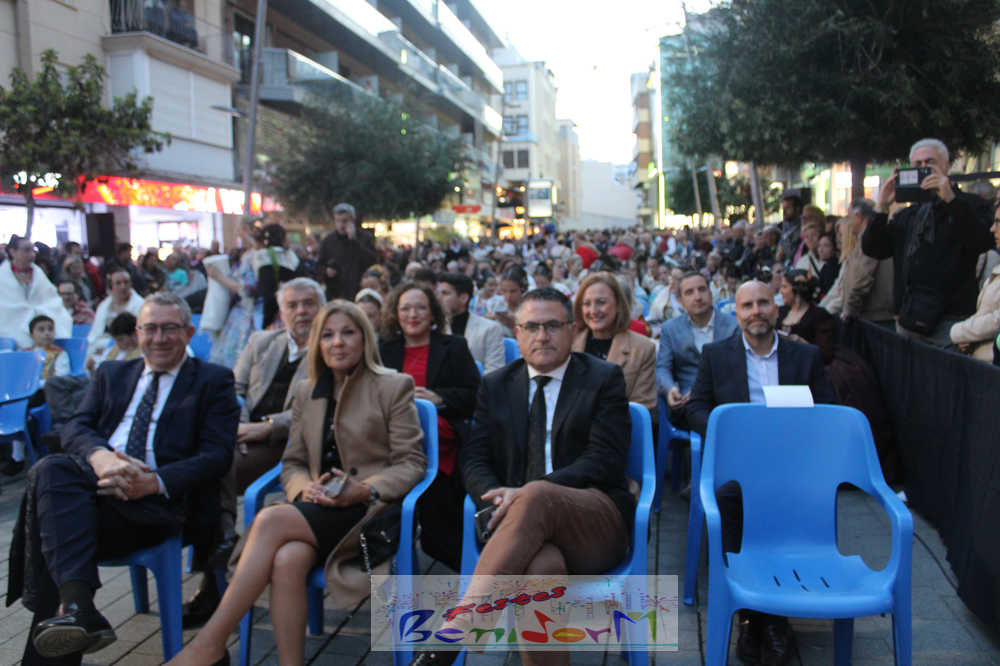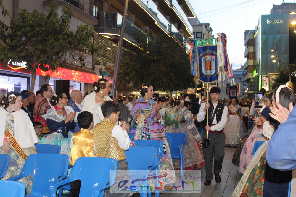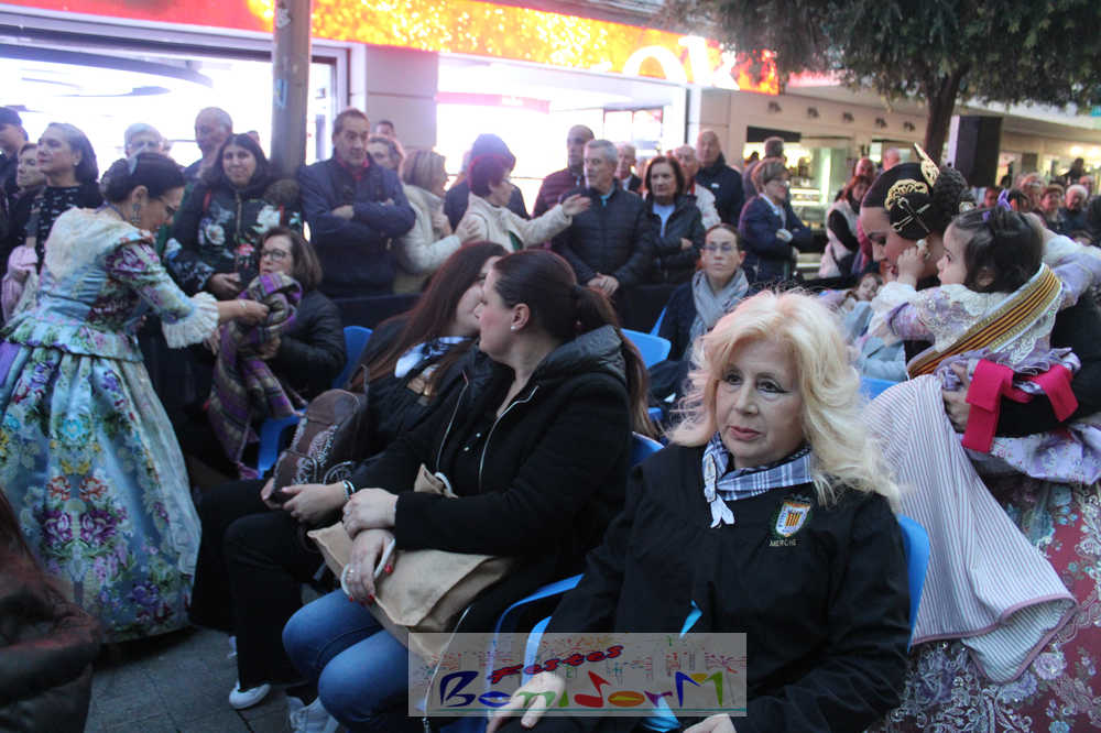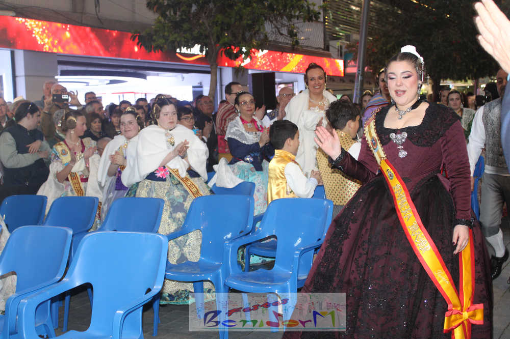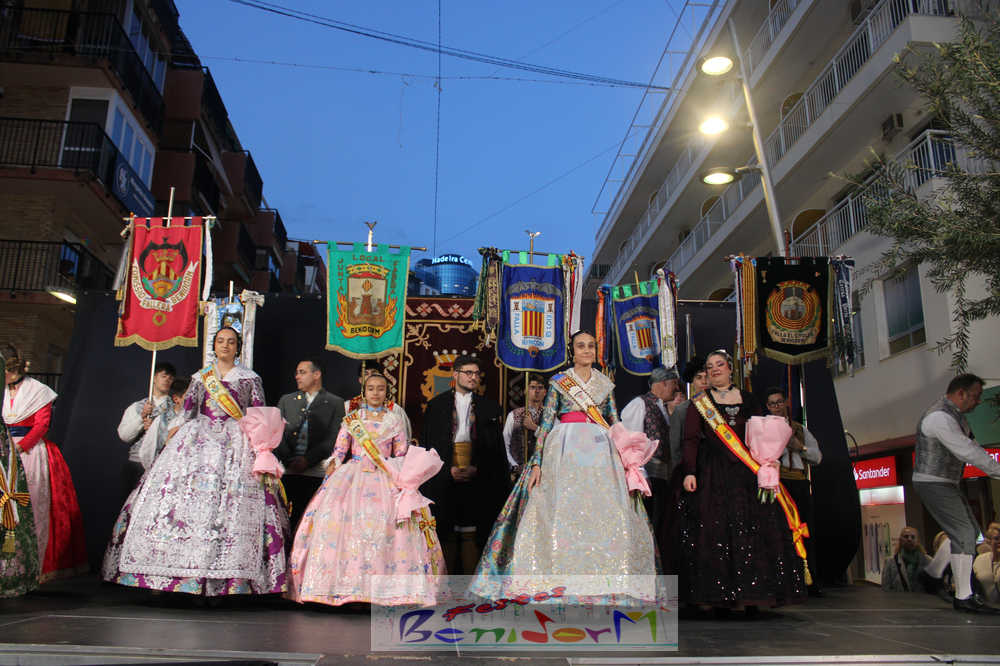 El acto se inició con un pasacalles desde la avenida de Europa, Mediterráneo y plaza de la Hispanidad, hasta llegar a la calle Gambo, donde se instaló el tradicional templete para anunciar al pueblo de Benidorm y a sus visitantes que comienza el mes fallero por excelencia.