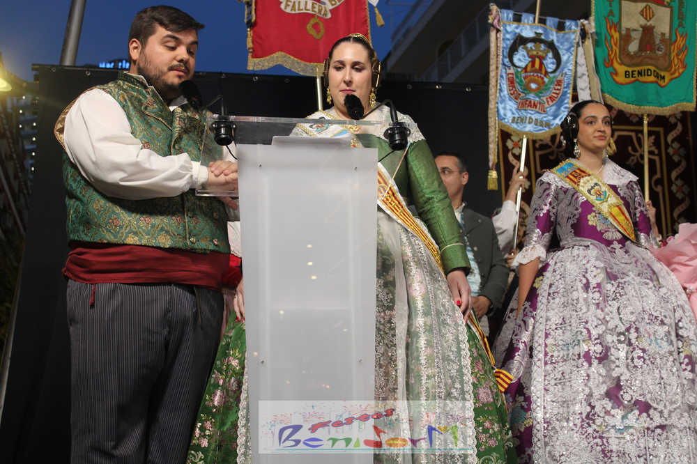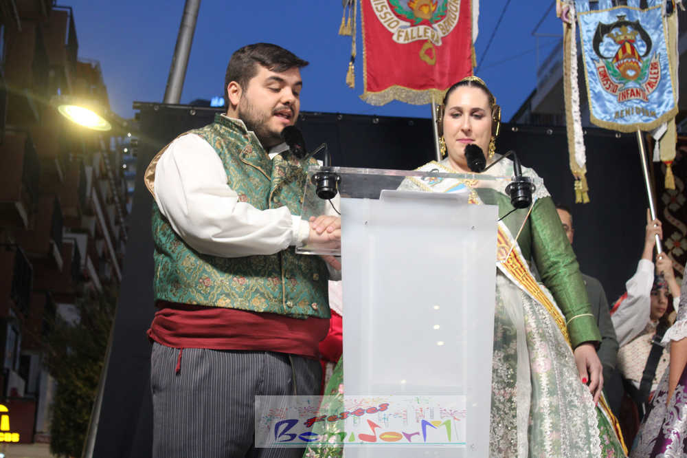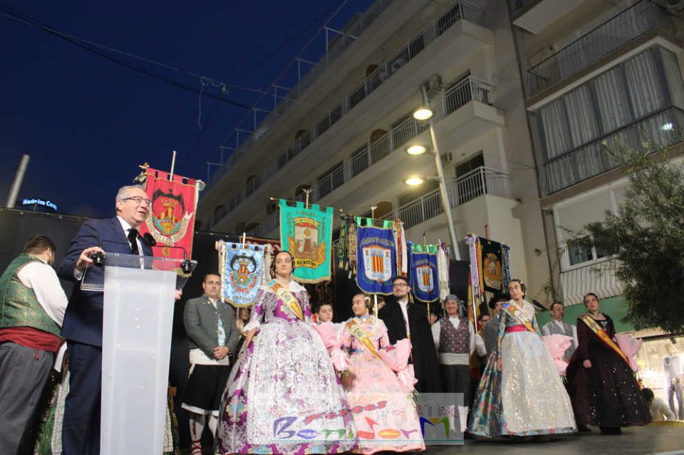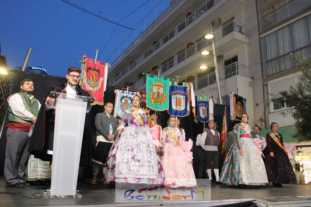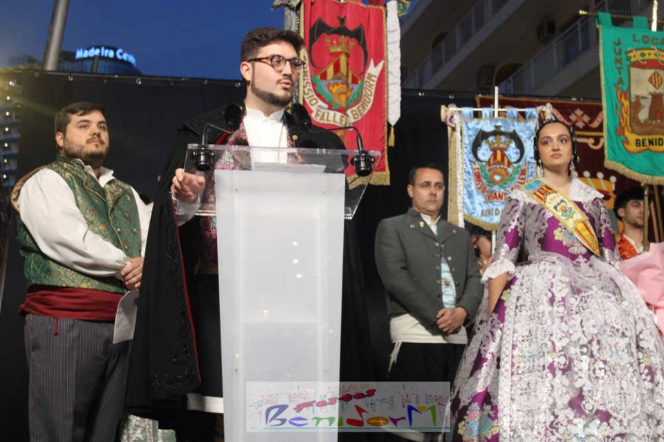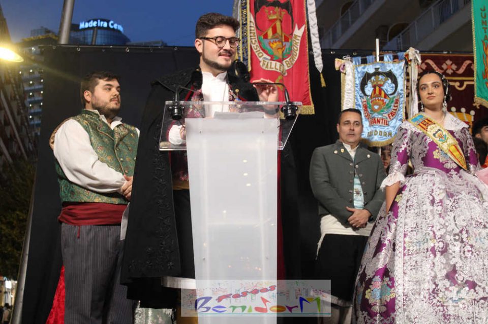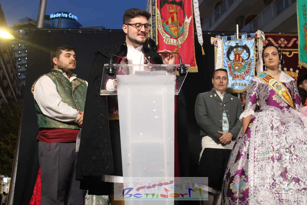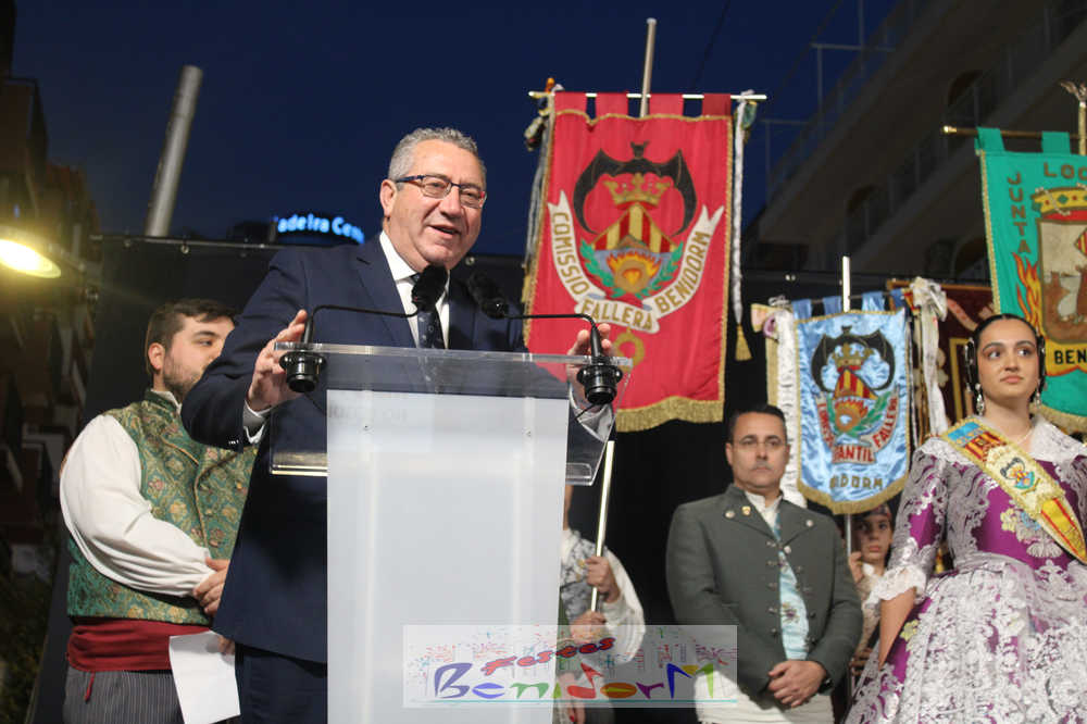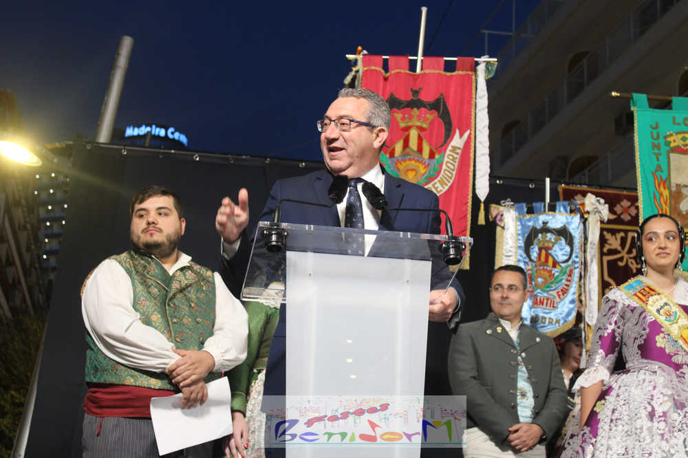 El presidente de la Junta Local Fallera, Pablo Pérez, tomó la palabra para agradecer el apoyo del Ayuntamiento de Benidorm, la Concejalía de Fiestas y de toda la ciudad para mantener viva una fiesta que suma más de medio siglo de historia en la ciudad, a la vez que reivindicó la unidad de las tres comisiones para seguir engrandeciendo la fiesta.