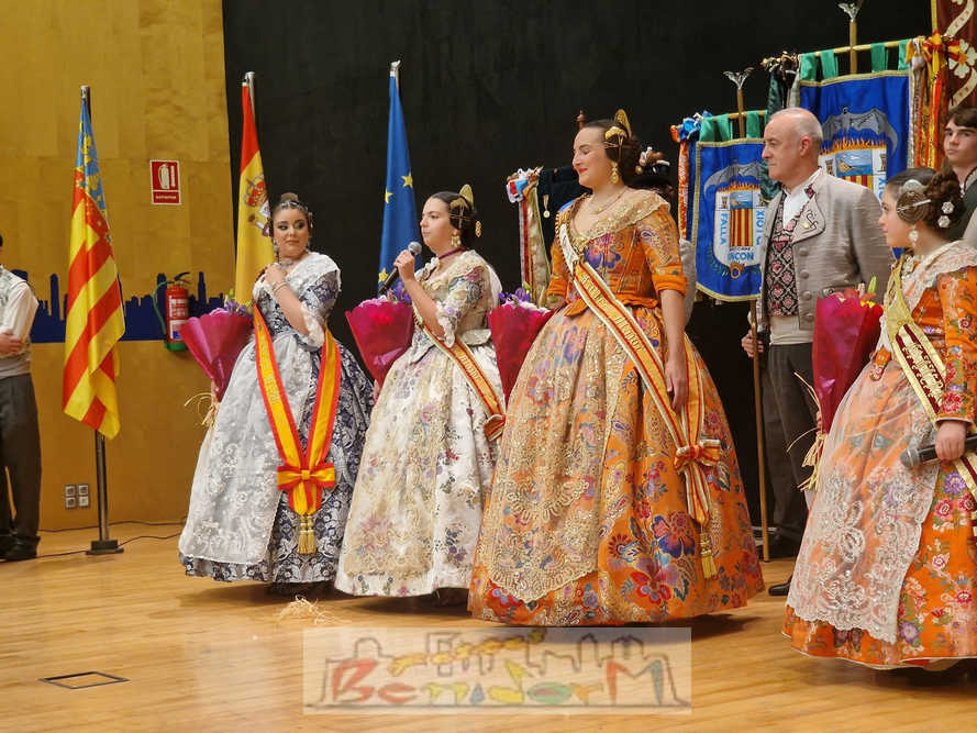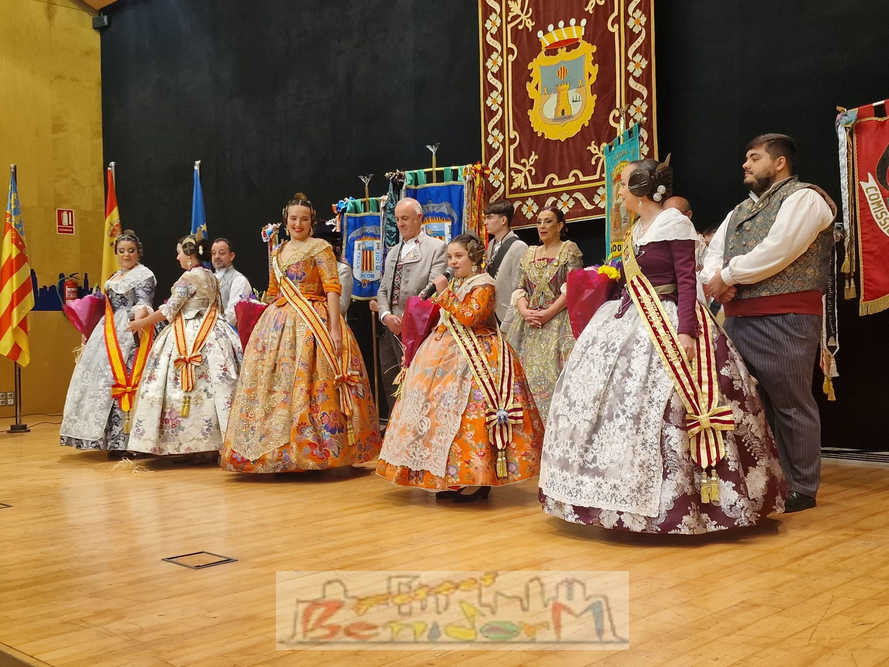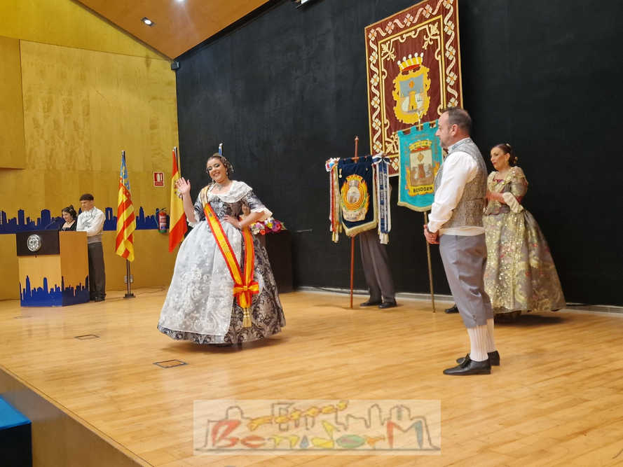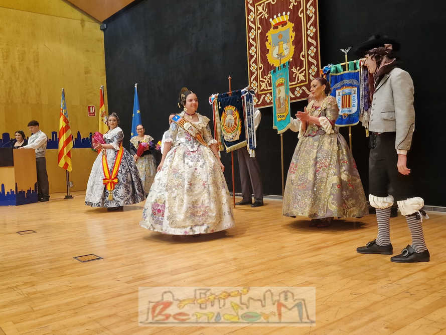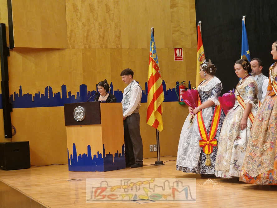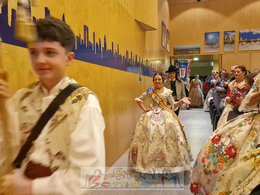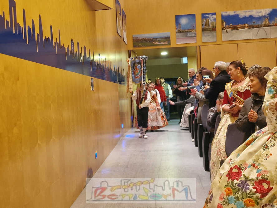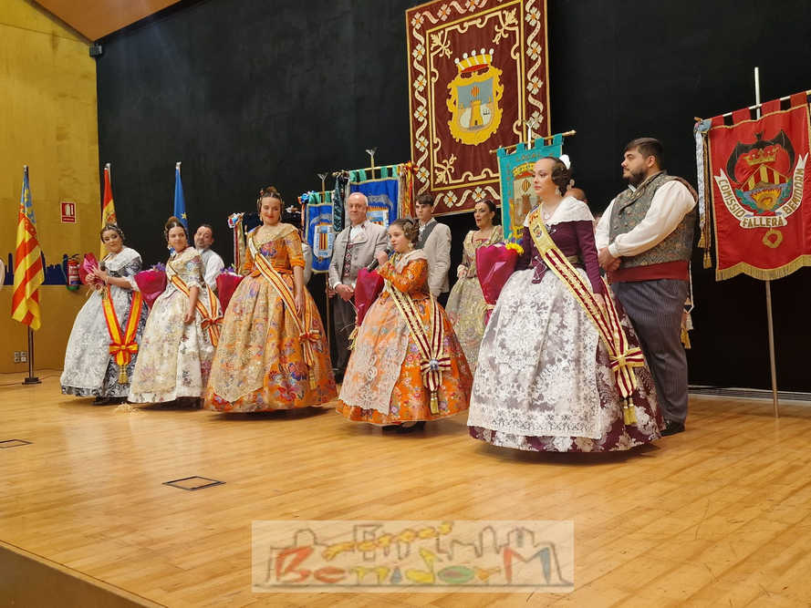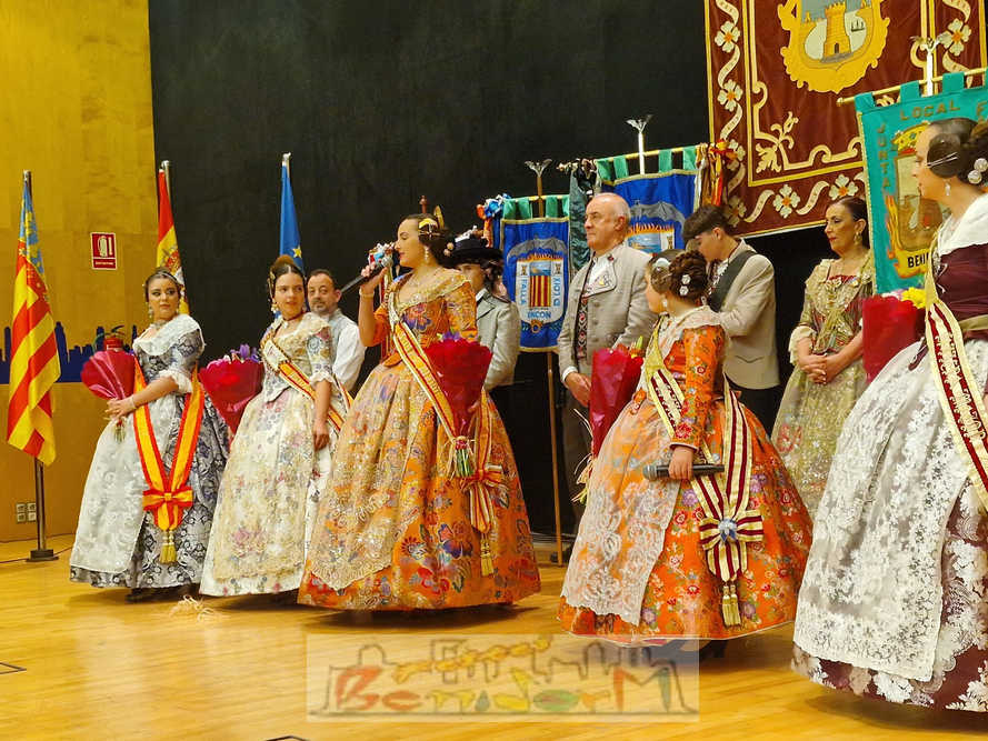 Sobre las 19.00 horas, se abría la ‘Crida’ con la subida al escenario de la presidenta de la Junta Local Fallera, María Ángeles Espinosa, acompañada por el miembro de la Junta Local, Marisa García. Después lo han hecho el estandarte de la Falla Els Tolls con su presidente Wenceslao Peris y su fallera Mayor Teresa Peris. A continuación, el estandarte de la Falla Rincón de Loix ha precedido a su presidente infantil y su fallera mayor infantil, Samuel Cortés y Ariadna Orgilés. Tras ellos han subido el estandarte de la comisión con Javier Rico, presidente, y Olaya García, fallera mayor. Por último, el estandarte de la comisión infantil de la Falla Benidorm Centro ha hecho su aparición con el presidente infantil, Carlos de Torres, y la fallera mayor infantil, Adriana Baldó. Finalmente, el presidente de la comisión Benidorm Centro, Vicente Jorro y la fallera mayor, Laura Pascual, también han subido al escenario.