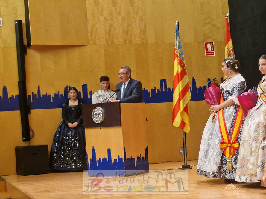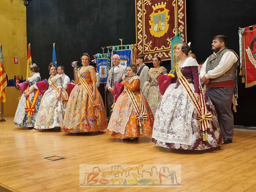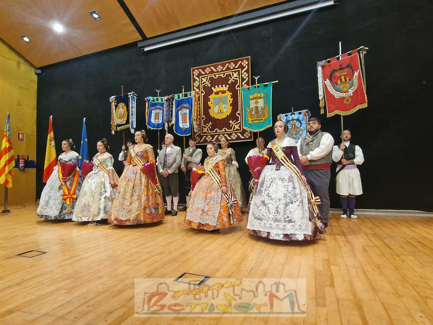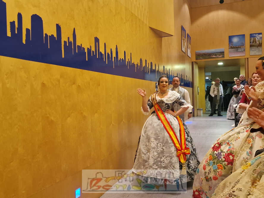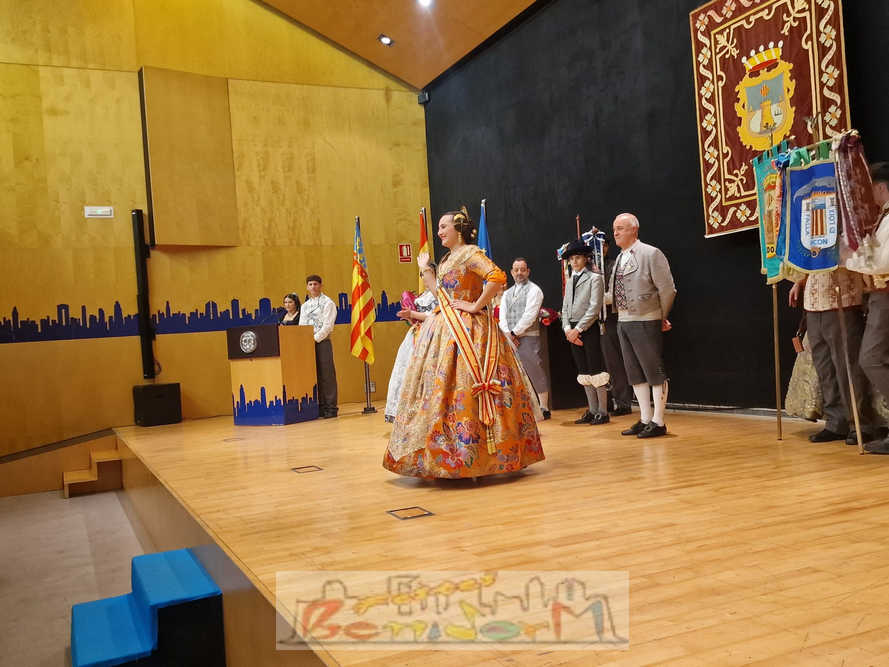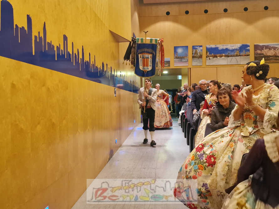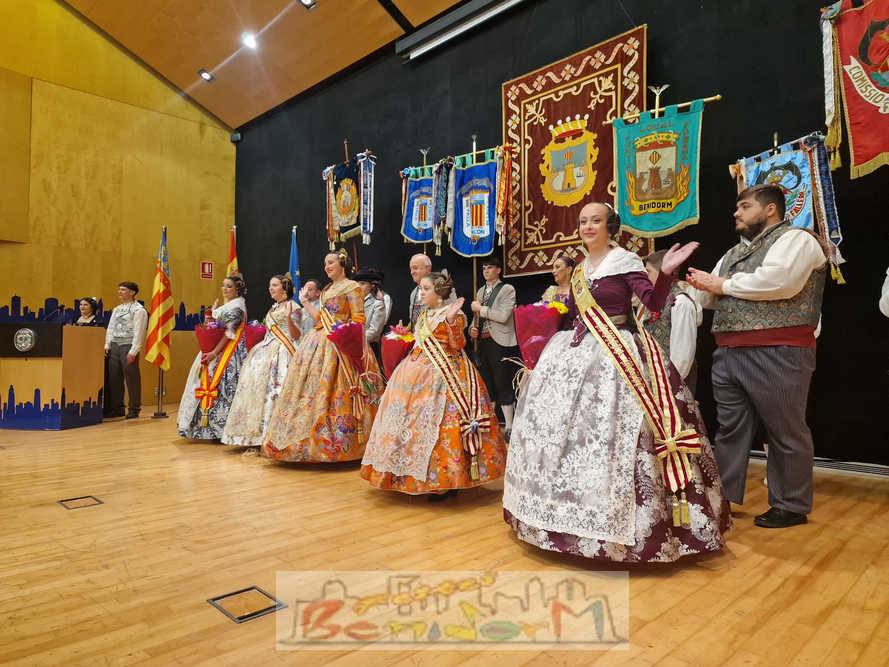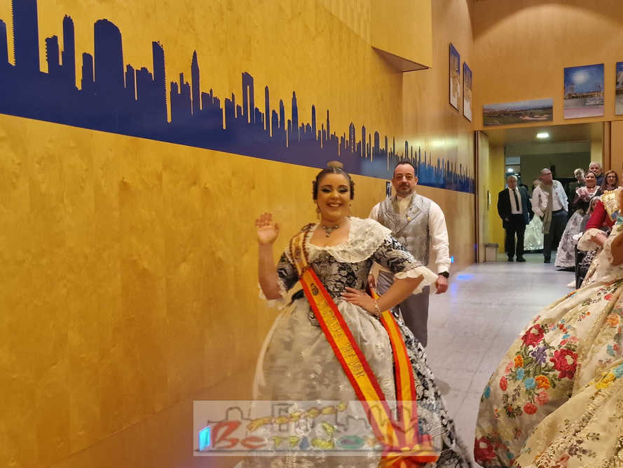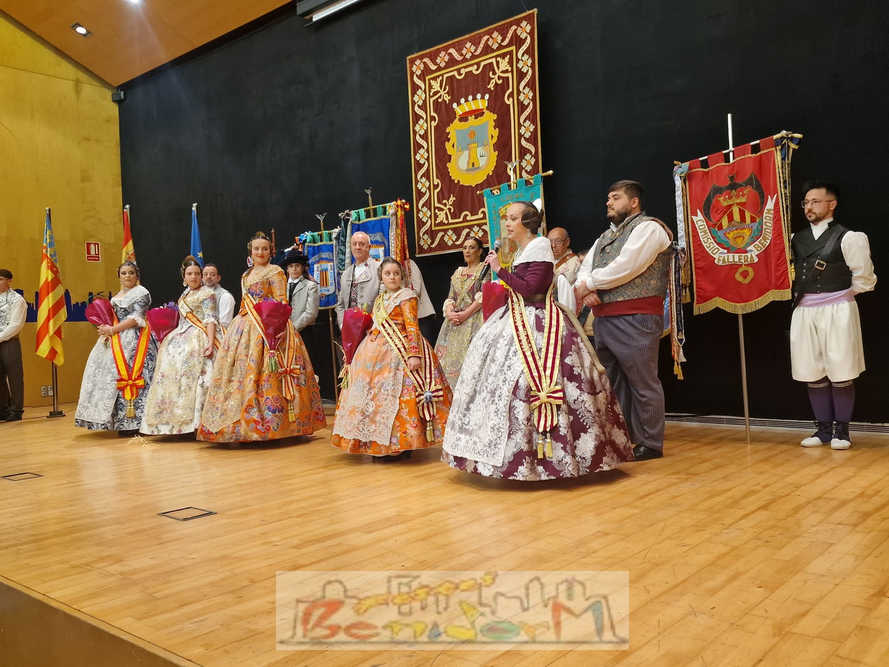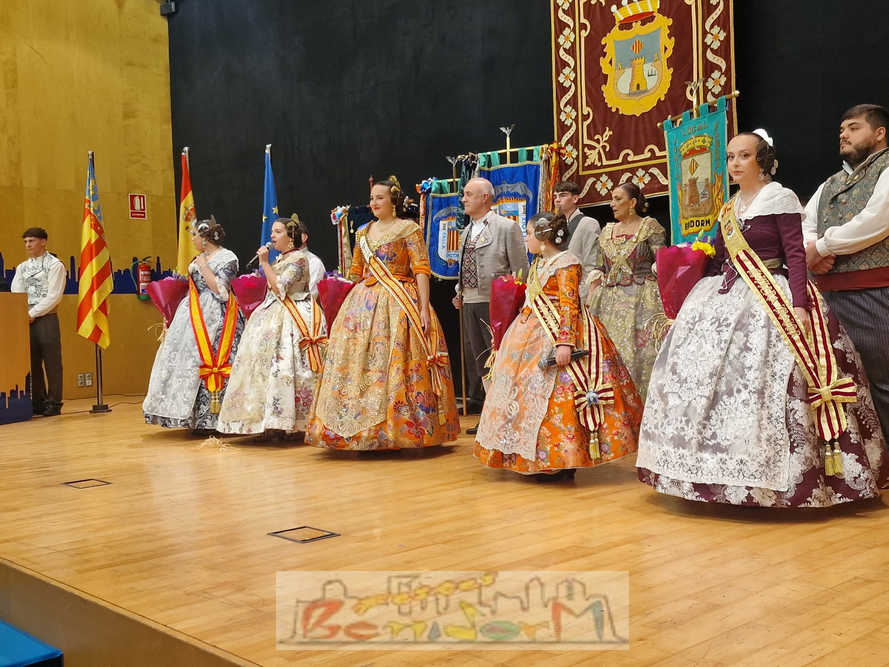 Sobre las 19.00 horas, se abría la ‘Crida’ con la subida al escenario de la presidenta de la Junta Local Fallera, María Ángeles Espinosa, acompañada por el miembro de la Junta Local, Marisa García. Después lo han hecho el estandarte de la Falla Els Tolls con su presidente Wenceslao Peris y su fallera Mayor Teresa Peris. A continuación, el estandarte de la Falla Rincón de Loix ha precedido a su presidente infantil y su fallera mayor infantil, Samuel Cortés y Ariadna Orgilés. Tras ellos han subido el estandarte de la comisión con Javier Rico, presidente, y Olaya García, fallera mayor. Por último, el estandarte de la comisión infantil de la Falla Benidorm Centro ha hecho su aparición con el presidente infantil, Carlos de Torres, y la fallera mayor infantil, Adriana Baldó. Finalmente, el presidente de la comisión Benidorm Centro, Vicente Jorro y la fallera mayor, Laura Pascual, también han subido al escenario.
