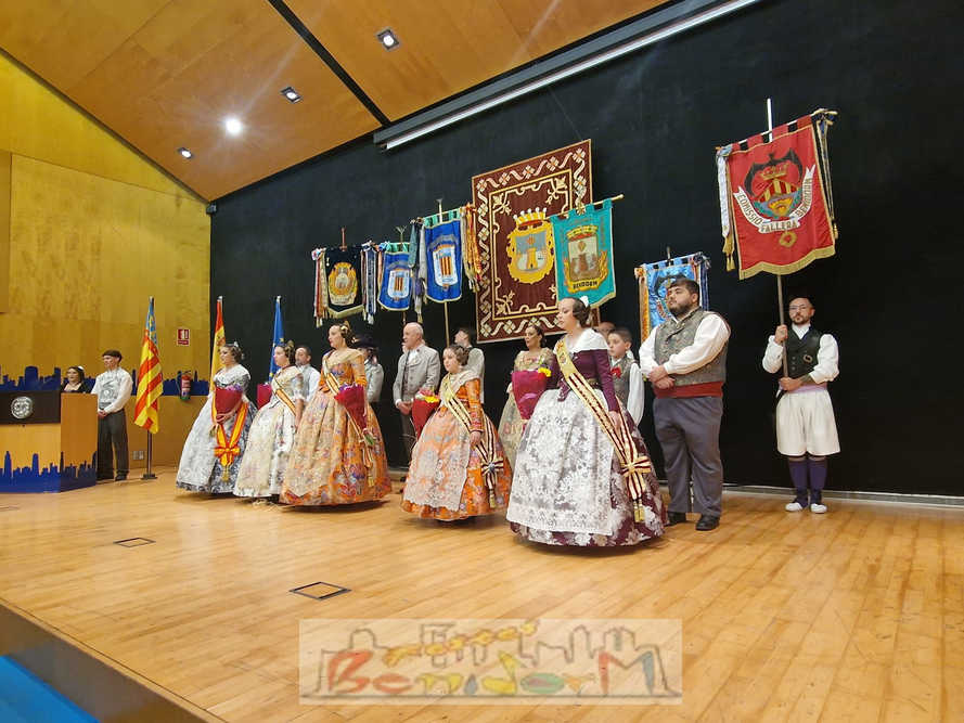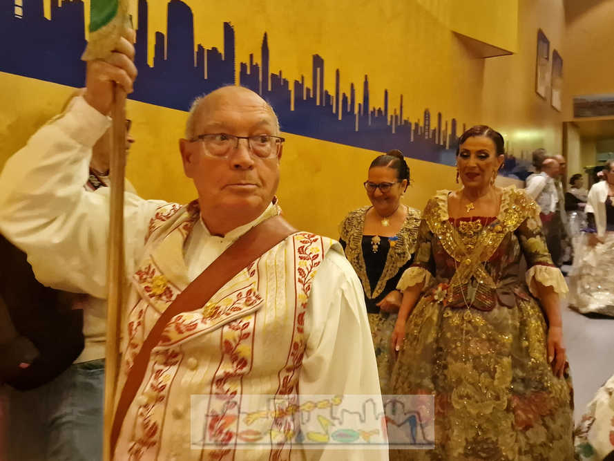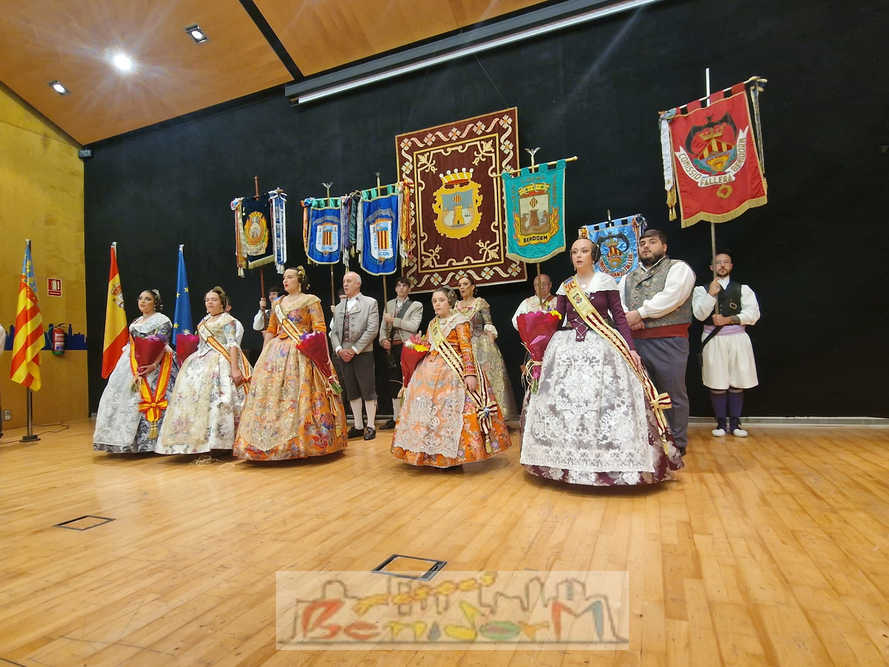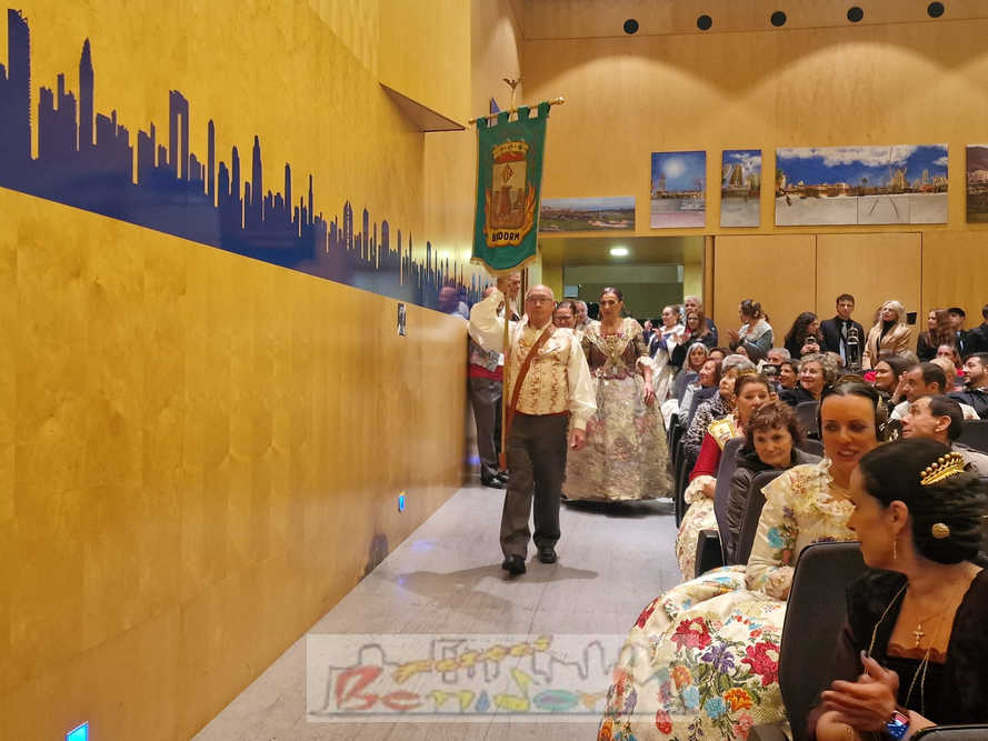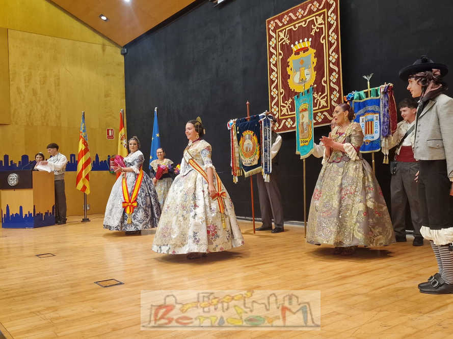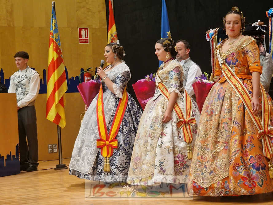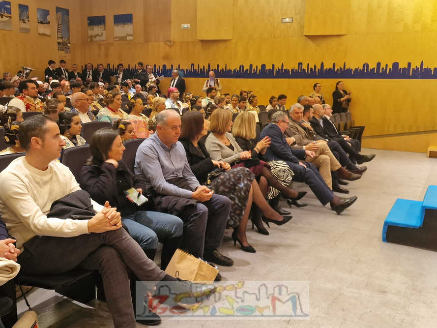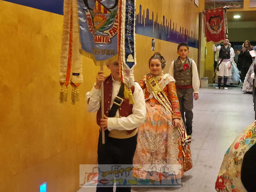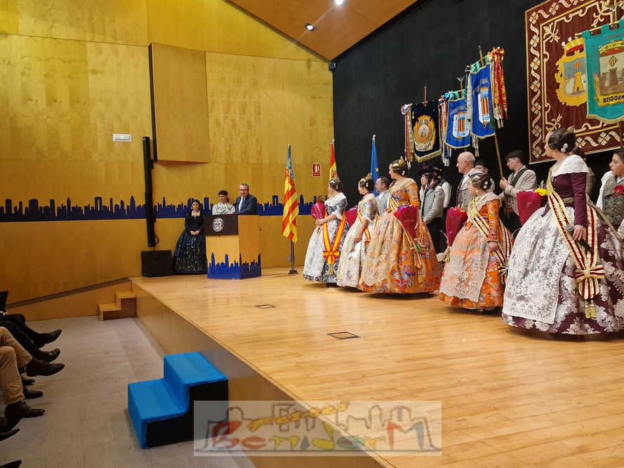 Sobre las 19.00 horas, se abría la ‘Crida’ con la subida al escenario de la presidenta de la Junta Local Fallera, María Ángeles Espinosa, acompañada por el miembro de la Junta Local, Marisa García. Después lo han hecho el estandarte de la Falla Els Tolls con su presidente Wenceslao Peris y su fallera Mayor Teresa Peris. A continuación, el estandarte de la Falla Rincón de Loix ha precedido a su presidente infantil y su fallera mayor infantil, Samuel Cortés y Ariadna Orgilés. Tras ellos han subido el estandarte de la comisión con Javier Rico, presidente, y Olaya García, fallera mayor. Por último, el estandarte de la comisión infantil de la Falla Benidorm Centro ha hecho su aparición con el presidente infantil, Carlos de Torres, y la fallera mayor infantil, Adriana Baldó. Finalmente, el presidente de la comisión Benidorm Centro, Vicente Jorro y la fallera mayor, Laura Pascual, también han subido al escenario.