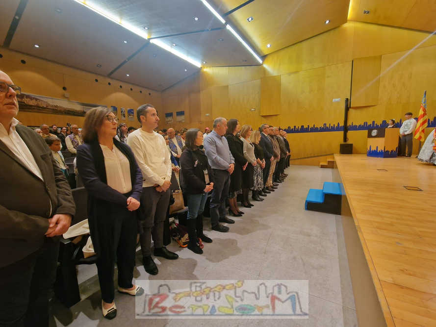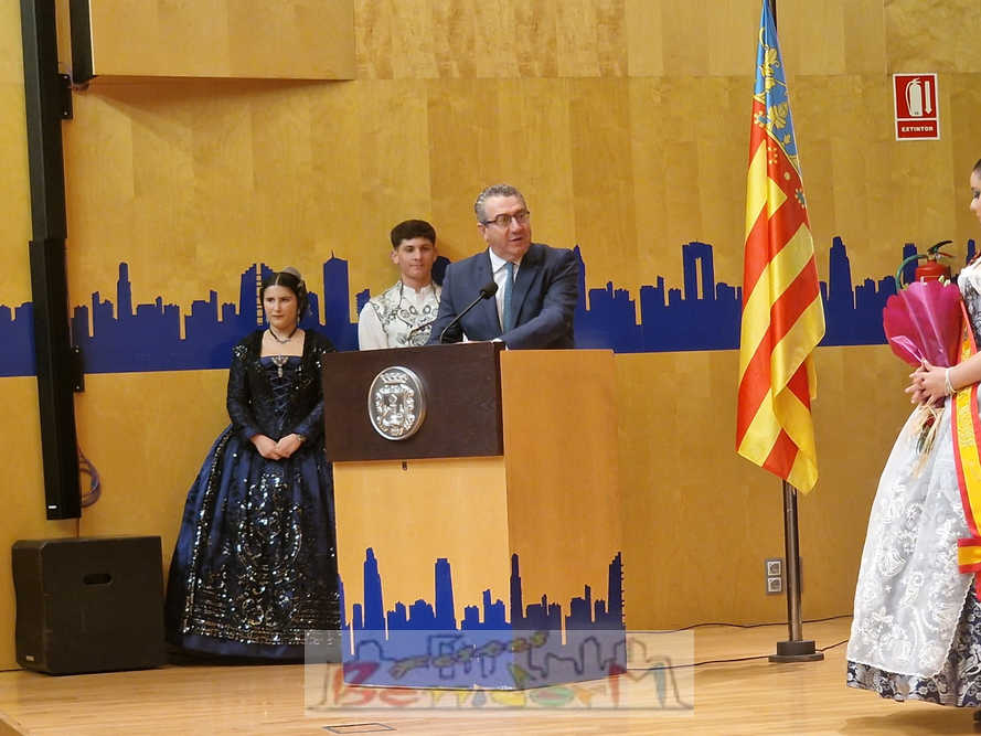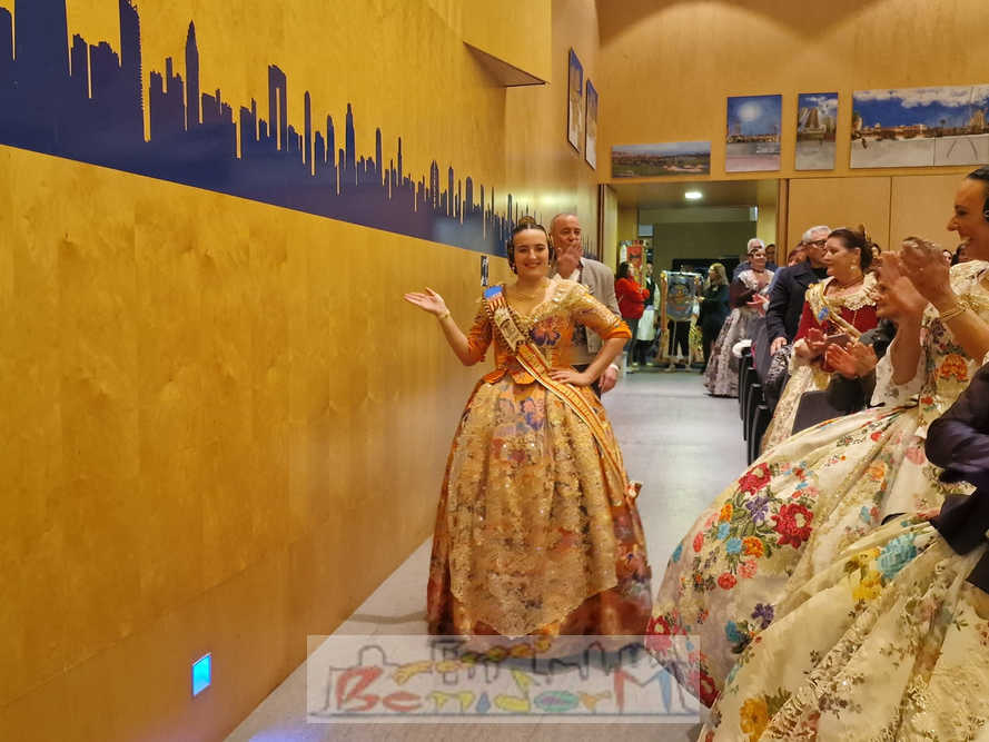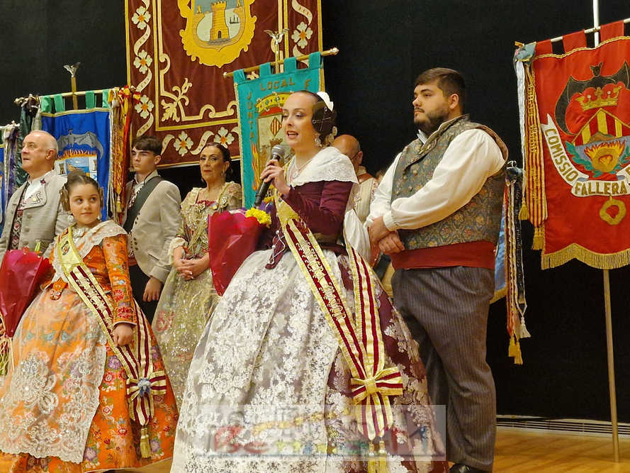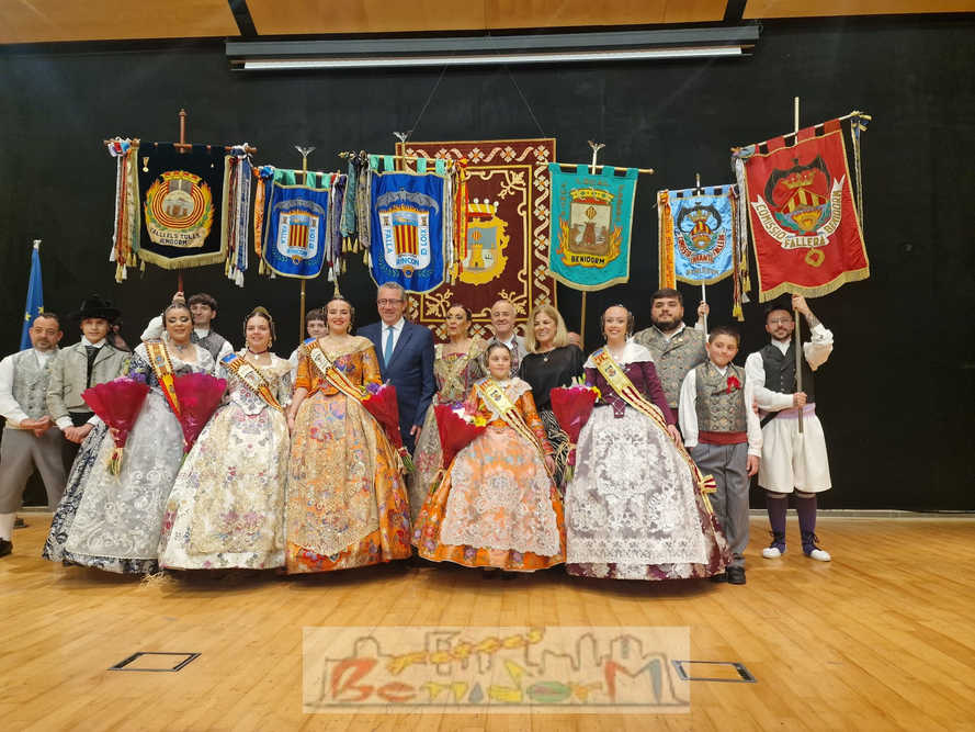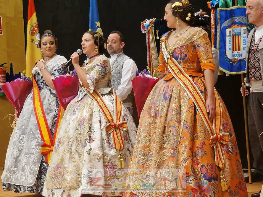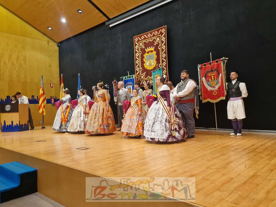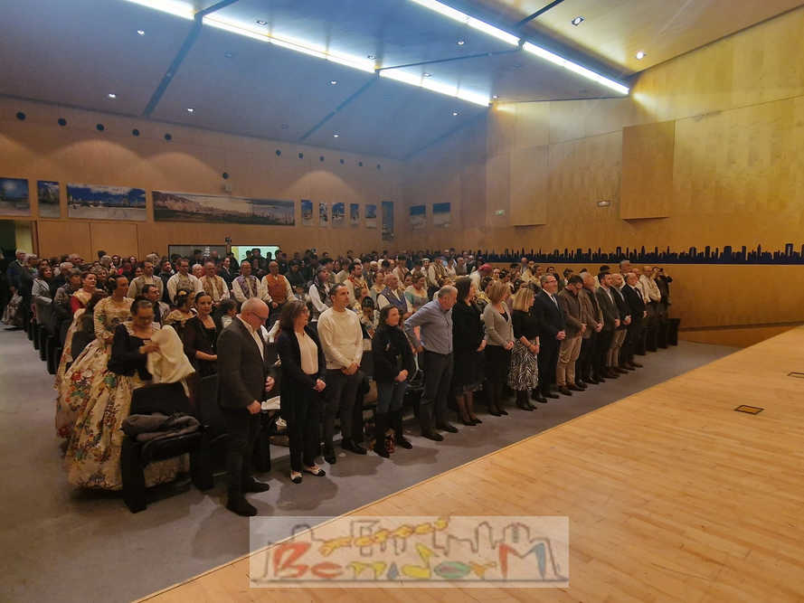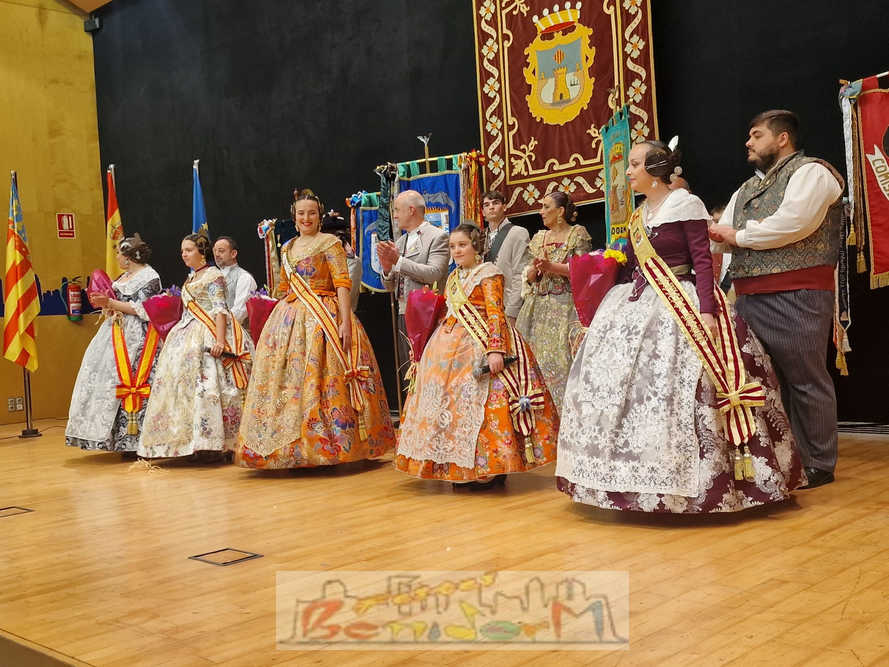 Sobre las 19.00 horas, se abría la ‘Crida’ con la subida al escenario de la presidenta de la Junta Local Fallera, María Ángeles Espinosa, acompañada por el miembro de la Junta Local, Marisa García. Después lo han hecho el estandarte de la Falla Els Tolls con su presidente Wenceslao Peris y su fallera Mayor Teresa Peris. A continuación, el estandarte de la Falla Rincón de Loix ha precedido a su presidente infantil y su fallera mayor infantil, Samuel Cortés y Ariadna Orgilés. Tras ellos han subido el estandarte de la comisión con Javier Rico, presidente, y Olaya García, fallera mayor. Por último, el estandarte de la comisión infantil de la Falla Benidorm Centro ha hecho su aparición con el presidente infantil, Carlos de Torres, y la fallera mayor infantil, Adriana Baldó. Finalmente, el presidente de la comisión Benidorm Centro, Vicente Jorro y la fallera mayor, Laura Pascual, también han subido al escenario.