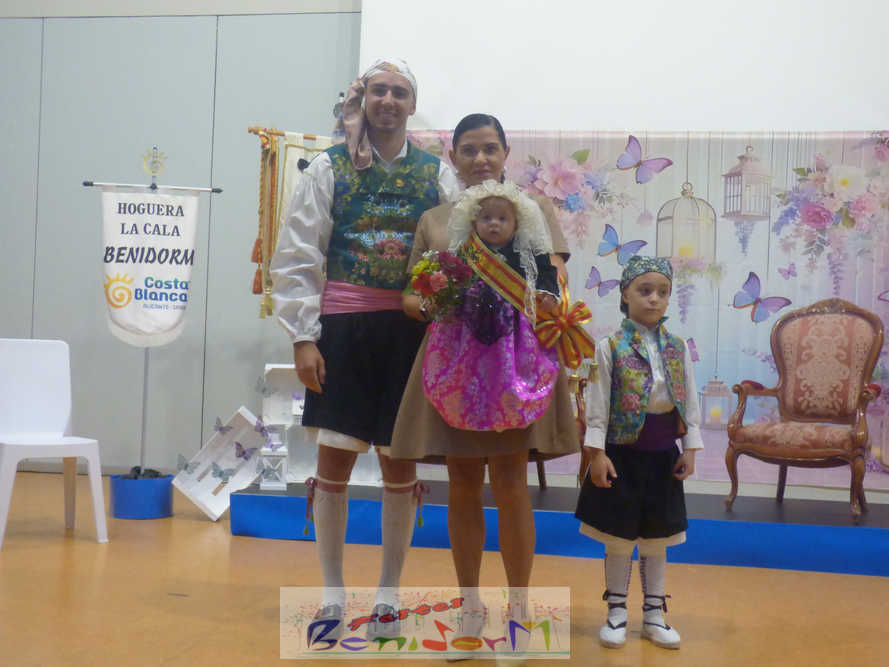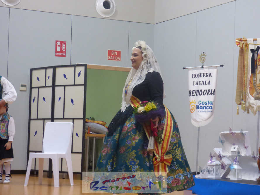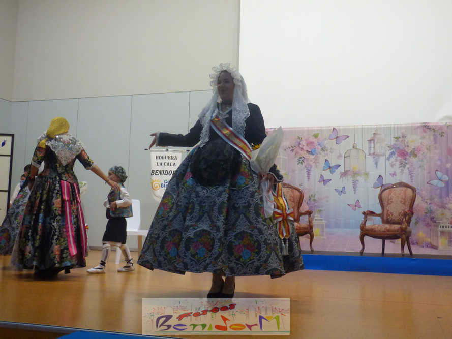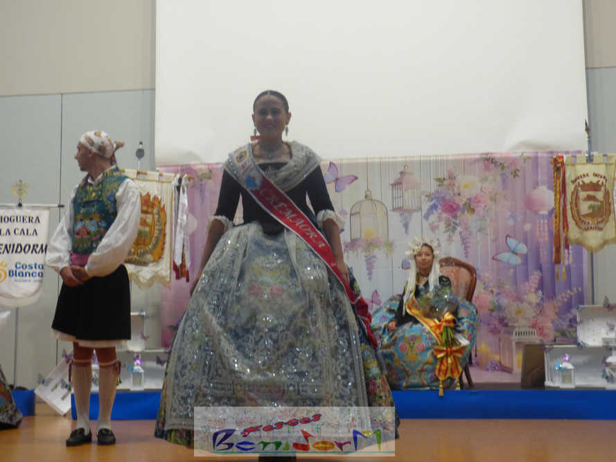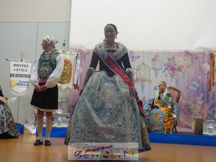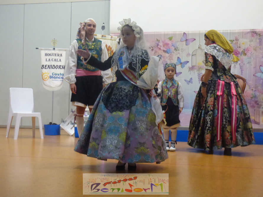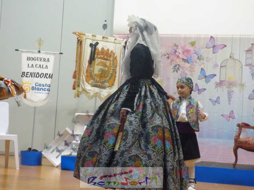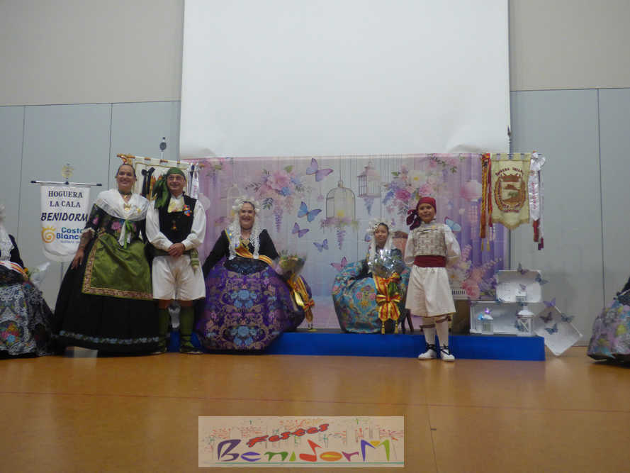 Seguidamente, los presidentes de la Hoguera La Cala, don Pedro Castro y el niño Héctor Quirante, subieron al escenario para imponer los corbatines a los estandartes de la Hoguera, símbolo de un año de trabajo y dedicación. La ceremonia continuó con la Bellezas y las Damas de honor de la belleza del Foc de Benidorm 2026, comenzando por la Dama de Honor infantil, la niña Valentina Baldo, y la Belleza del foc infantil 2025, Nerea Cerrato y Claudia Salas Belleza del foc infantil 2025