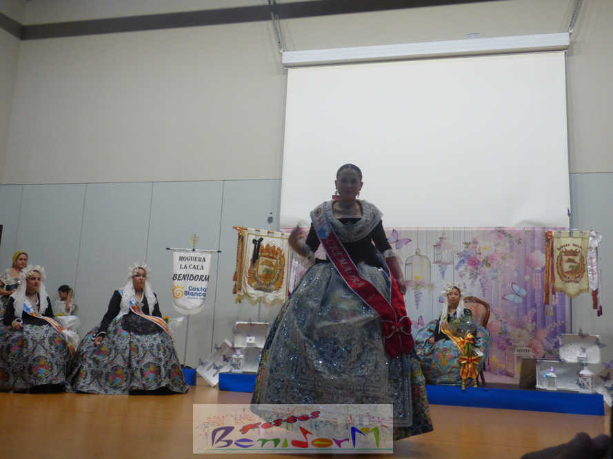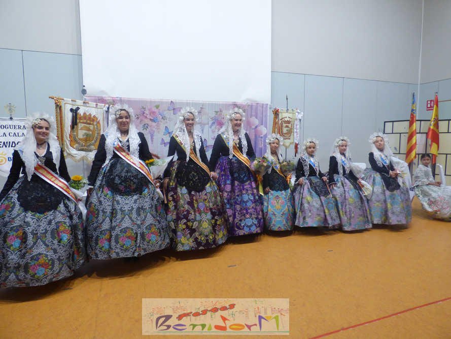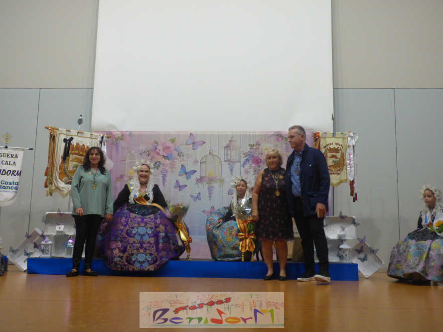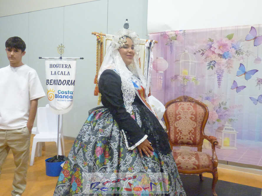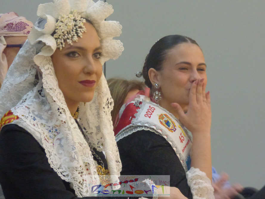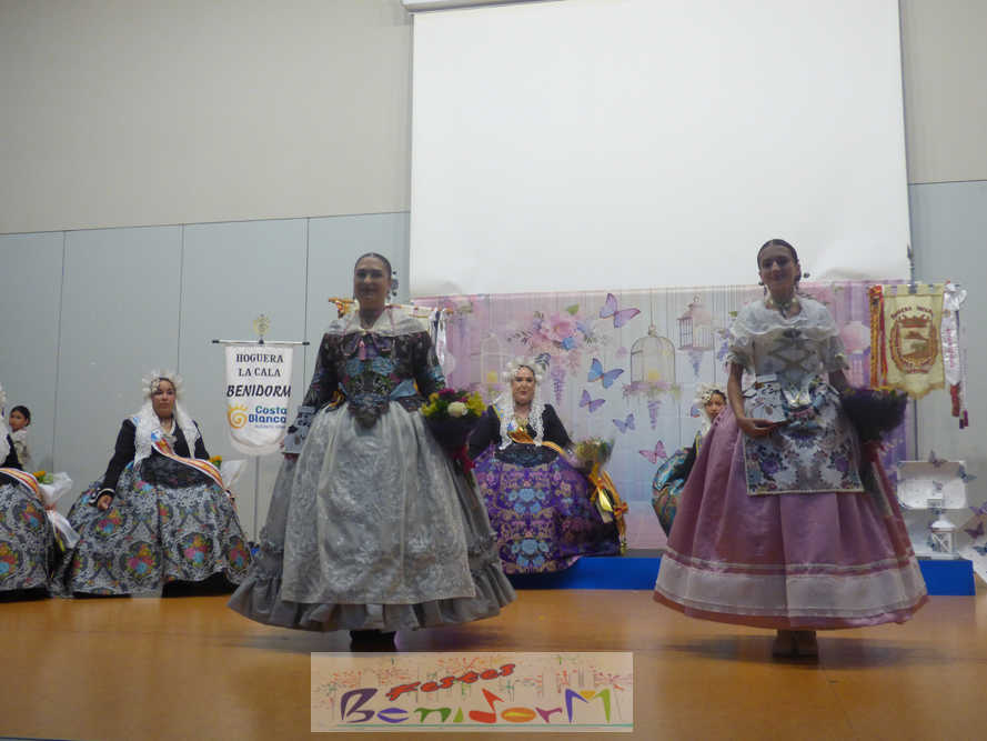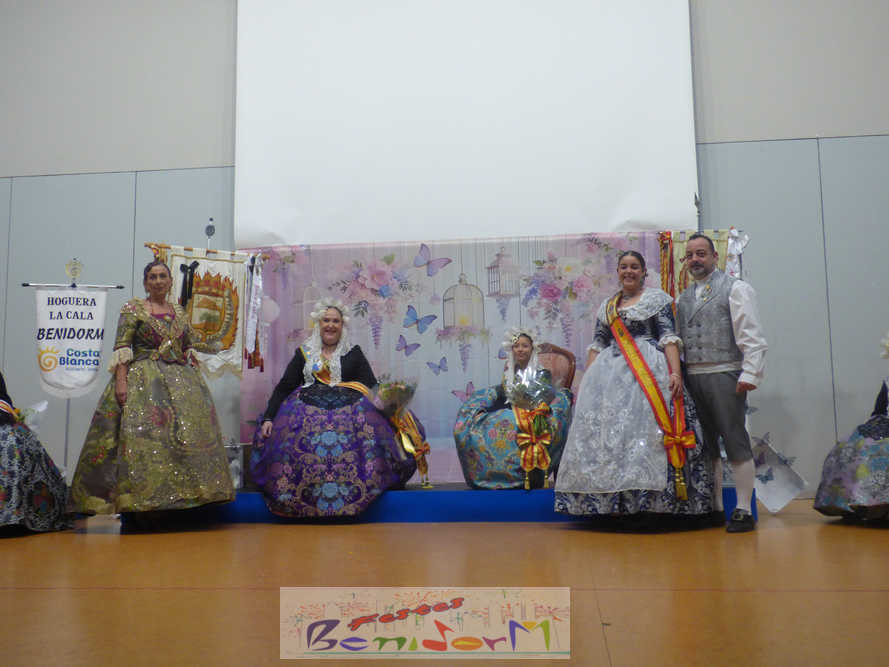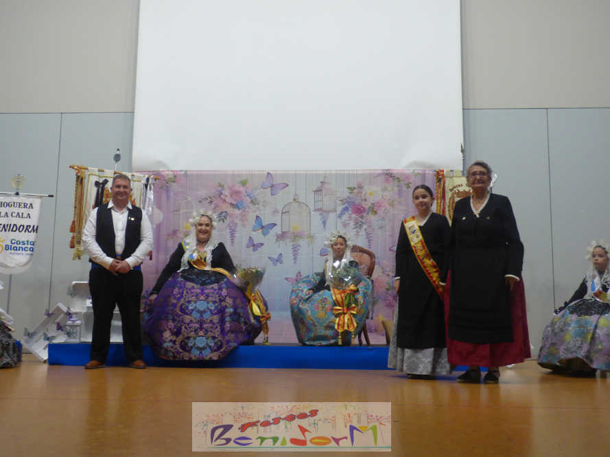 Posteriormente, subieron al escenario Laura Cerrato y Ana Orozco, Damas de Honor de la Belleza del Foc de Benidorm 2026, recibiendo igualmente su banda, antes de que la atención se centrara en las máximas representantes de la Hoguera La Cala: