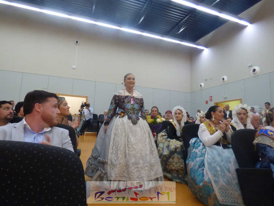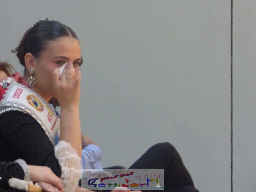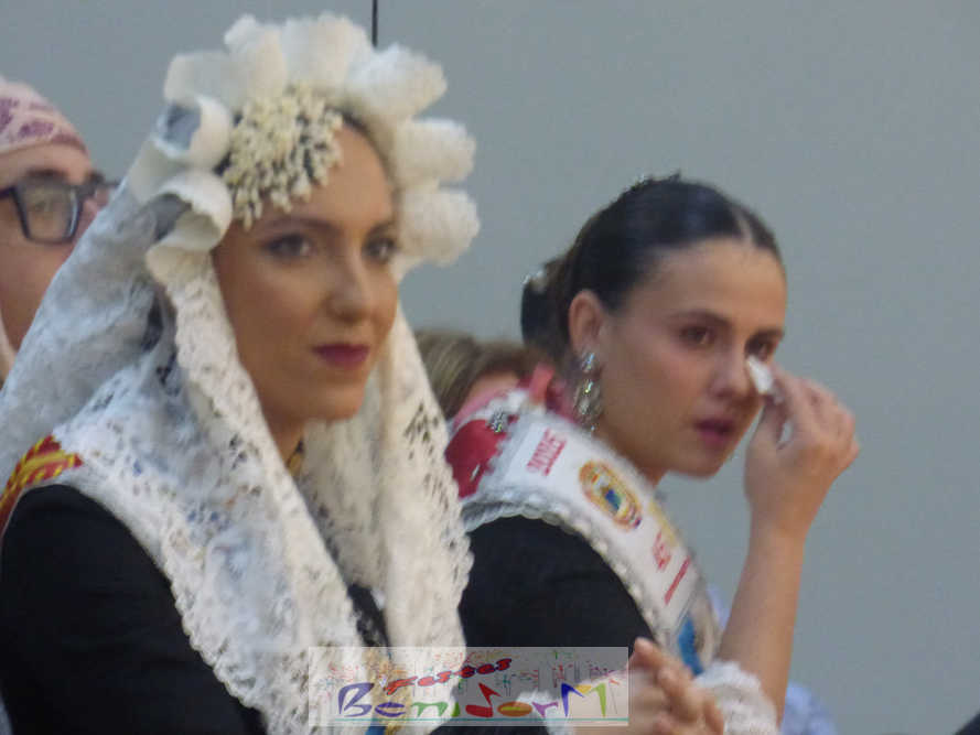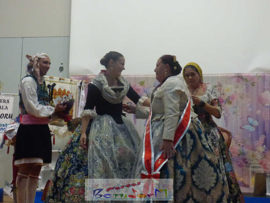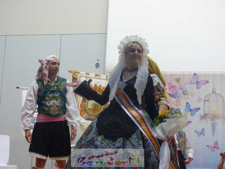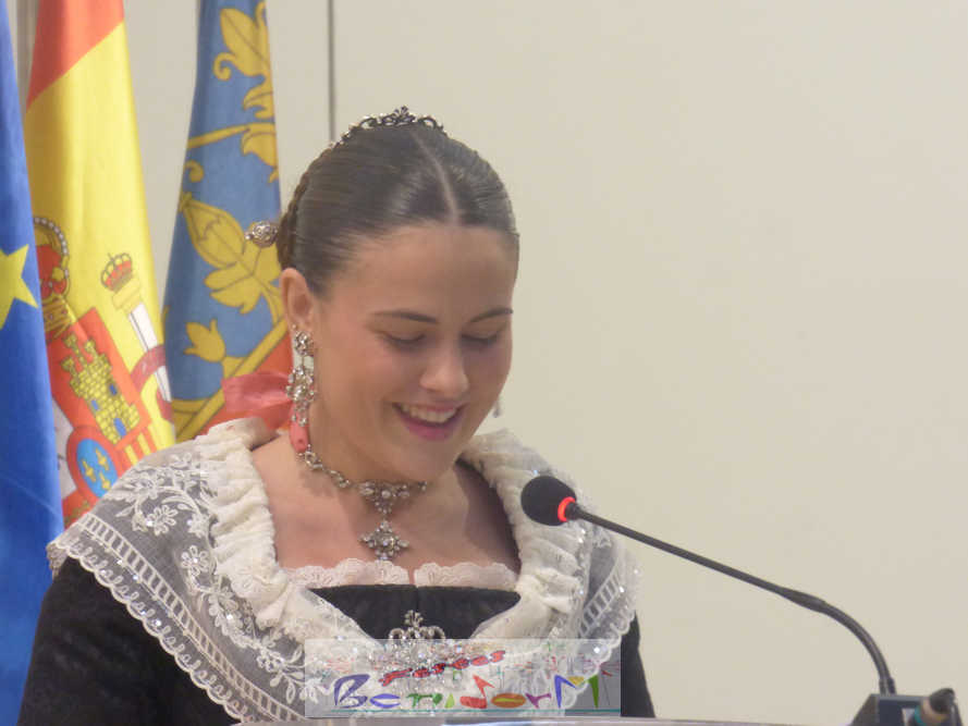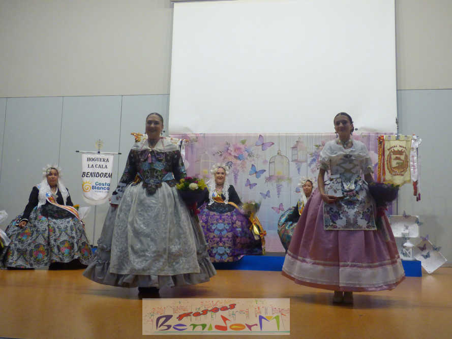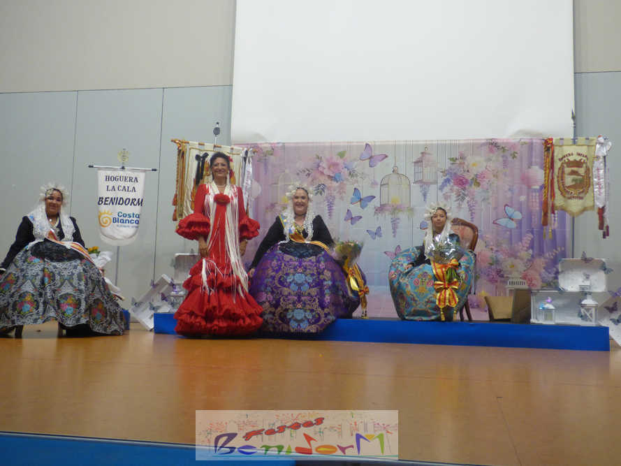 Posteriormente, subieron al escenario Laura Cerrato y Ana Orozco, Damas de Honor de la Belleza del Foc de Benidorm 2026, recibiendo igualmente su banda, antes de que la atención se centrara en las máximas representantes de la Hoguera La Cala: