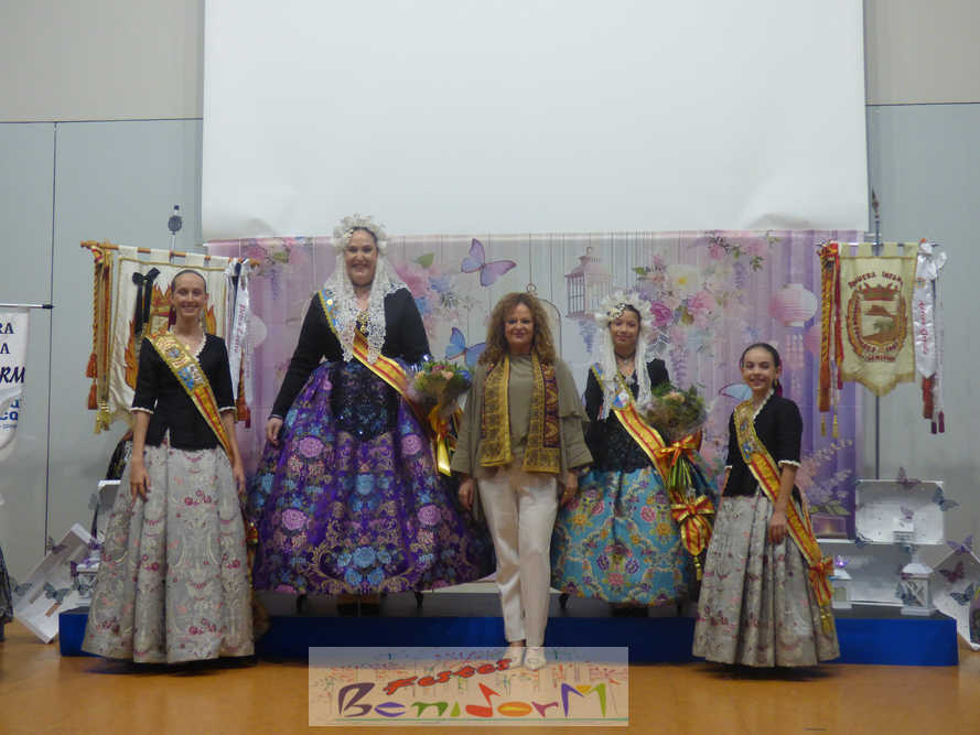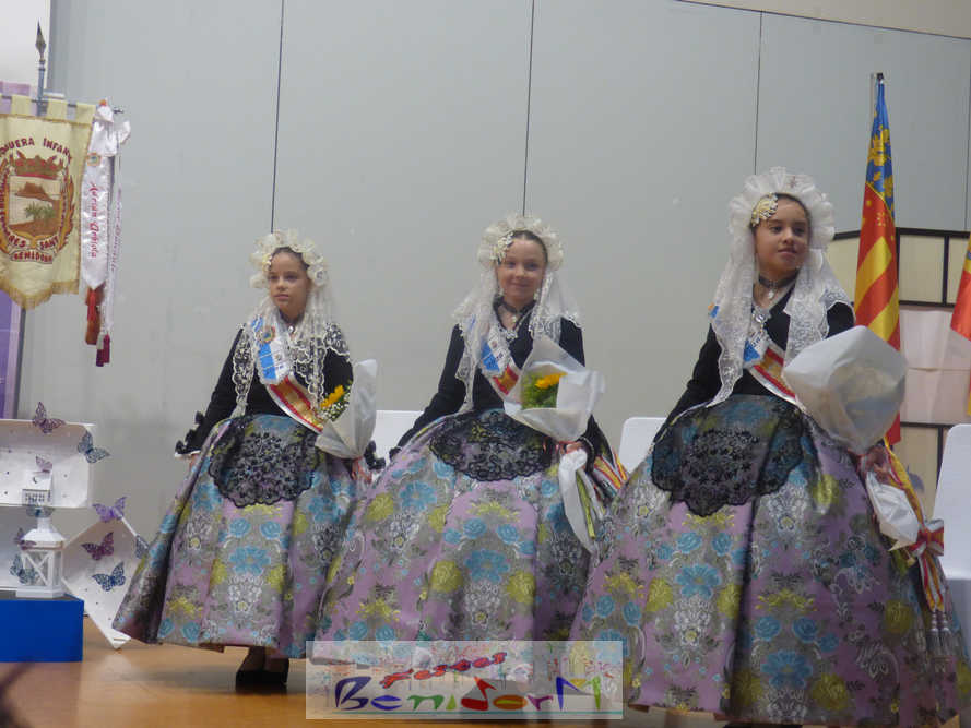 la mini Belleza del Foc de Benidorm Valeria Sanna. Seguidamente, se dieron a conocer las Damas de Honor de la Belleza del Foc infantil 2026, Eimy Guijarro, Julia Ruiz y Sadie Cataleya, a quienes se les impuso la banda correspondiente.