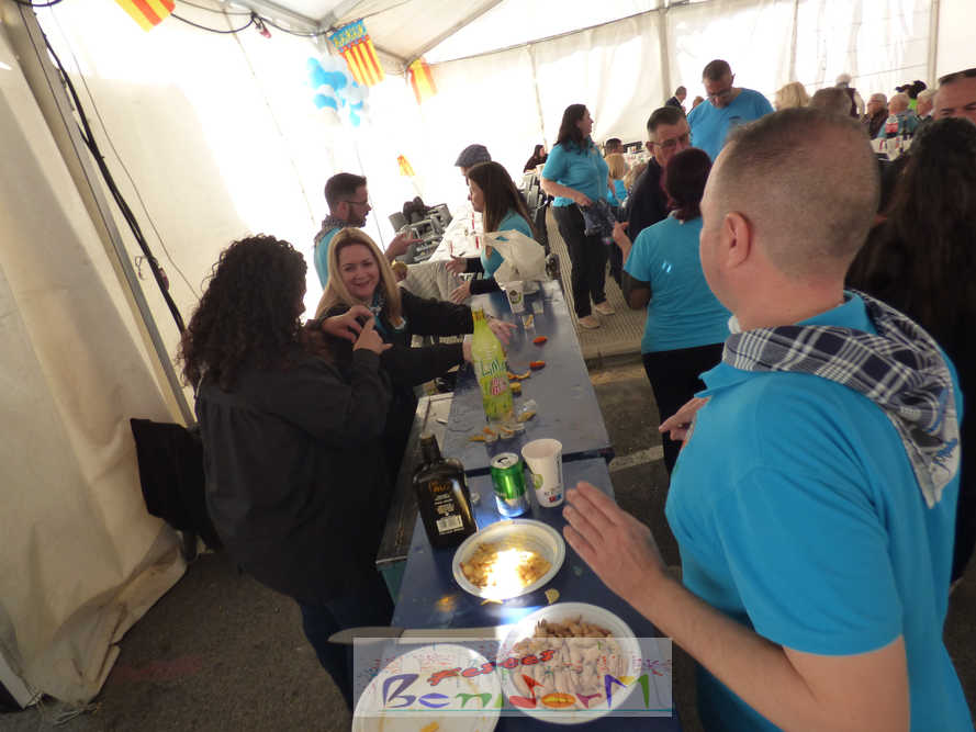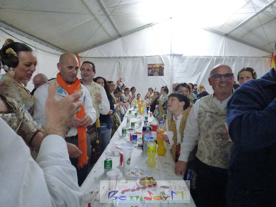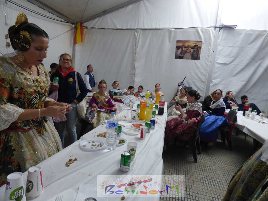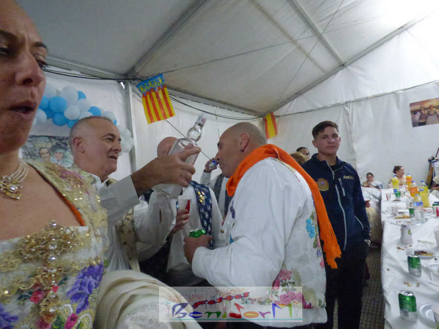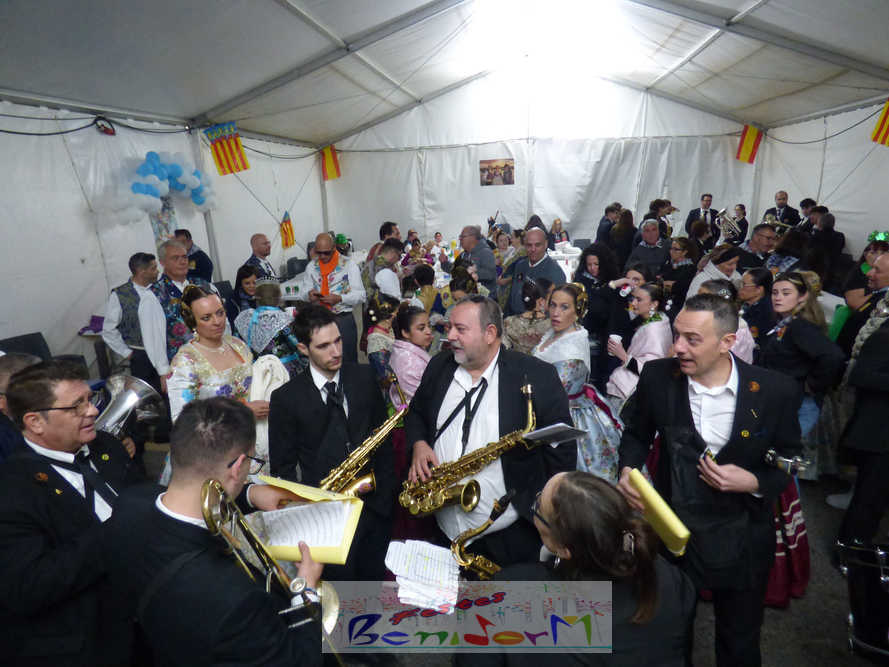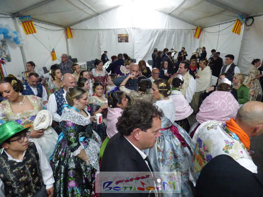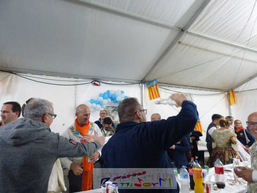 Ya al mediodía, se celebró la tradicional comida de hermandad, que contó con la asistencia de destacadas autoridades locales. Entre ellas, el alcalde de Benidorm, Toni Pérez; la concejala de Fiestas, Mariló Cebreros; así como diversos miembros de la corporación municipal, quienes compartieron mesa y ambiente con los falleros.