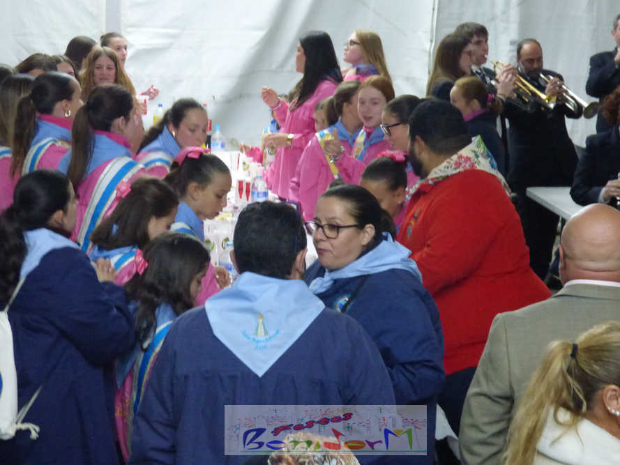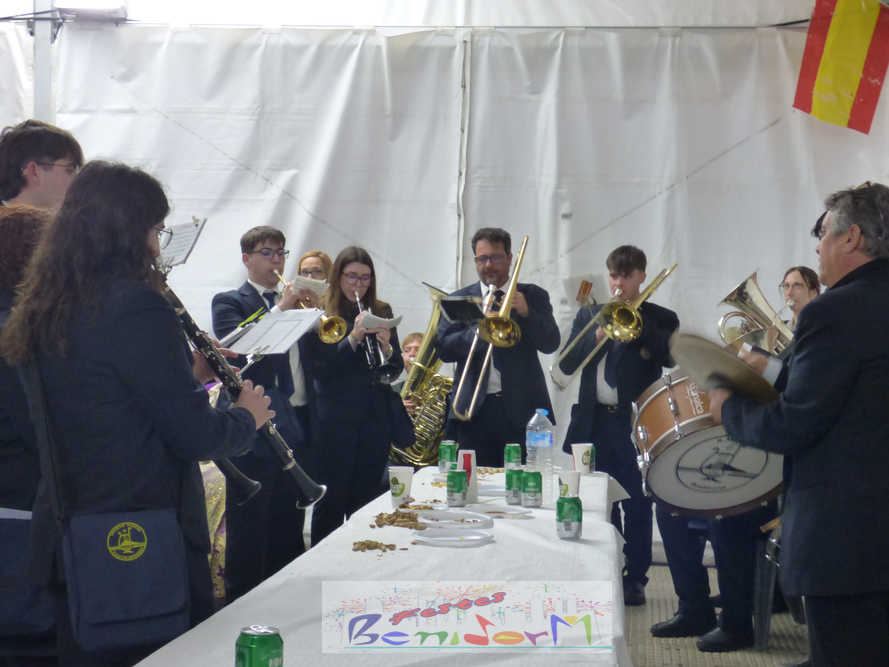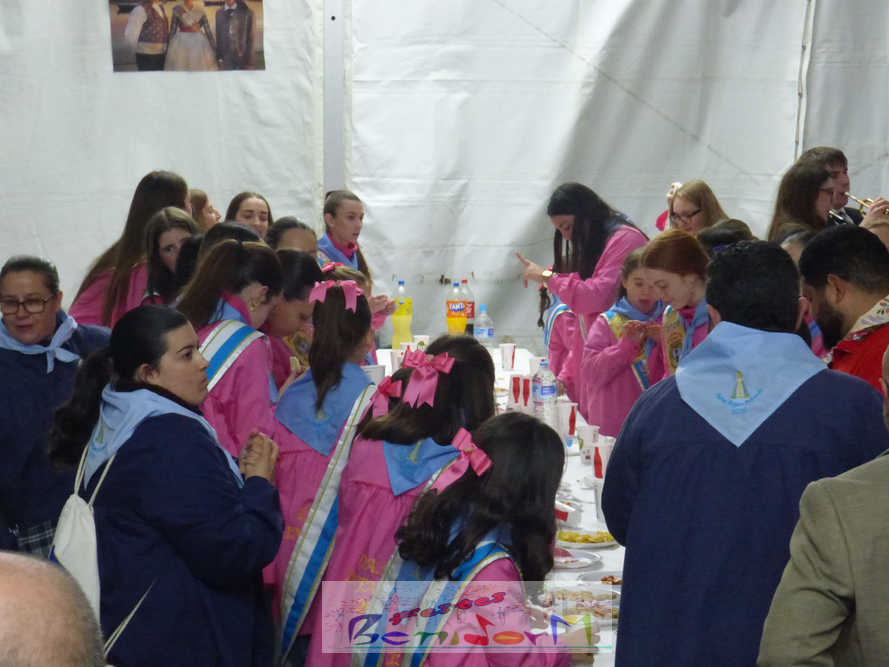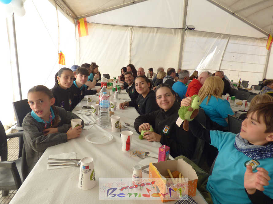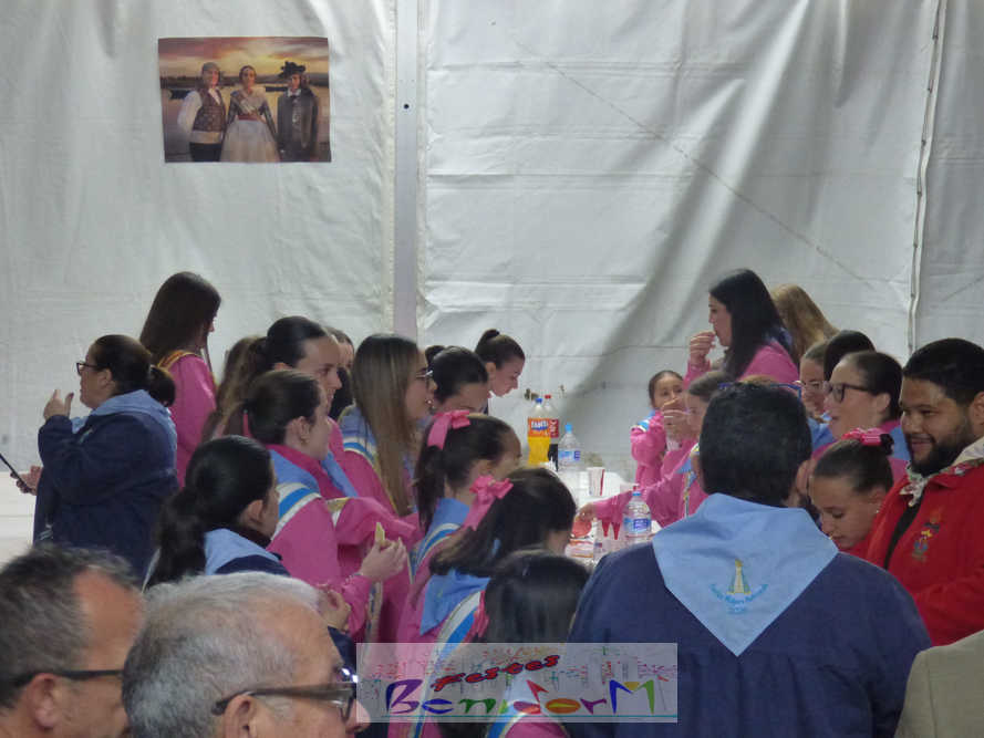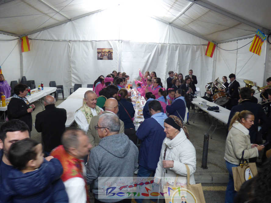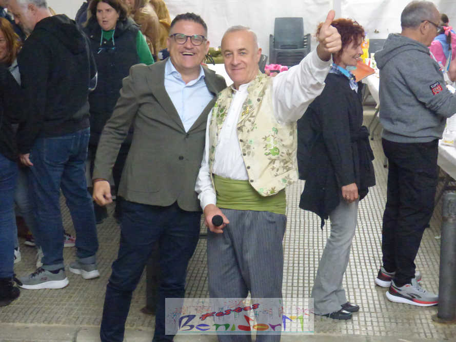 Ya al mediodía, se celebró la tradicional comida de hermandad, que contó con la asistencia de destacadas autoridades locales. Entre ellas, el alcalde de Benidorm, Toni Pérez; la concejala de Fiestas, Mariló Cebreros; así como diversos miembros de la corporación municipal, quienes compartieron mesa y ambiente con los falleros.