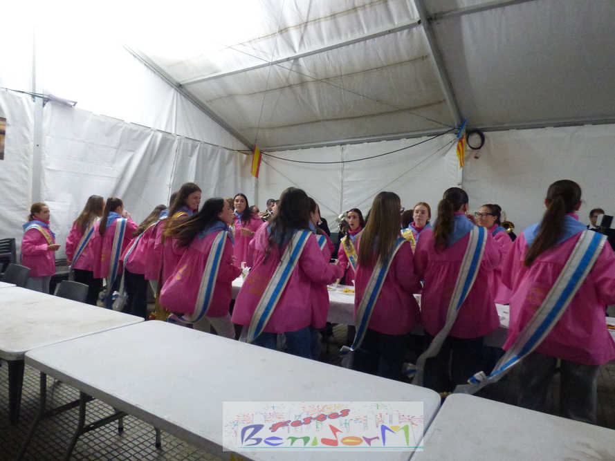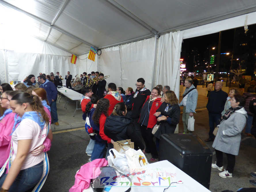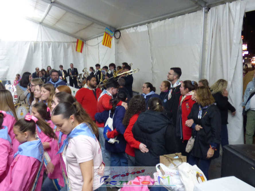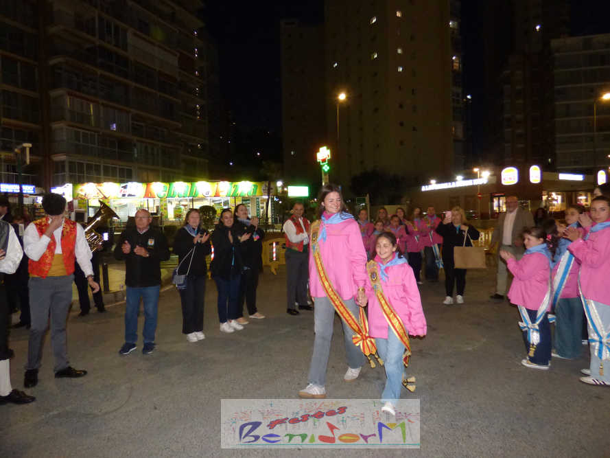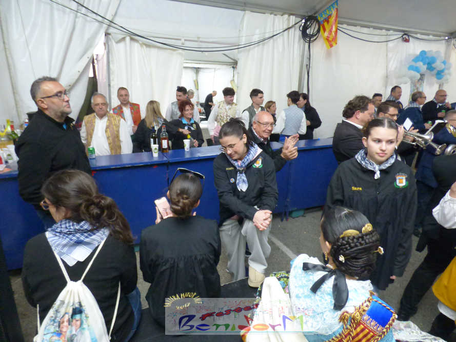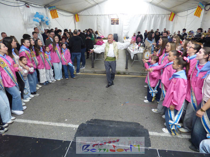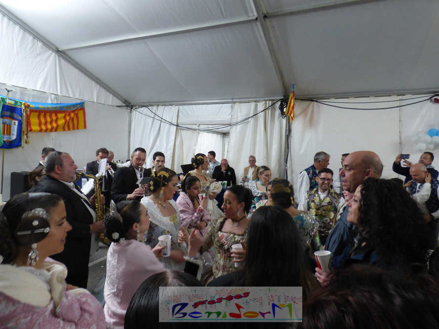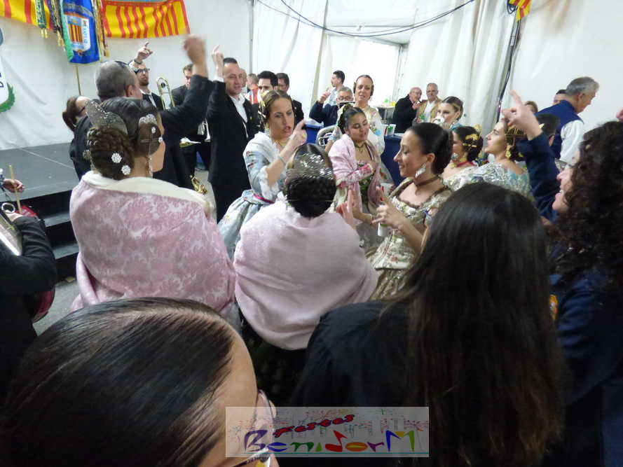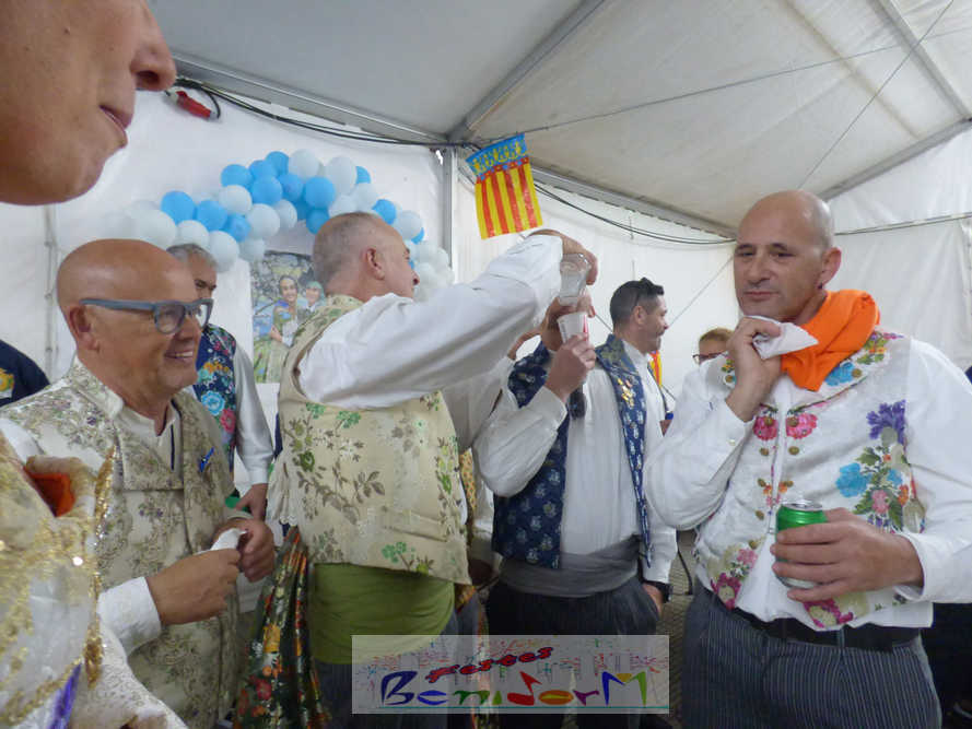 Por la tarde, la comisión recibió a su “familia del fuego”, en un emotivo encuentro en el que participaron las comisiones de la Falla Els Tolls y la Falla Benidorm Distrito Centro. También estuvieron presentes representantes de la Comisión de Fiestas Mayores Patronales de Benidorm, encabezados por su presidente, junto a las reinas y sus cortes de honor, así como miembros de la Asociación de Peñas.