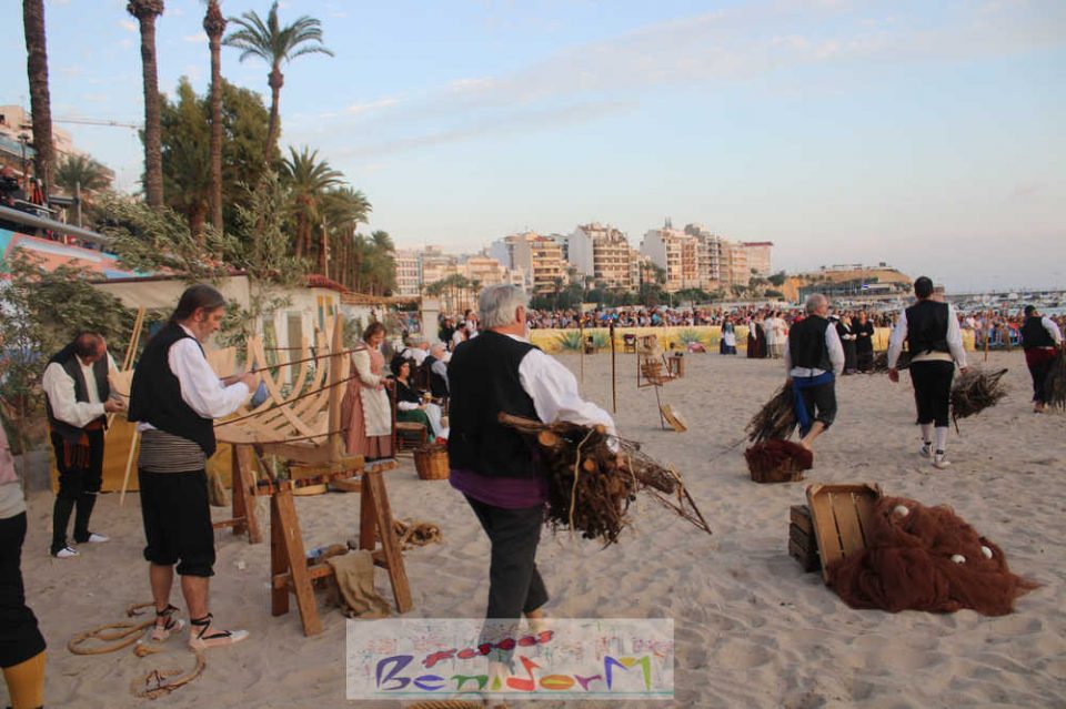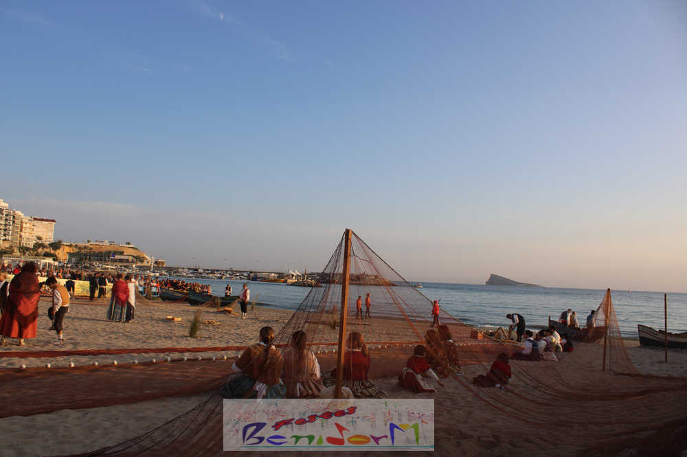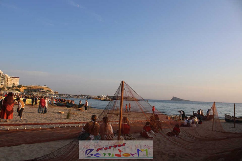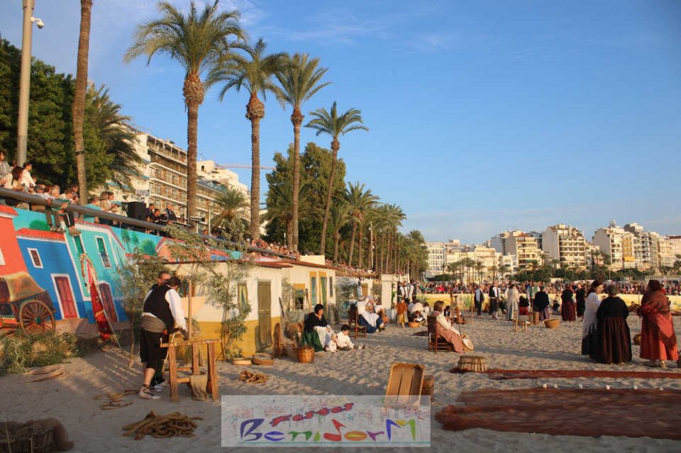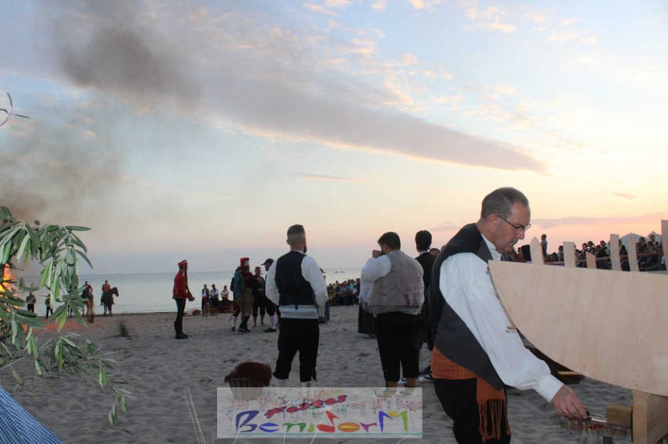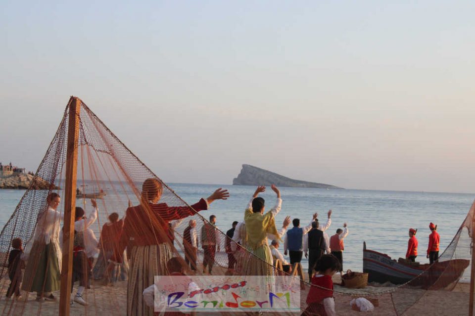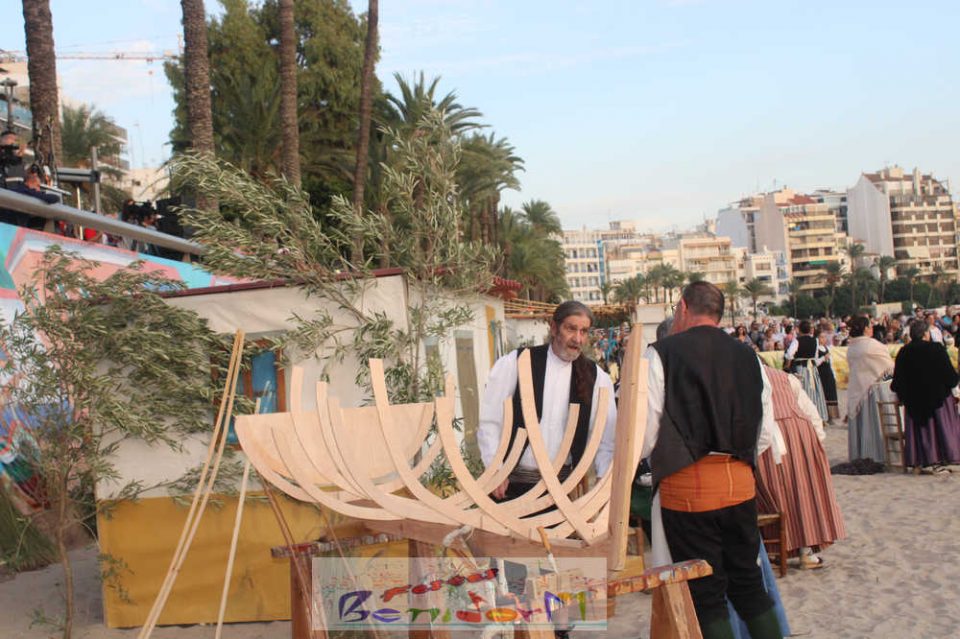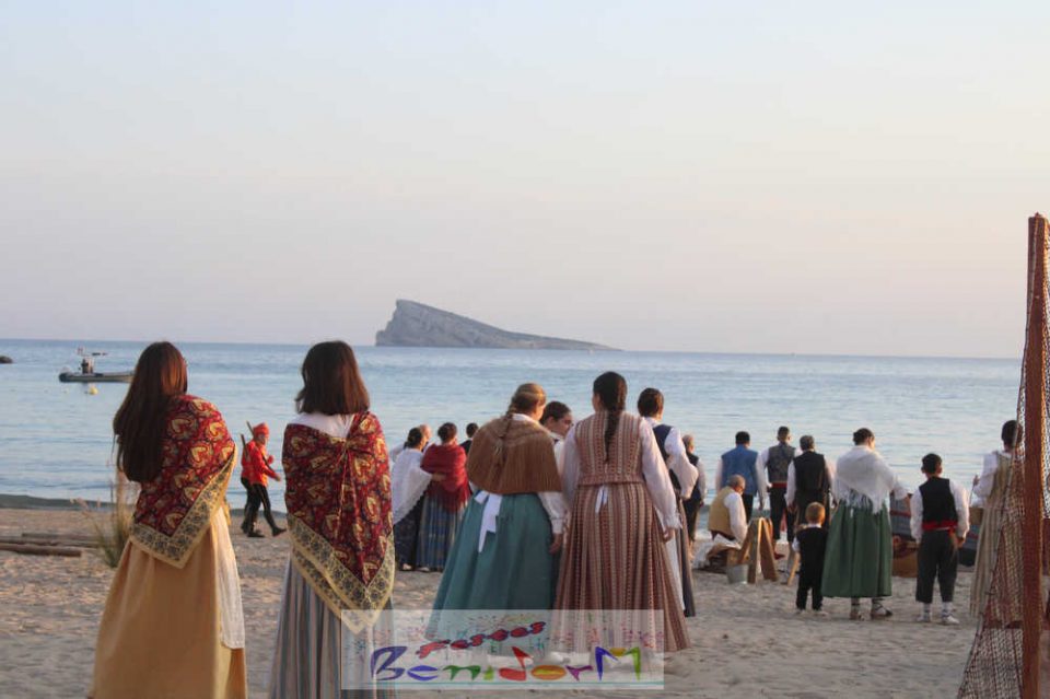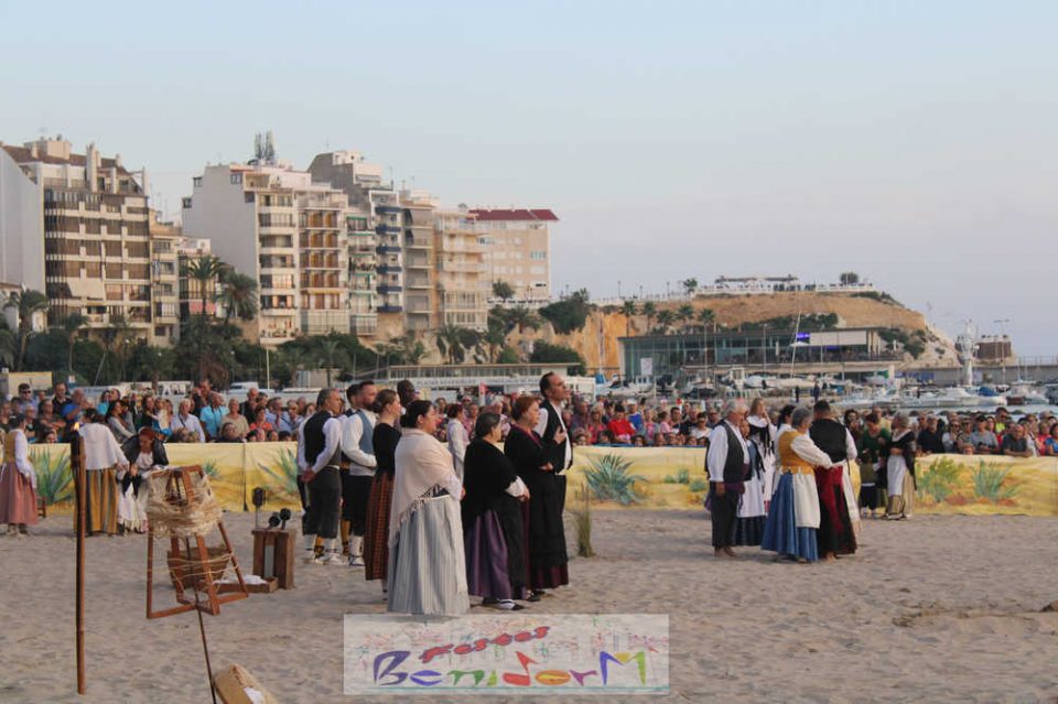 Lo hacía a bordo de una embarcación que navegaba sin tripulación, a la deriva, y que fue remolcada hasta la costa por tres marineros de Benidorm. La Escenificación del Hallazgo, declarada Fiesta de Interés Turístico de la Comunidad Valenciana, volvió a reunir en la arena de Poniente a varios centenares de personas para poder presenciar en directo el acto, que representa cada año desde 1971 la Associació Cultural y Recreativa La Barqueta. Antes de comenzar, sin embargo, se guardó un respetuoso minuto de silencio por las víctimas de la DANA de Valencia y por Jaume Climent, miembro de la ACR La Barqueta, fallecido hace menos de un año.