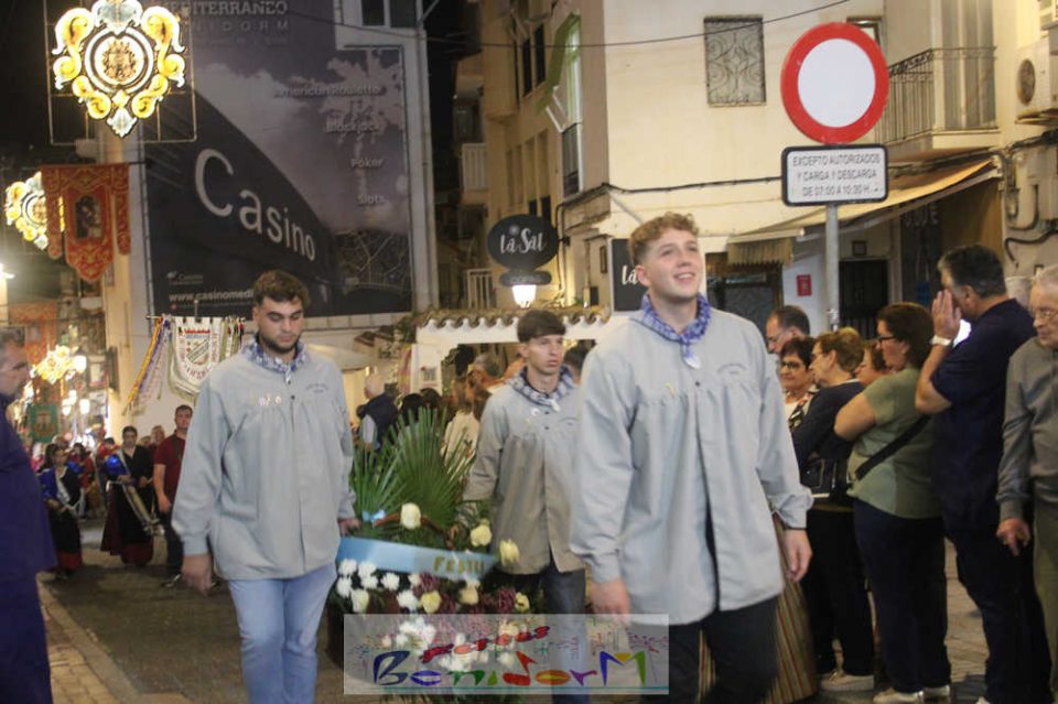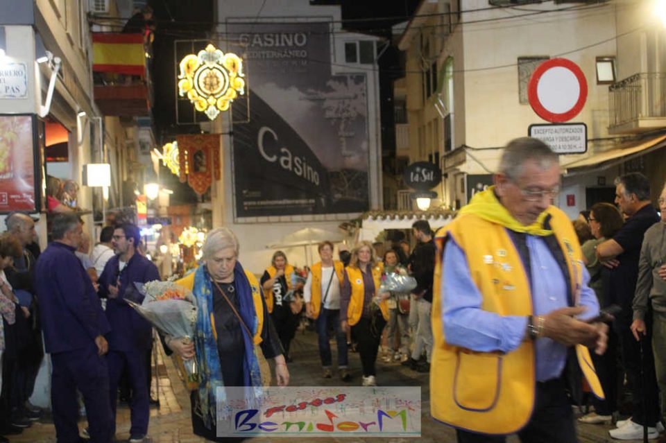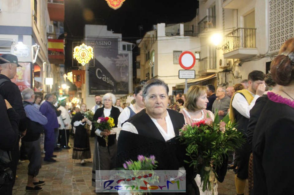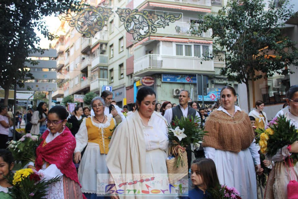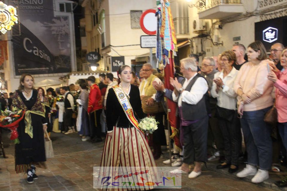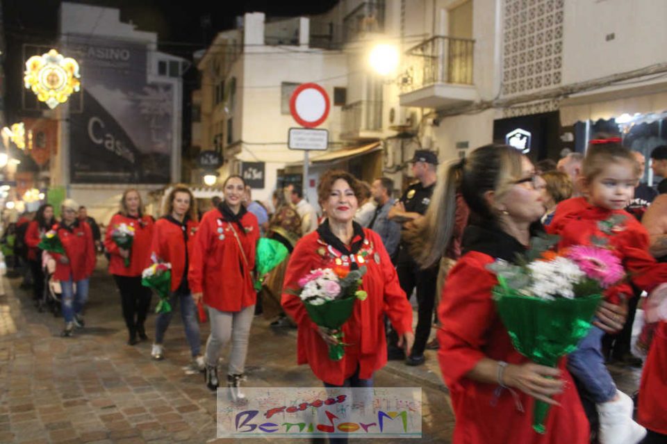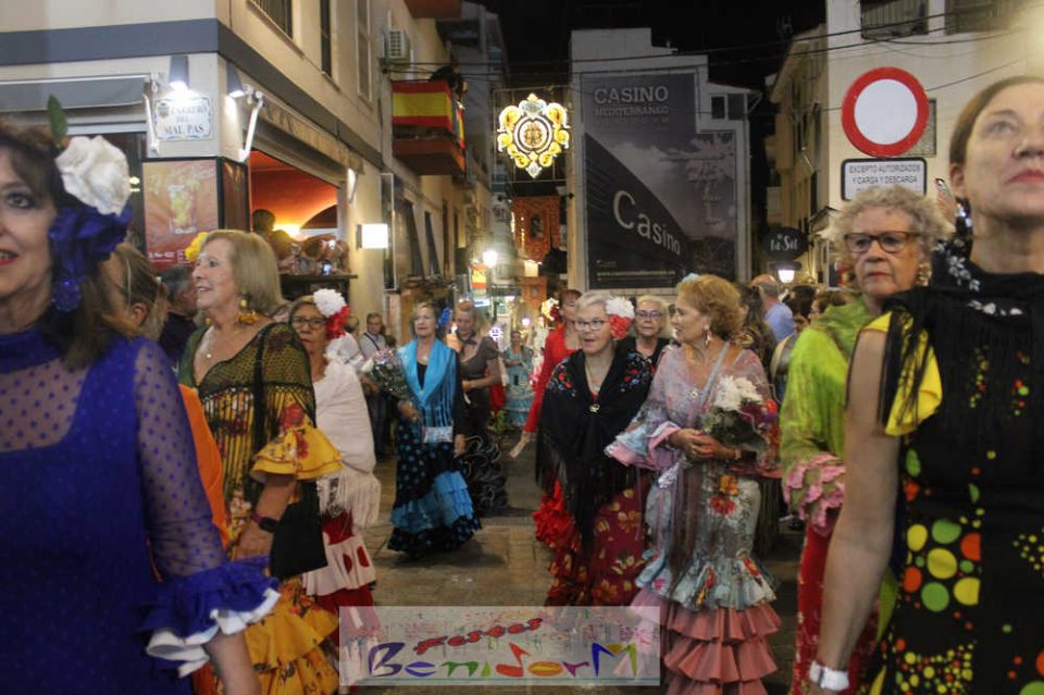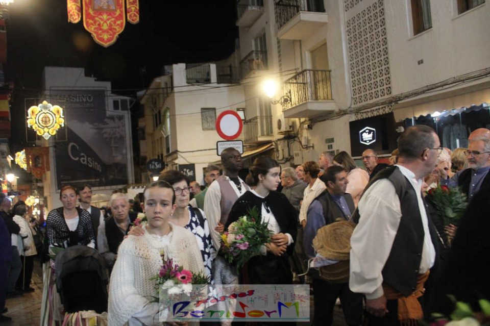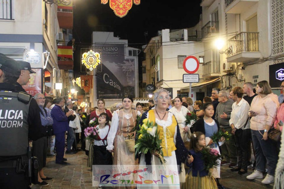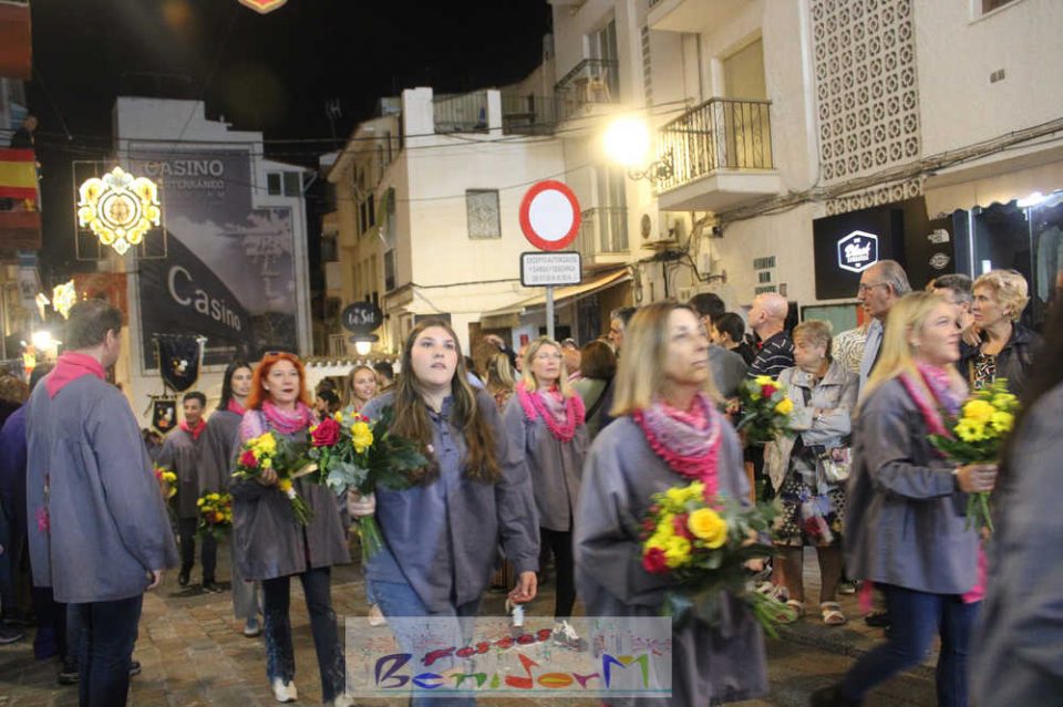 Centenares de benidormenses, vecinos de otras poblaciones y turistas participaron o aplaudieron este desfile a lo largo de todo el recorrido. Y quienes salieron en él lo hicieron portando vistosos y coloridos ramos o cestas de flores en señal de devoción a la patrona, a la que lanzaron besos, pidieron protección o ante la cual derramaron lágrimas de emoción o tristeza por el recuerdo de seres queridos.