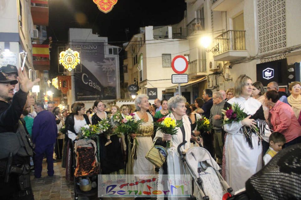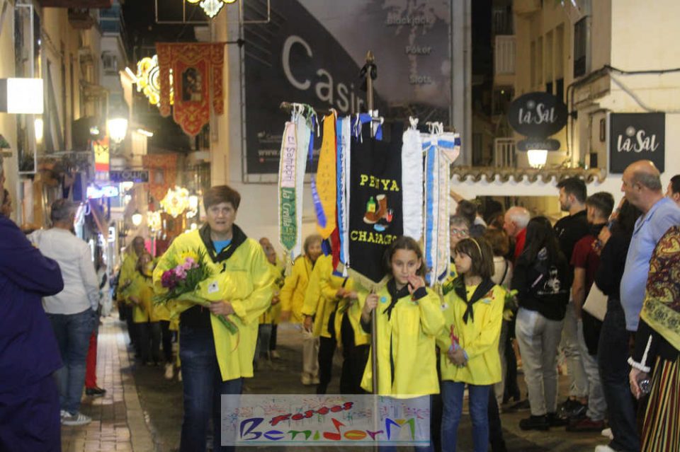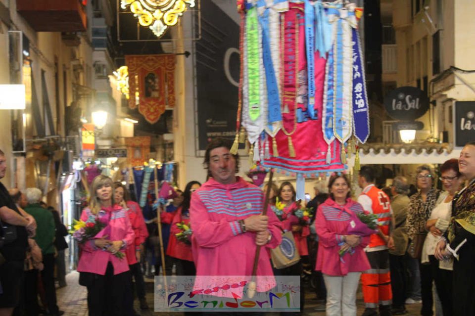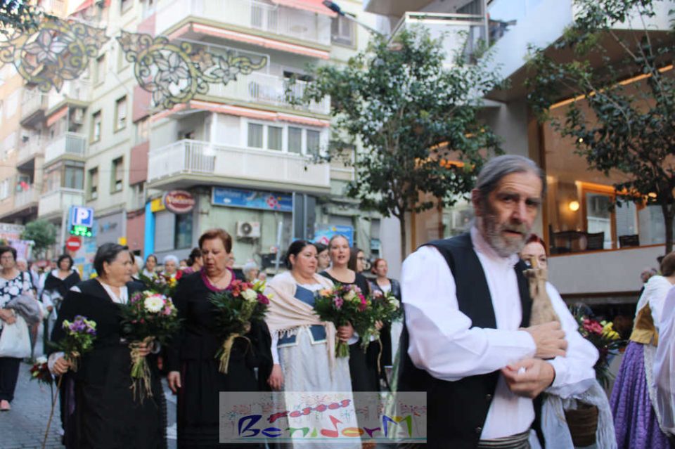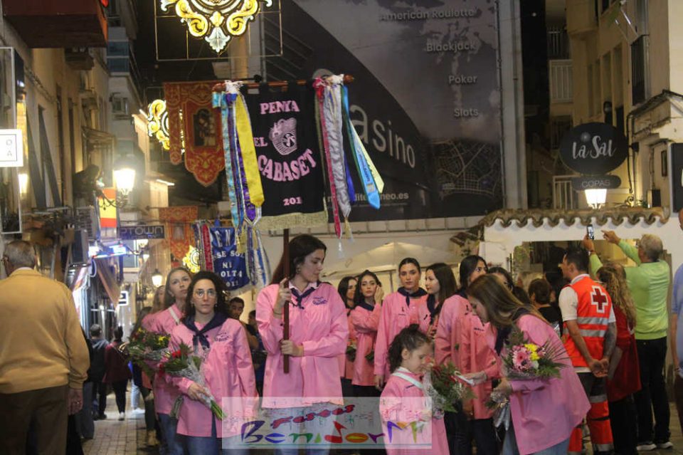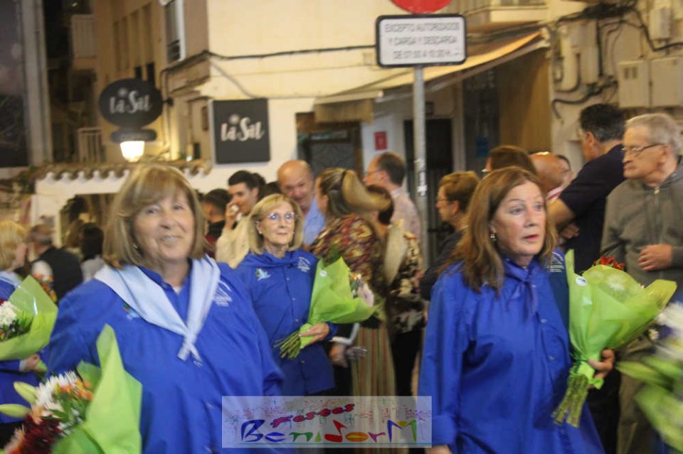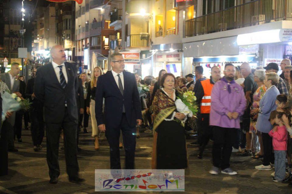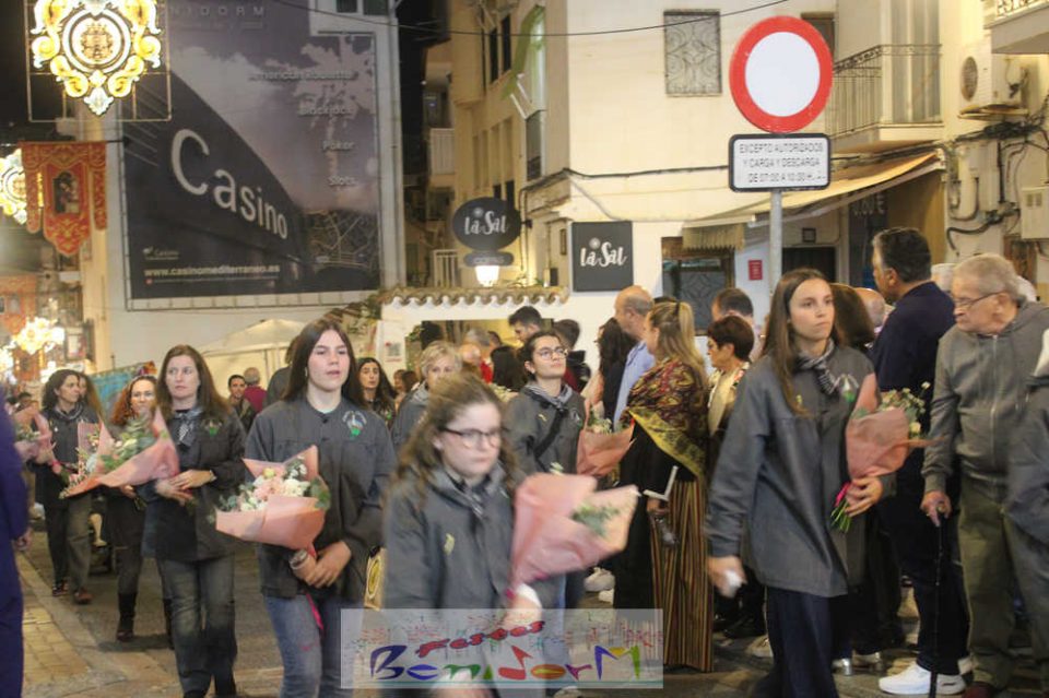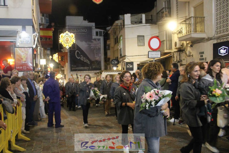 Centenares de benidormenses, vecinos de otras poblaciones y turistas participaron o aplaudieron este desfile a lo largo de todo el recorrido. Y quienes salieron en él lo hicieron portando vistosos y coloridos ramos o cestas de flores en señal de devoción a la patrona, a la que lanzaron besos, pidieron protección o ante la cual derramaron lágrimas de emoción o tristeza por el recuerdo de seres queridos.