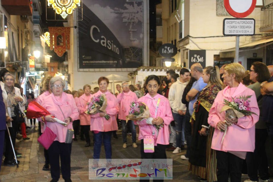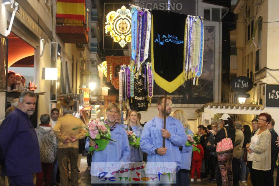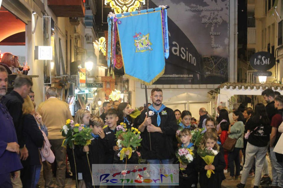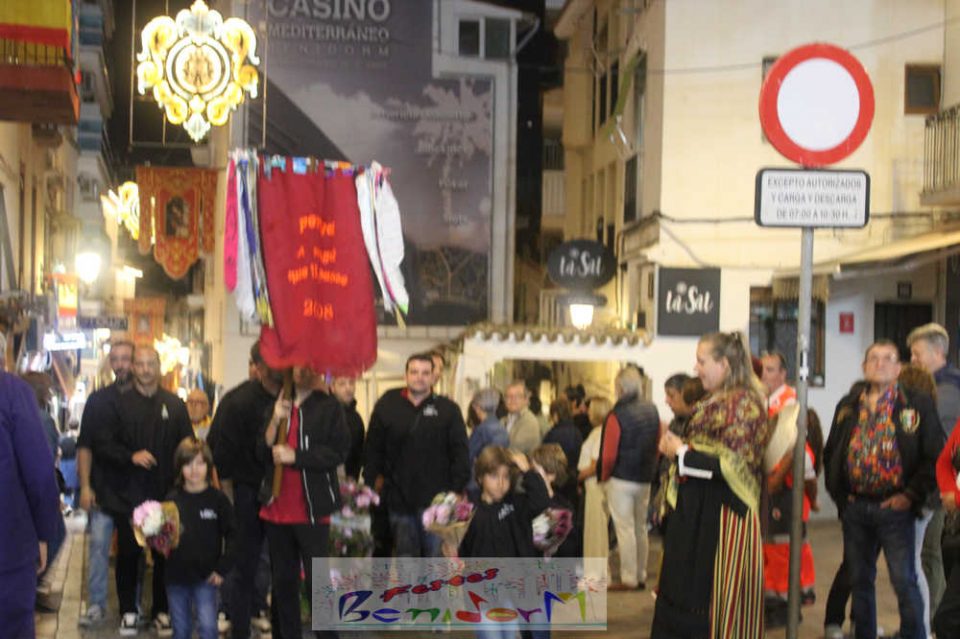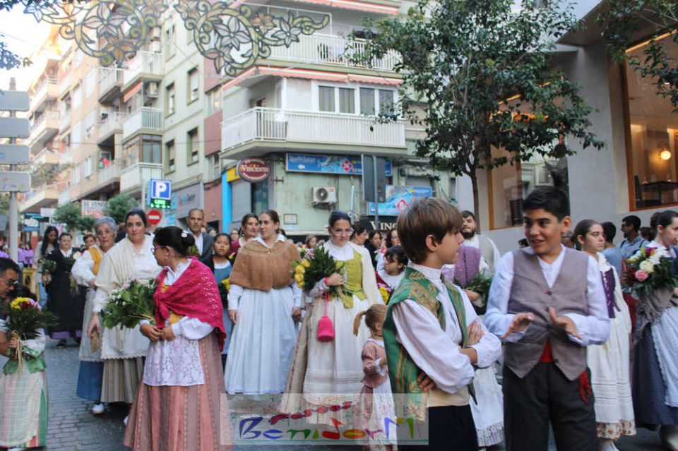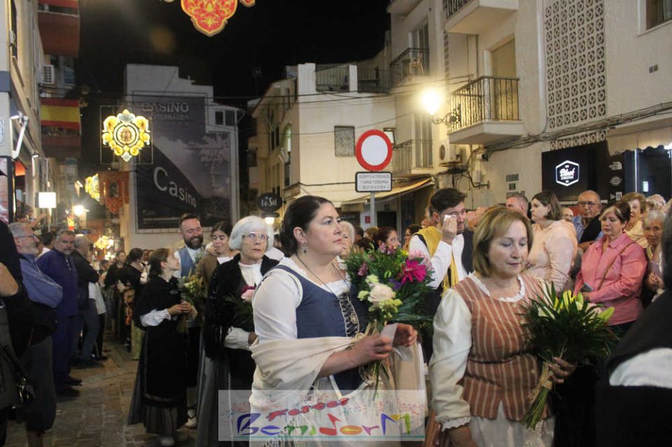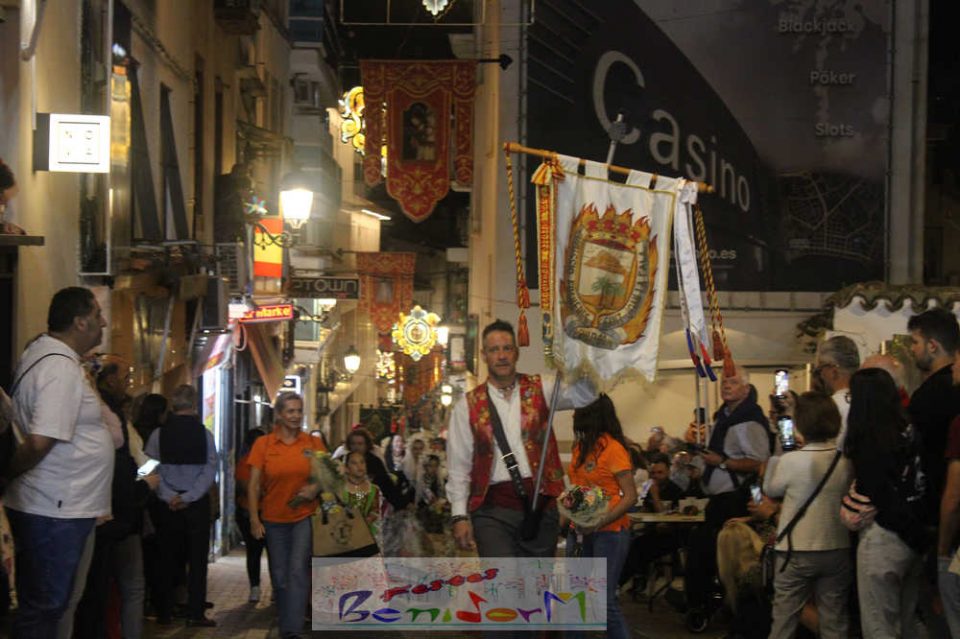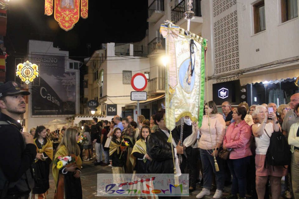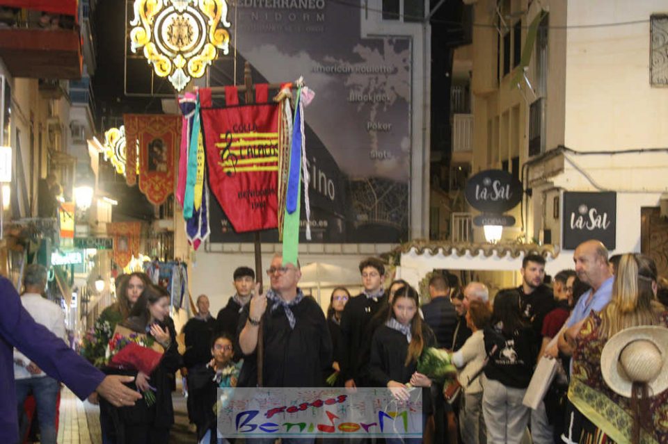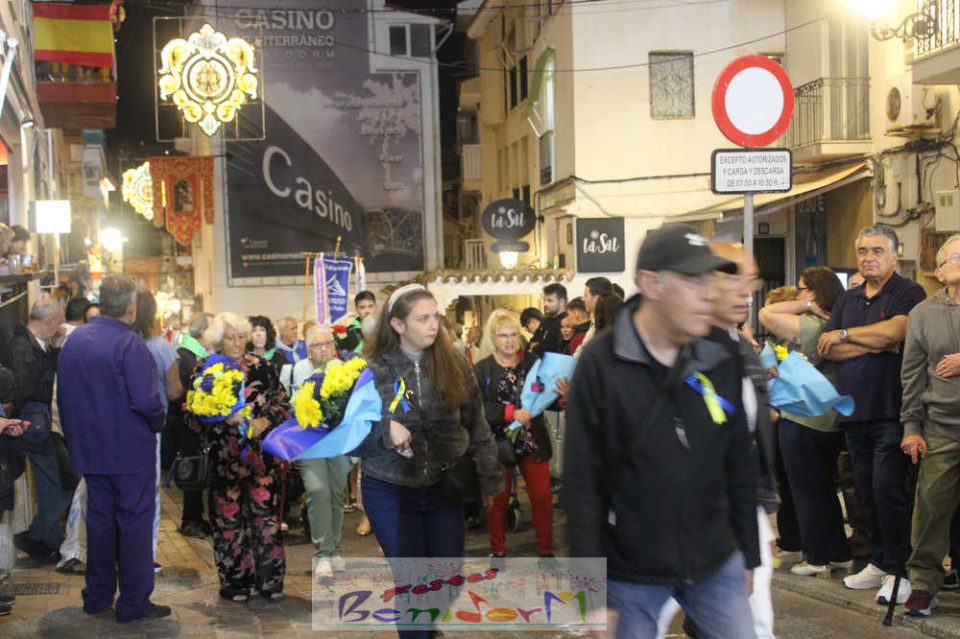 Centenares de benidormenses, vecinos de otras poblaciones y turistas participaron o aplaudieron este desfile a lo largo de todo el recorrido. Y quienes salieron en él lo hicieron portando vistosos y coloridos ramos o cestas de flores en señal de devoción a la patrona, a la que lanzaron besos, pidieron protección o ante la cual derramaron lágrimas de emoción o tristeza por el recuerdo de seres queridos.