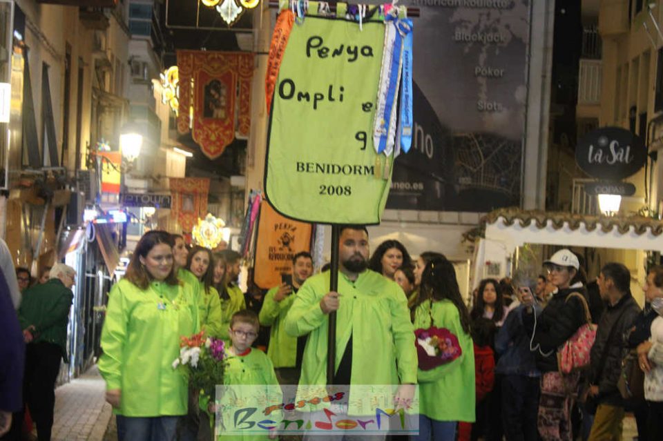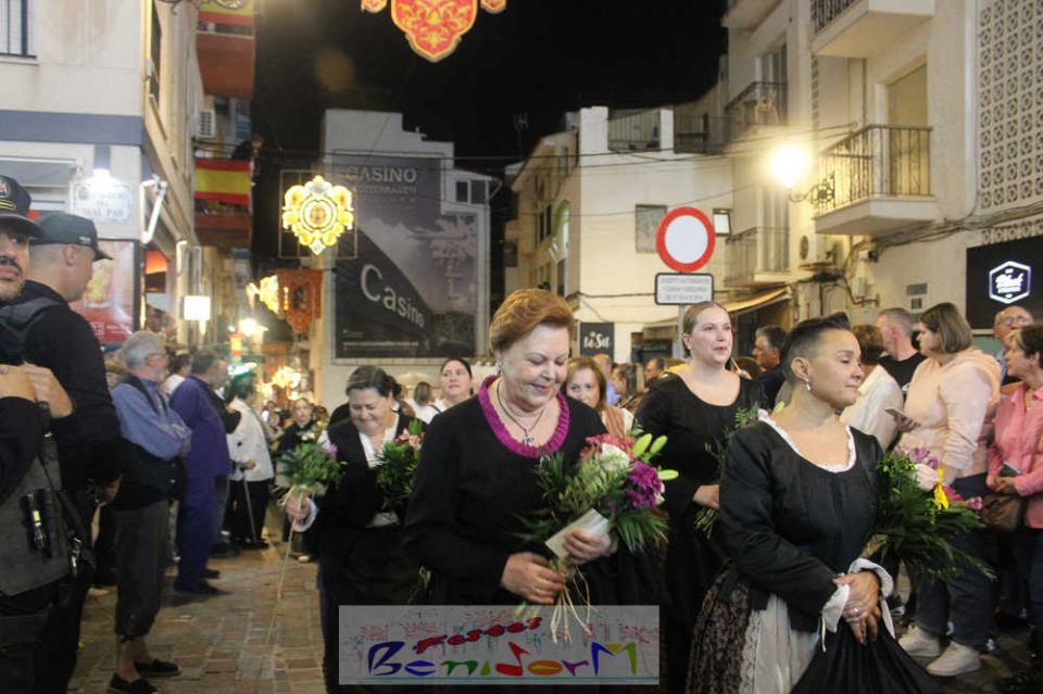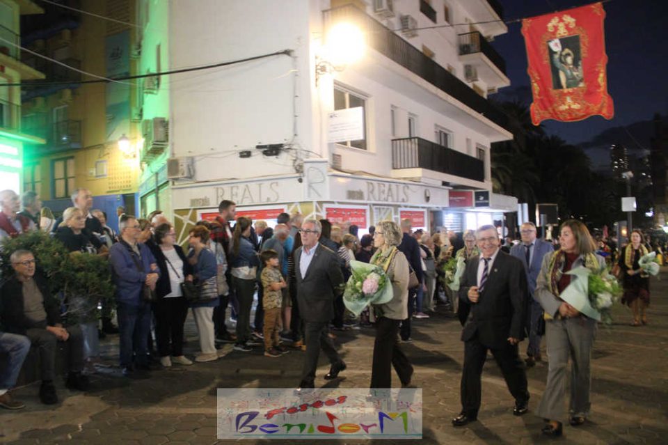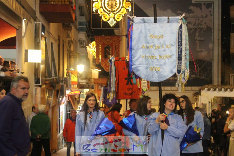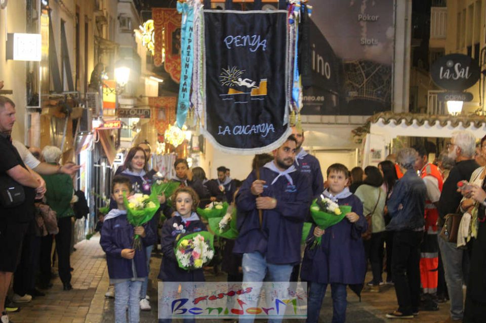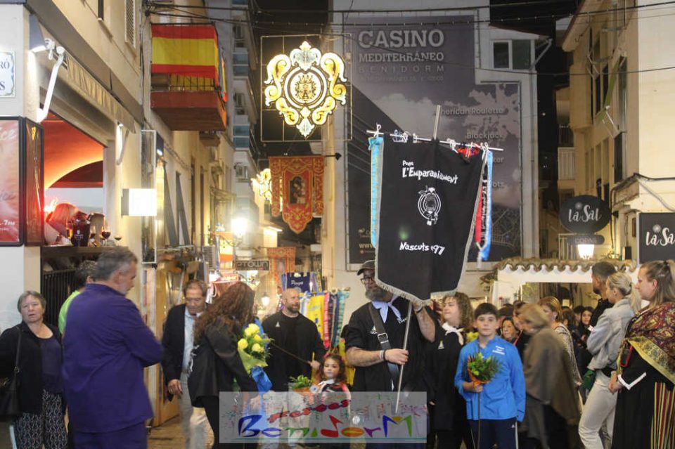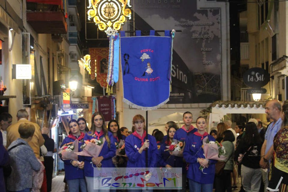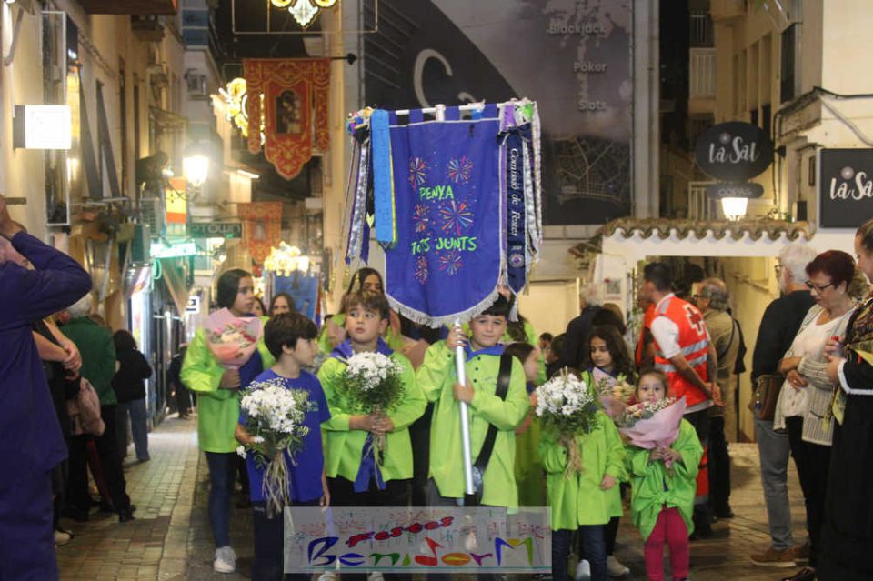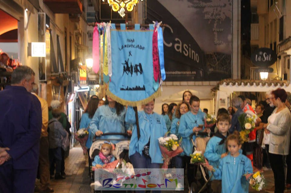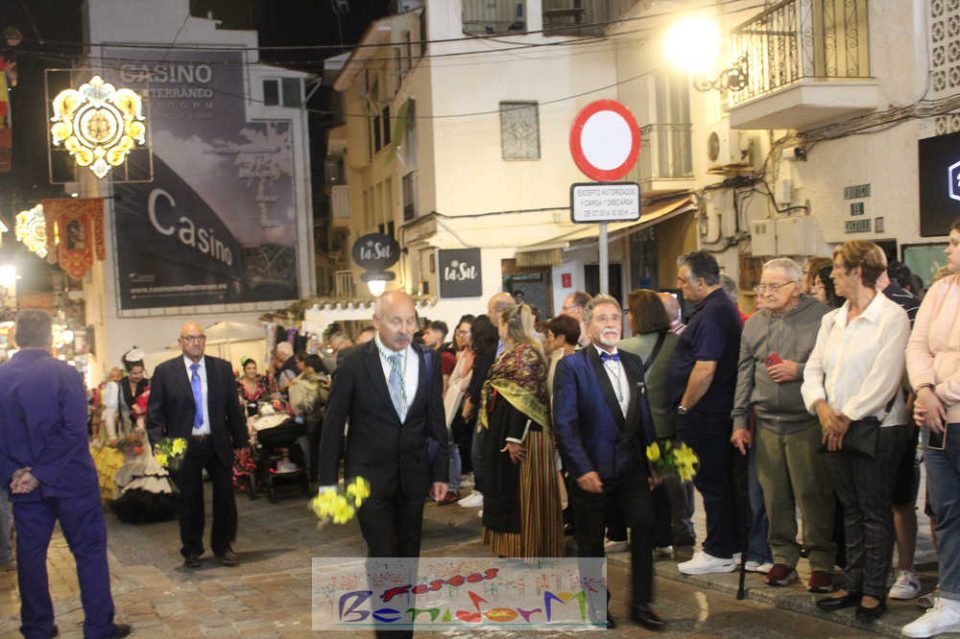 Centenares de benidormenses, vecinos de otras poblaciones y turistas participaron o aplaudieron este desfile a lo largo de todo el recorrido. Y quienes salieron en él lo hicieron portando vistosos y coloridos ramos o cestas de flores en señal de devoción a la patrona, a la que lanzaron besos, pidieron protección o ante la cual derramaron lágrimas de emoción o tristeza por el recuerdo de seres queridos.