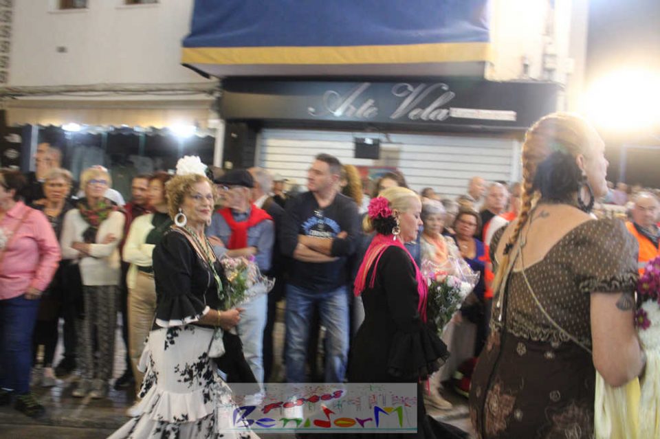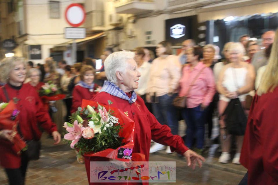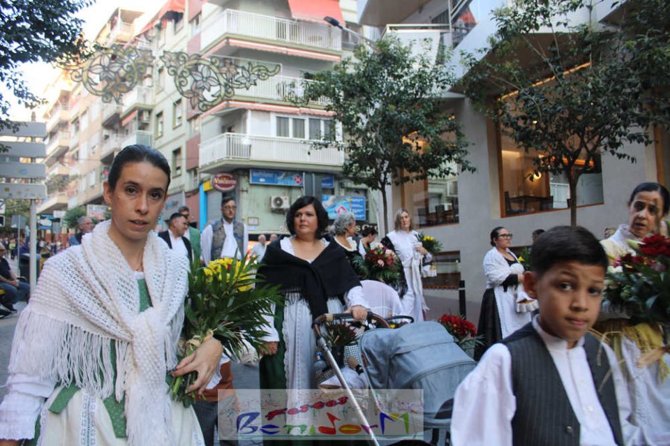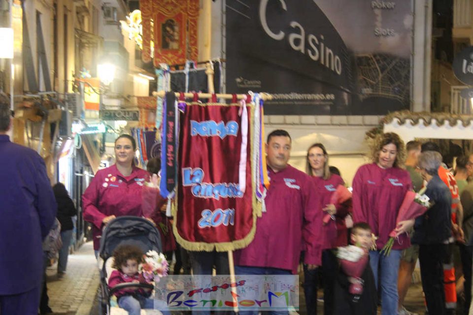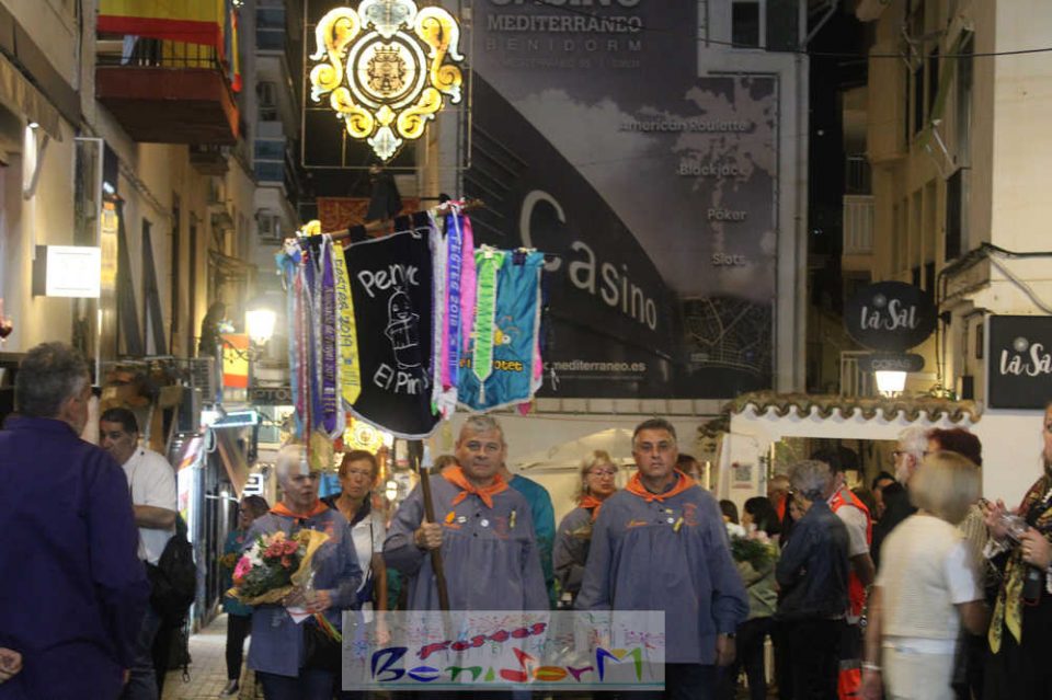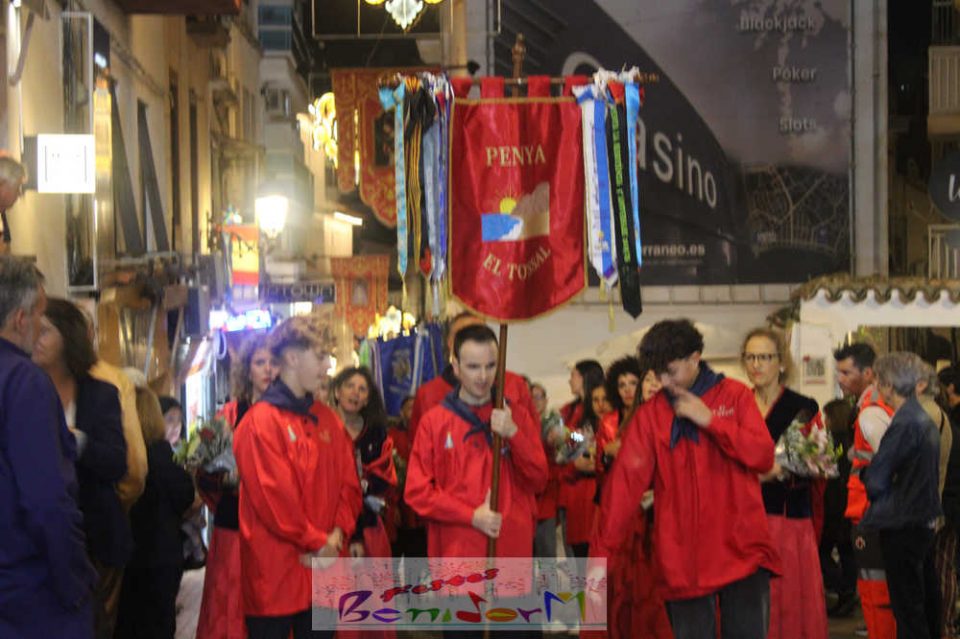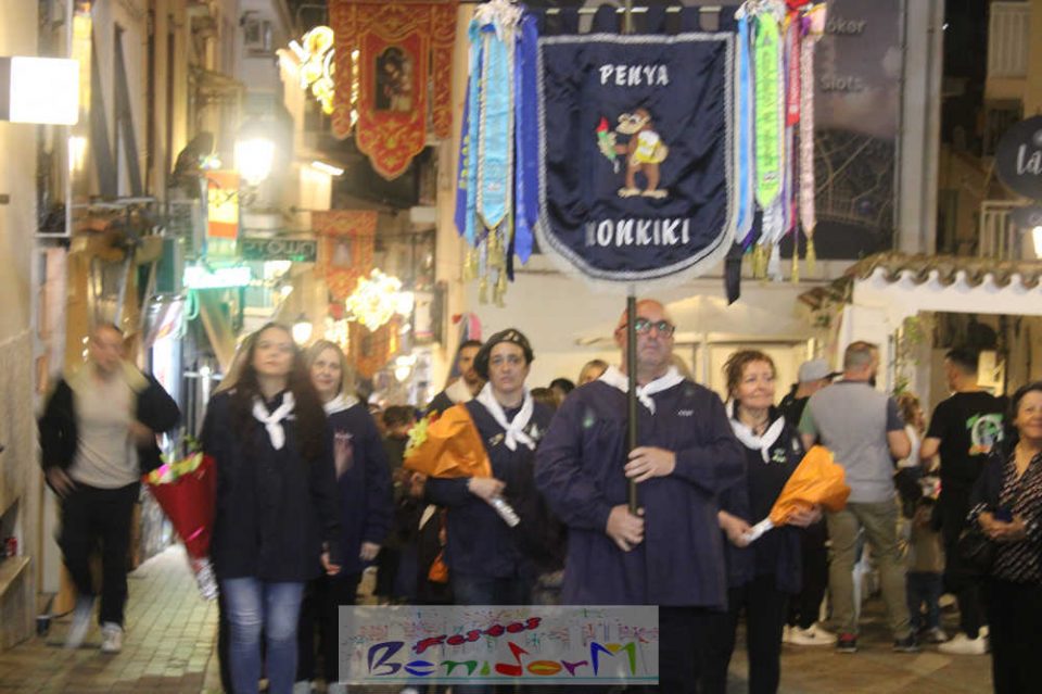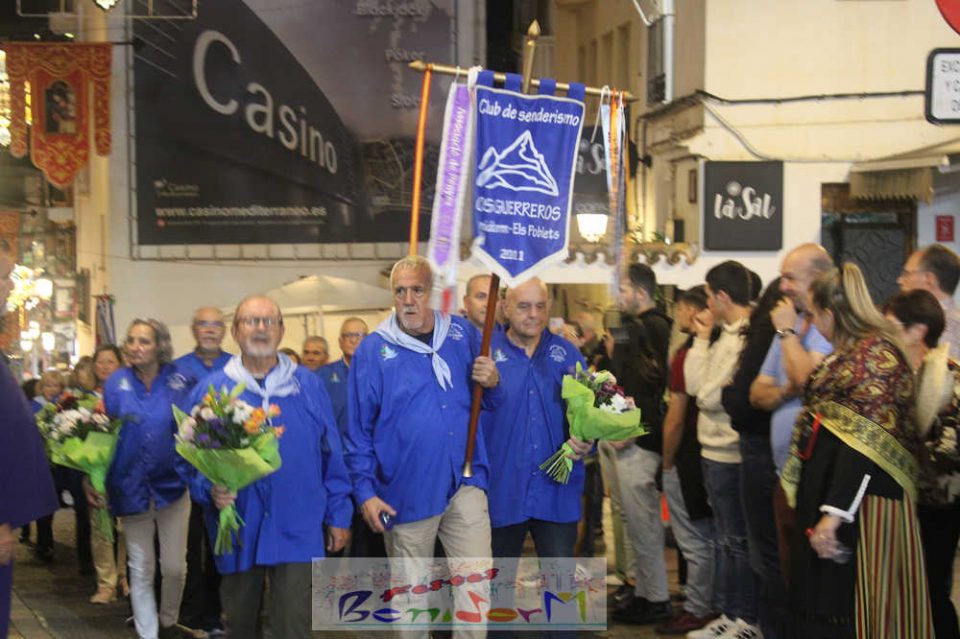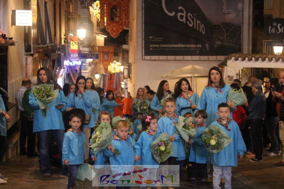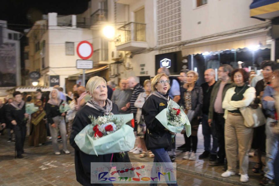 Centenares de benidormenses, vecinos de otras poblaciones y turistas participaron o aplaudieron este desfile a lo largo de todo el recorrido. Y quienes salieron en él lo hicieron portando vistosos y coloridos ramos o cestas de flores en señal de devoción a la patrona, a la que lanzaron besos, pidieron protección o ante la cual derramaron lágrimas de emoción o tristeza por el recuerdo de seres queridos.