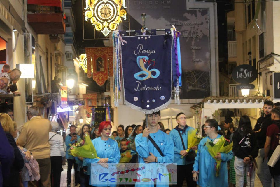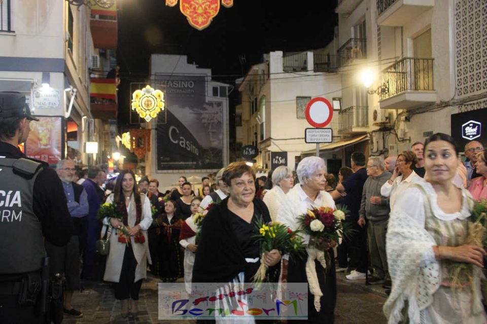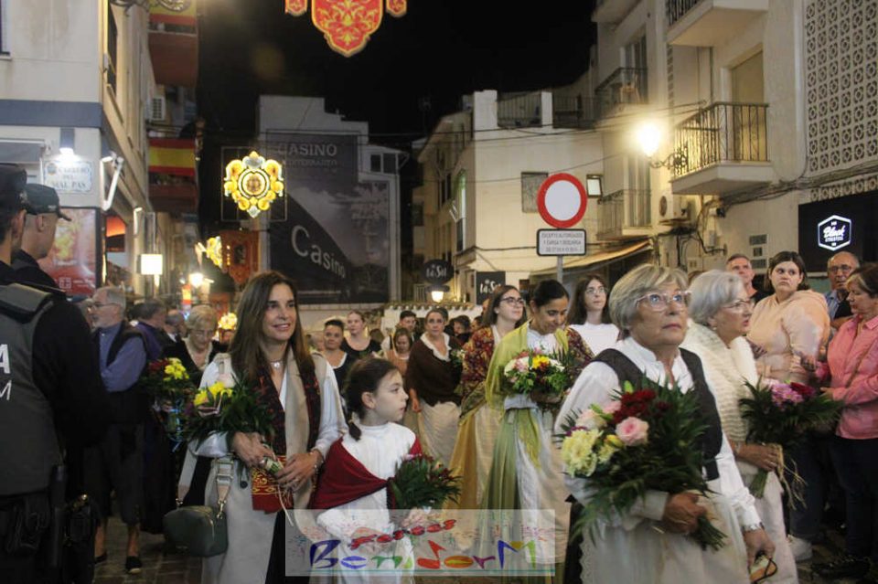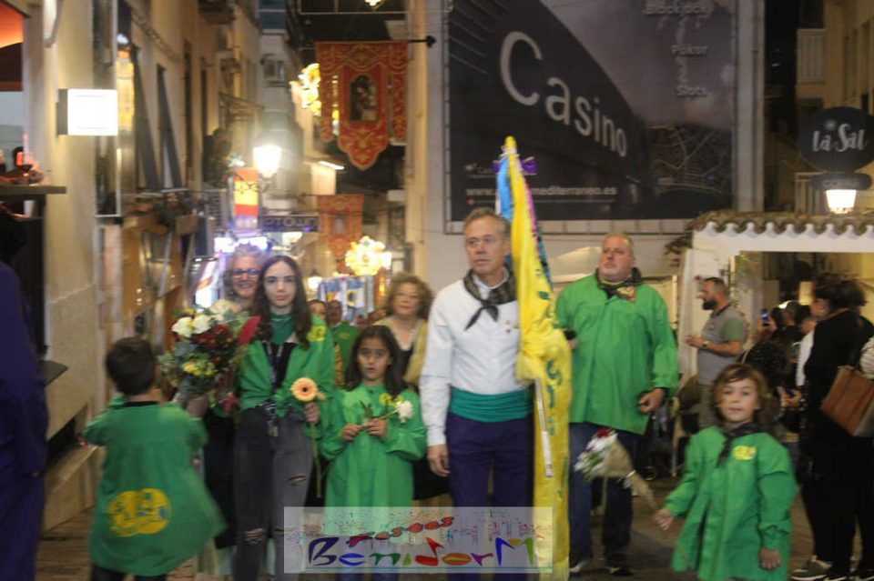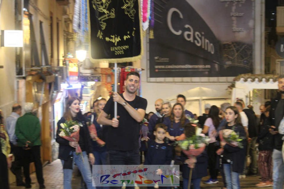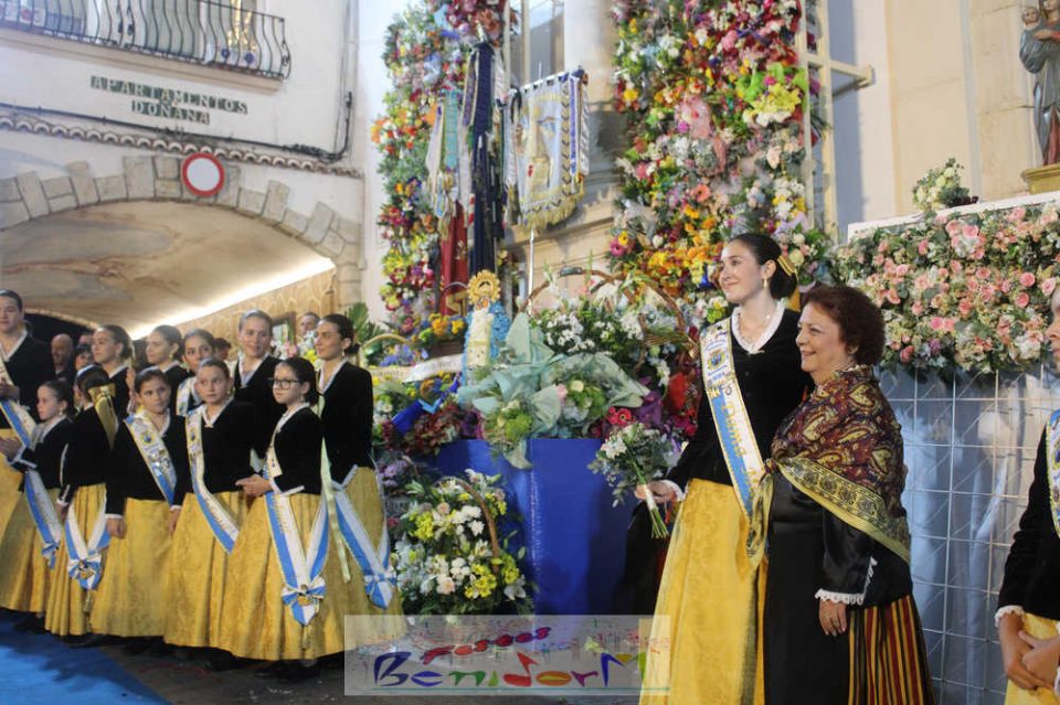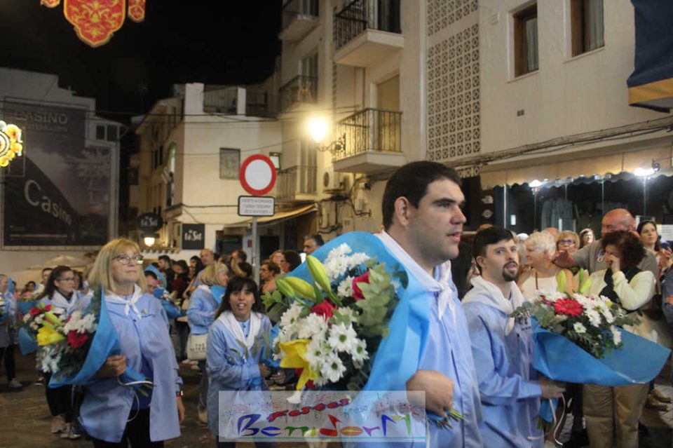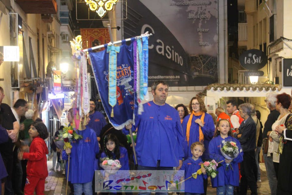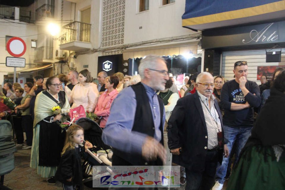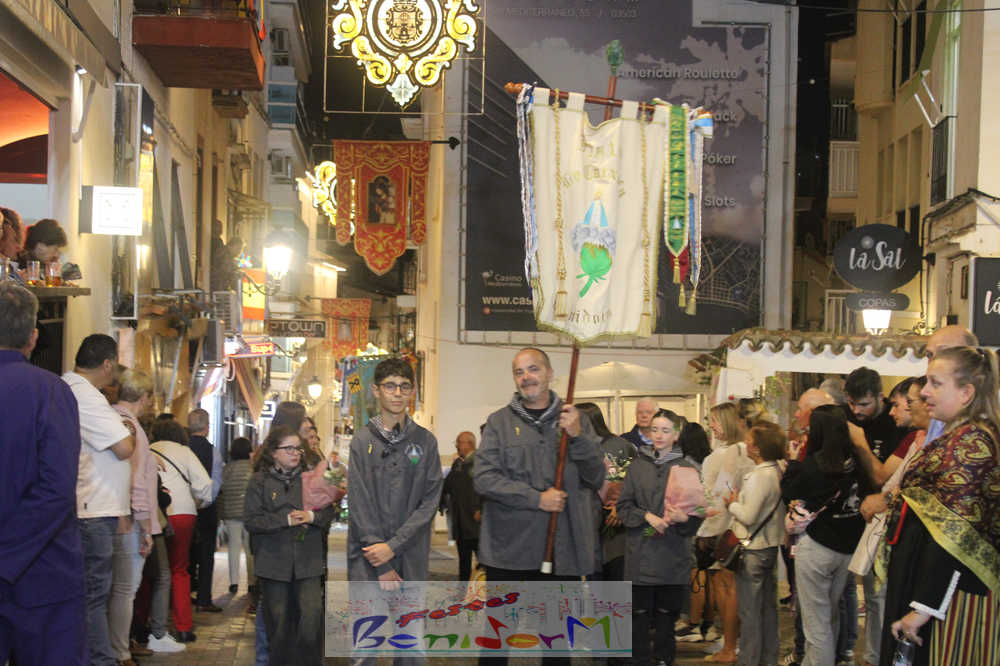 Centenares de benidormenses, vecinos de otras poblaciones y turistas participaron o aplaudieron este desfile a lo largo de todo el recorrido. Y quienes salieron en él lo hicieron portando vistosos y coloridos ramos o cestas de flores en señal de devoción a la patrona, a la que lanzaron besos, pidieron protección o ante la cual derramaron lágrimas de emoción o tristeza por el recuerdo de seres queridos.