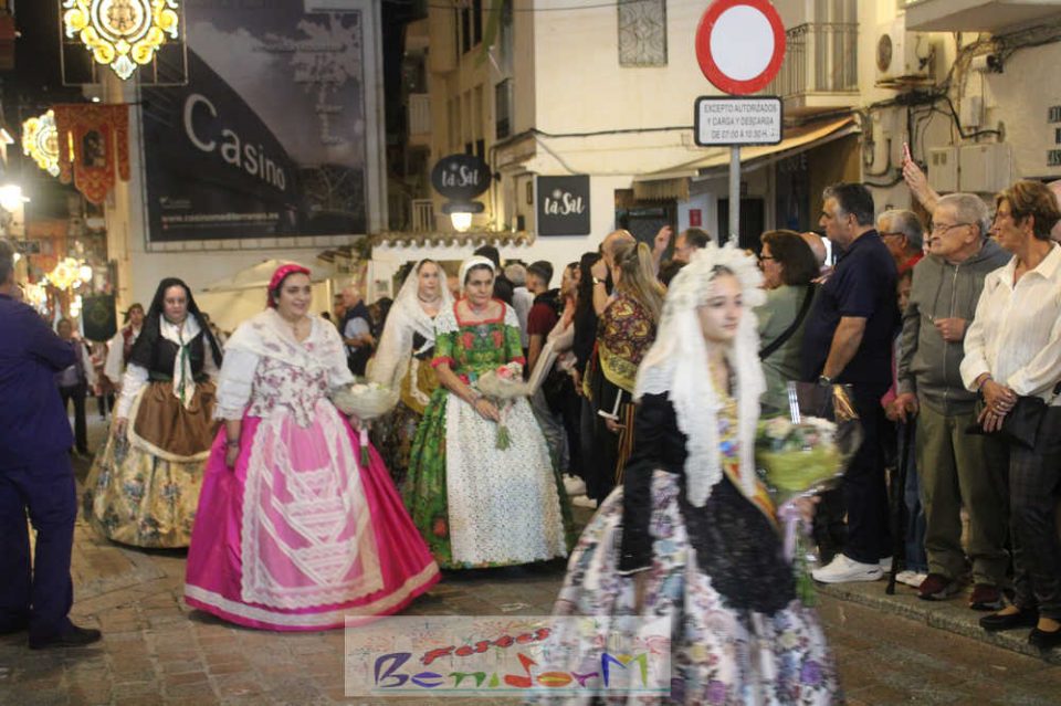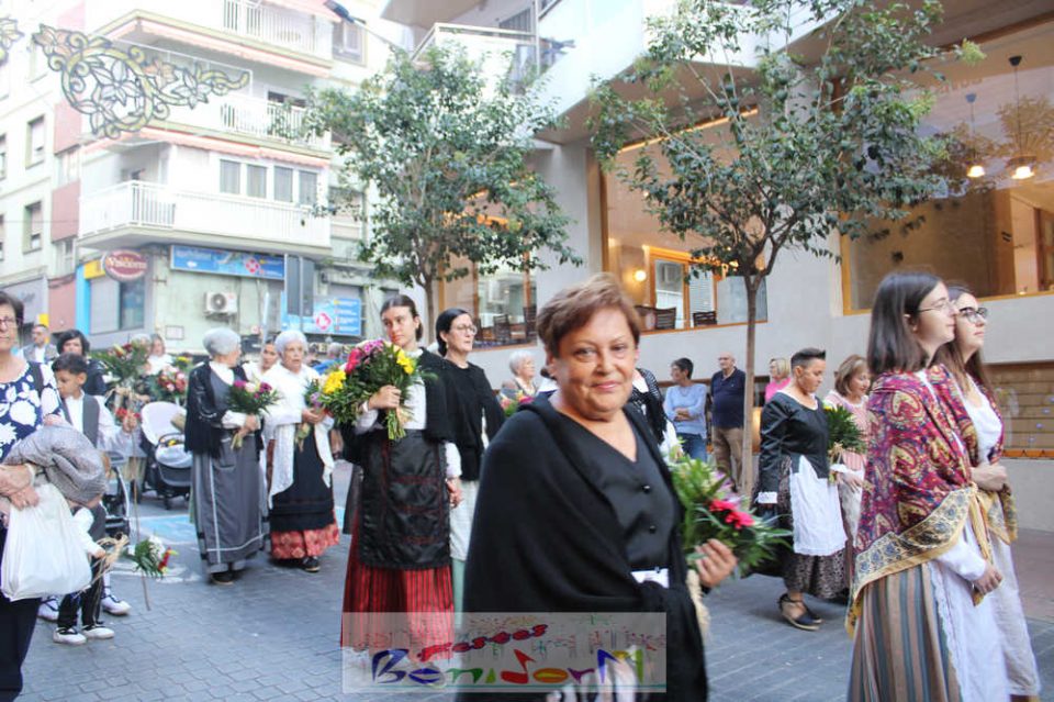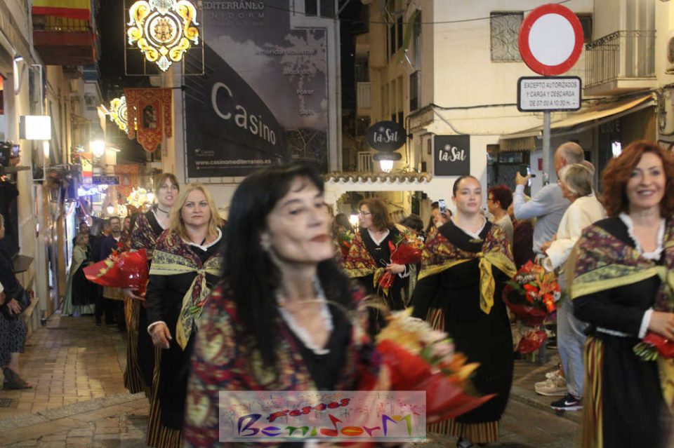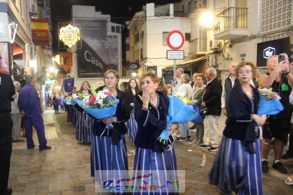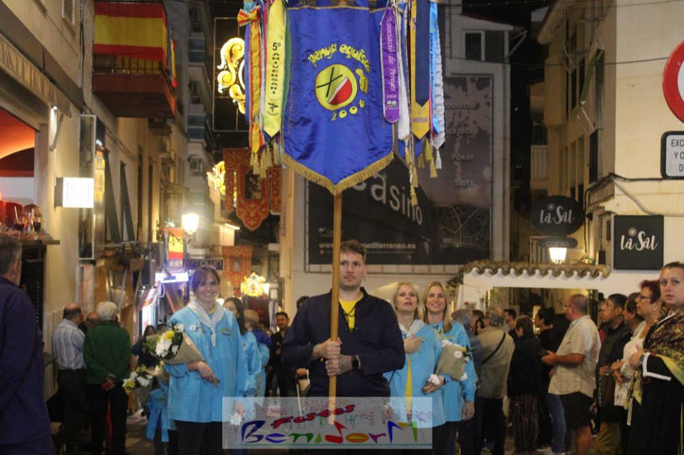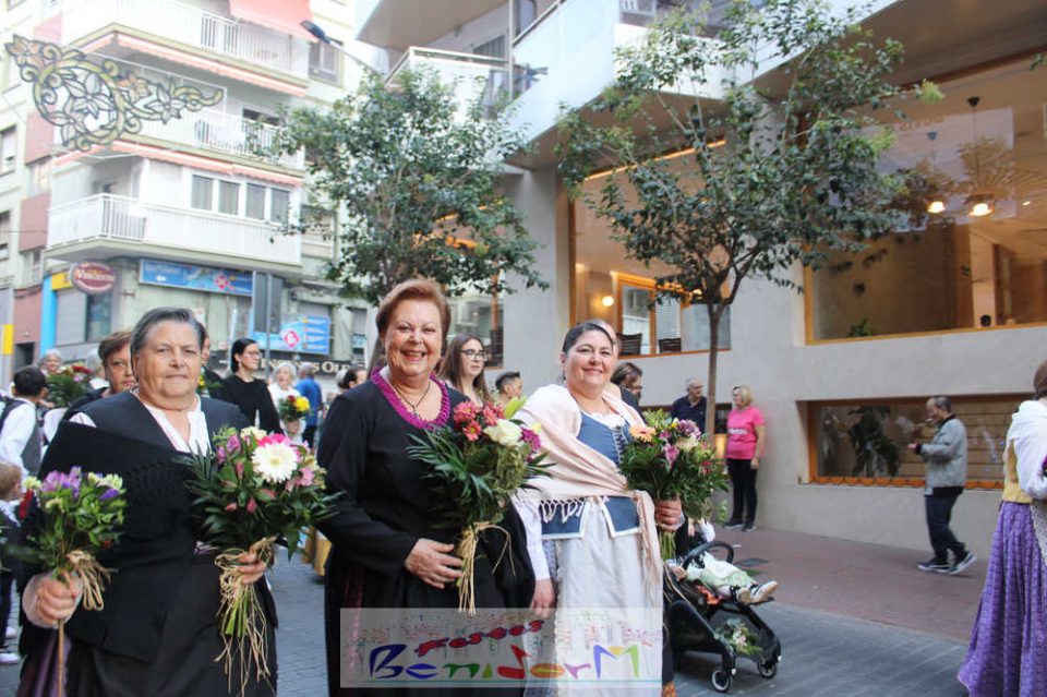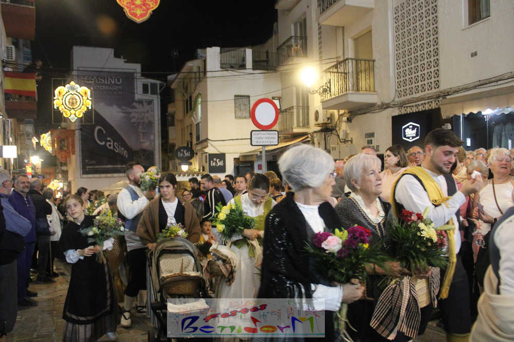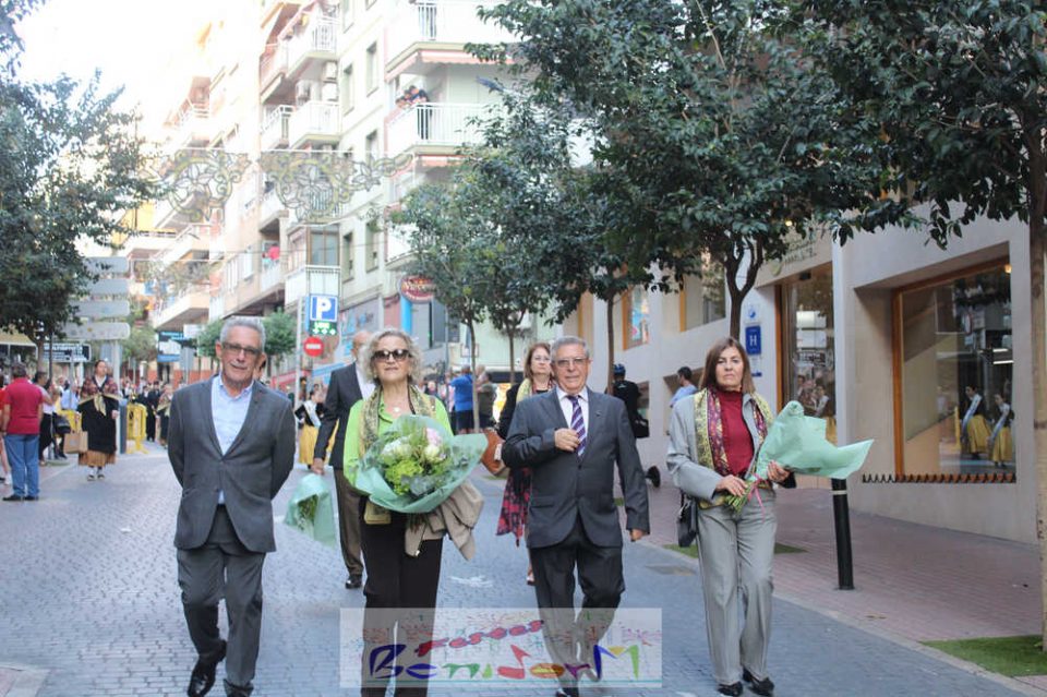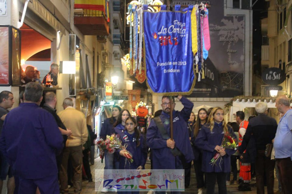 Centenares de benidormenses, vecinos de otras poblaciones y turistas participaron o aplaudieron este desfile a lo largo de todo el recorrido. Y quienes salieron en él lo hicieron portando vistosos y coloridos ramos o cestas de flores en señal de devoción a la patrona, a la que lanzaron besos, pidieron protección o ante la cual derramaron lágrimas de emoción o tristeza por el recuerdo de seres queridos.