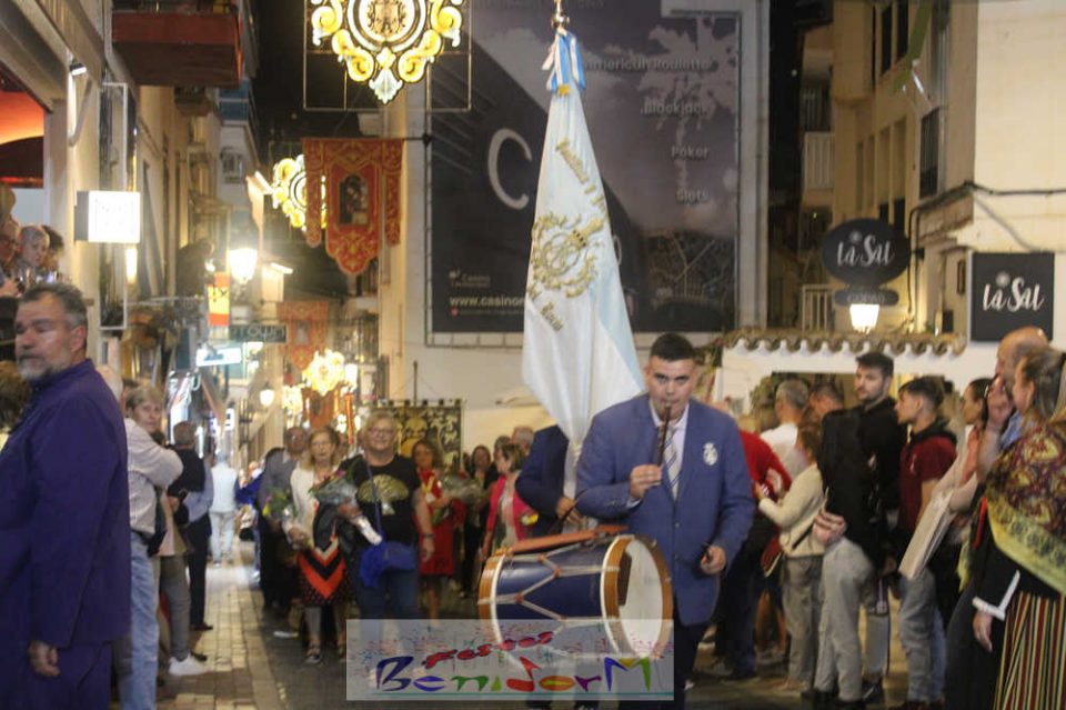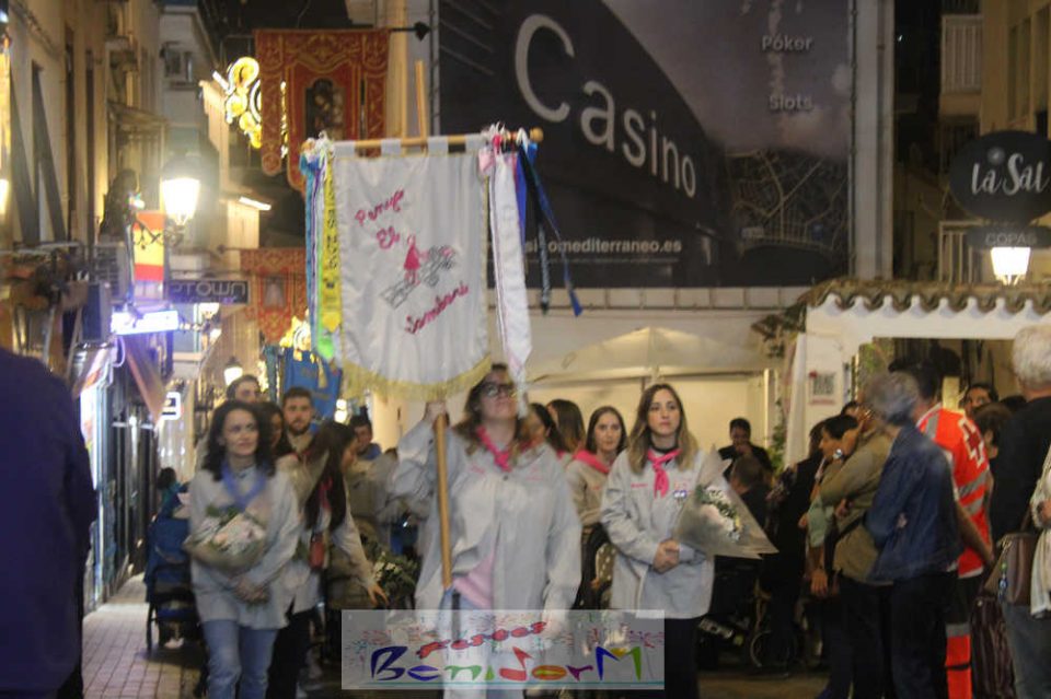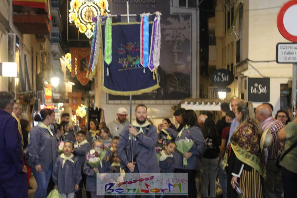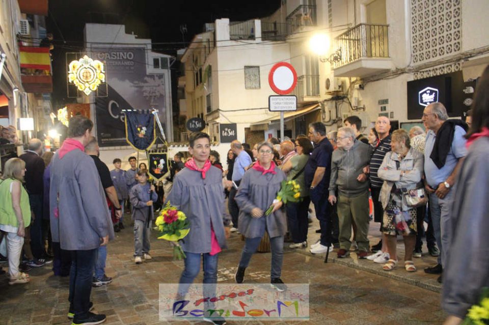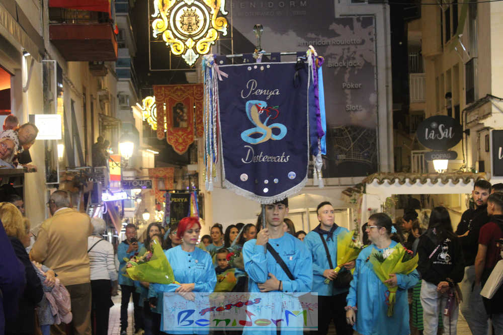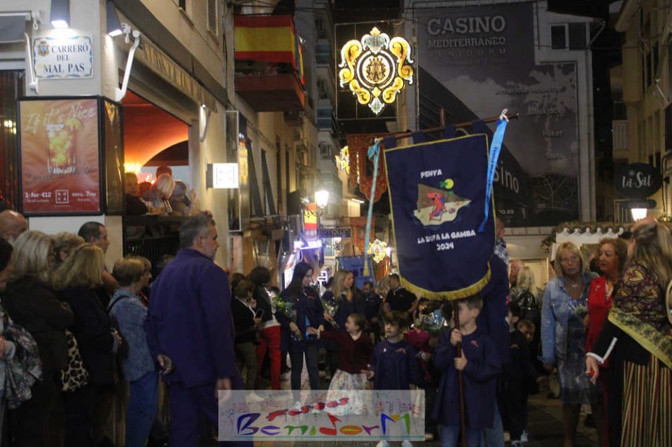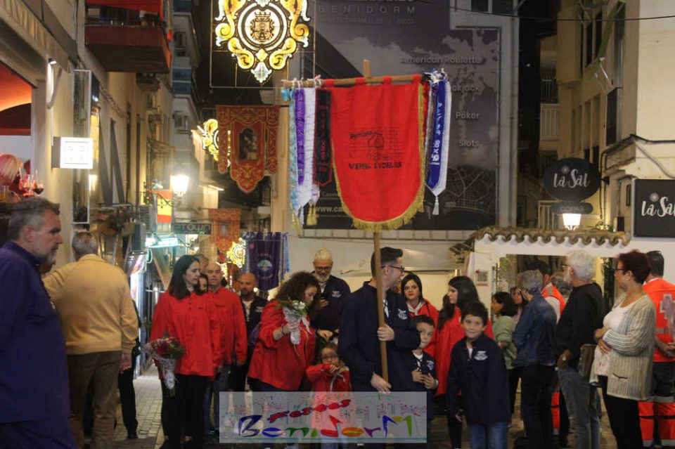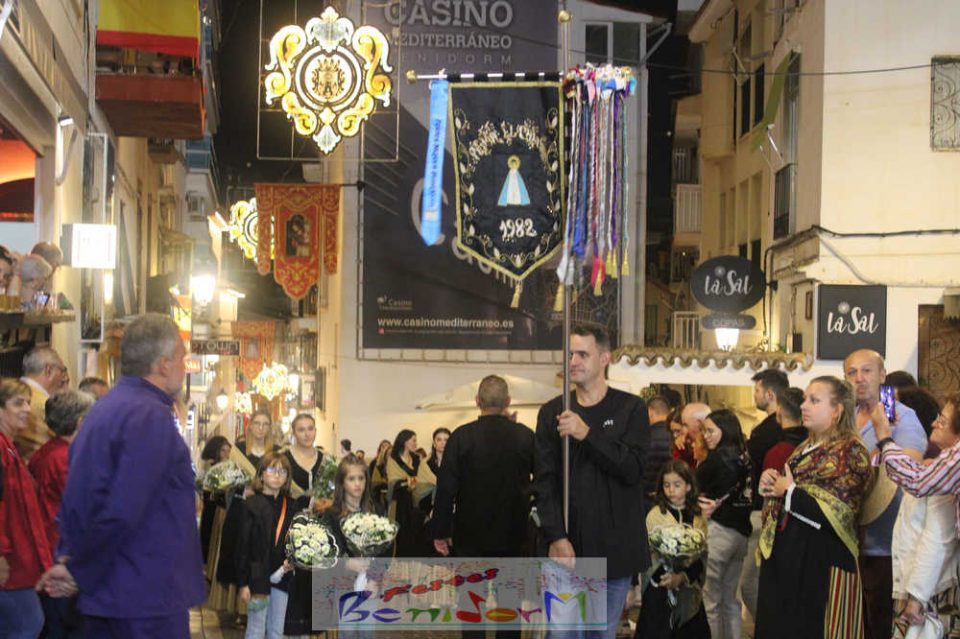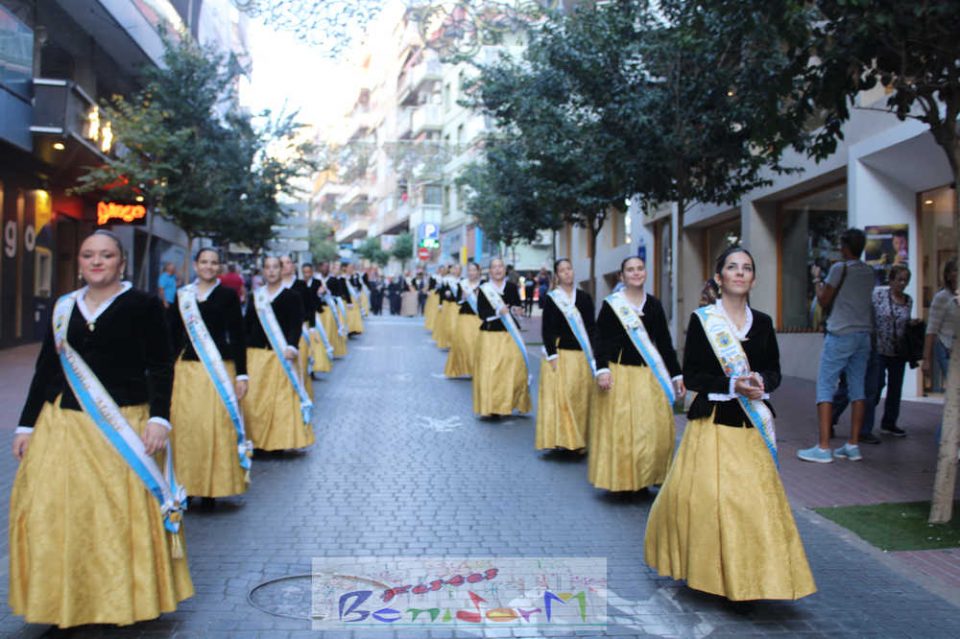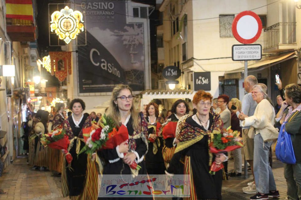 Centenares de benidormenses, vecinos de otras poblaciones y turistas participaron o aplaudieron este desfile a lo largo de todo el recorrido. Y quienes salieron en él lo hicieron portando vistosos y coloridos ramos o cestas de flores en señal de devoción a la patrona, a la que lanzaron besos, pidieron protección o ante la cual derramaron lágrimas de emoción o tristeza por el recuerdo de seres queridos.
