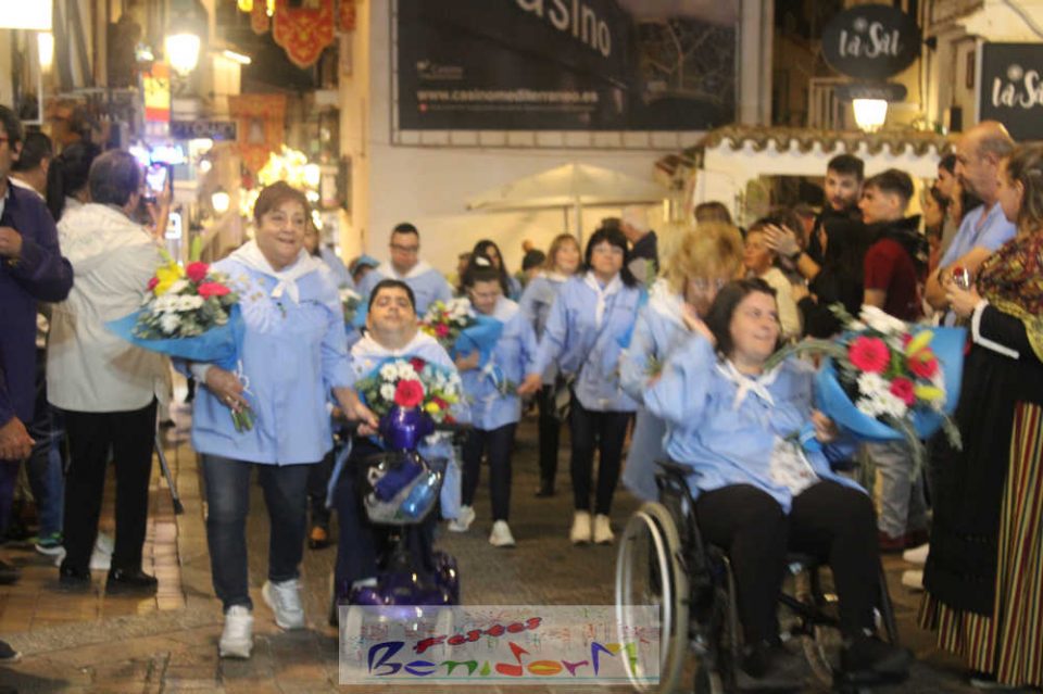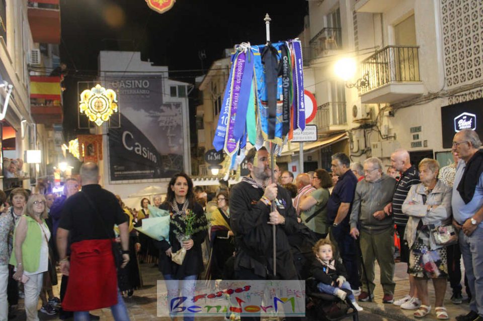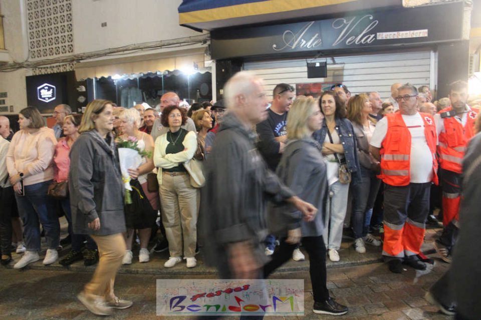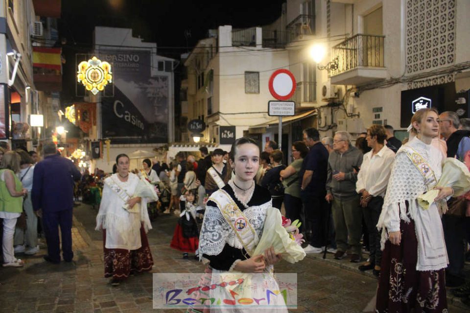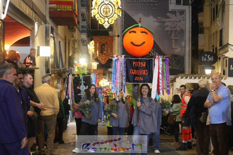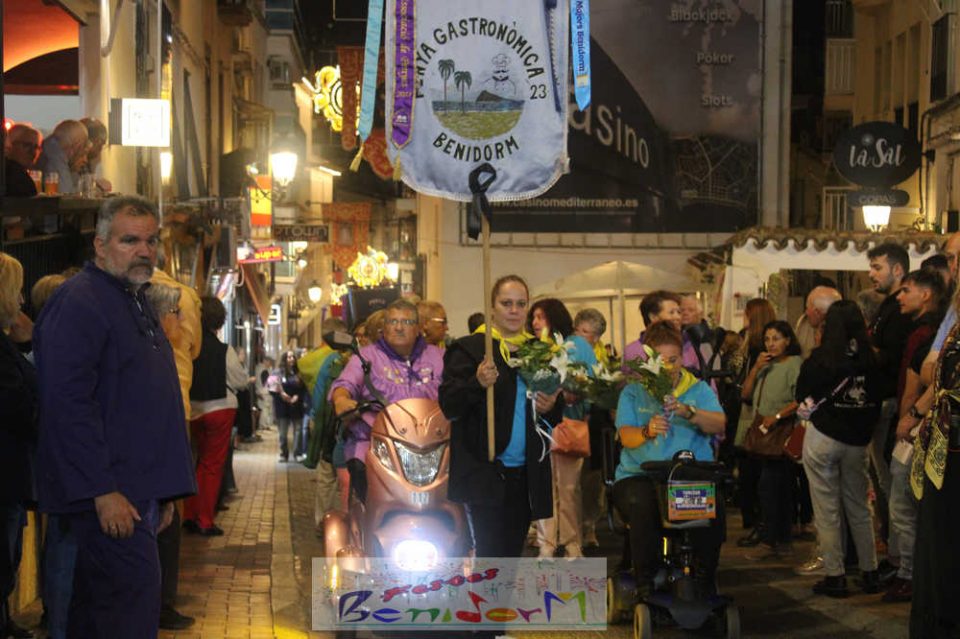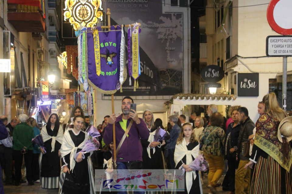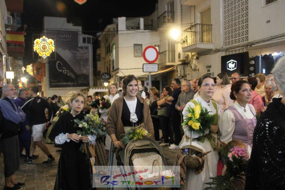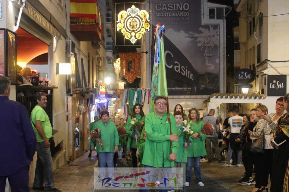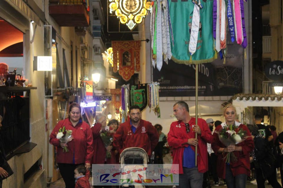 Centenares de benidormenses, vecinos de otras poblaciones y turistas participaron o aplaudieron este desfile a lo largo de todo el recorrido. Y quienes salieron en él lo hicieron portando vistosos y coloridos ramos o cestas de flores en señal de devoción a la patrona, a la que lanzaron besos, pidieron protección o ante la cual derramaron lágrimas de emoción o tristeza por el recuerdo de seres queridos.