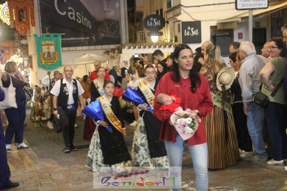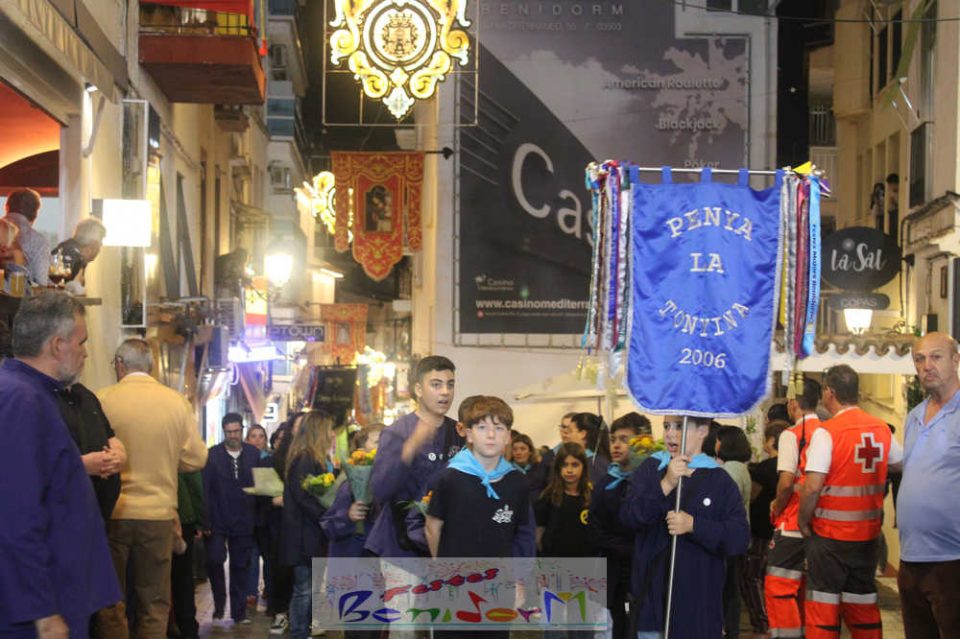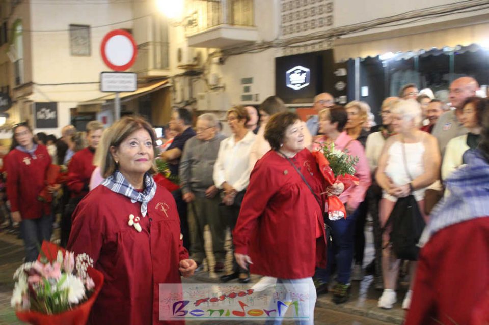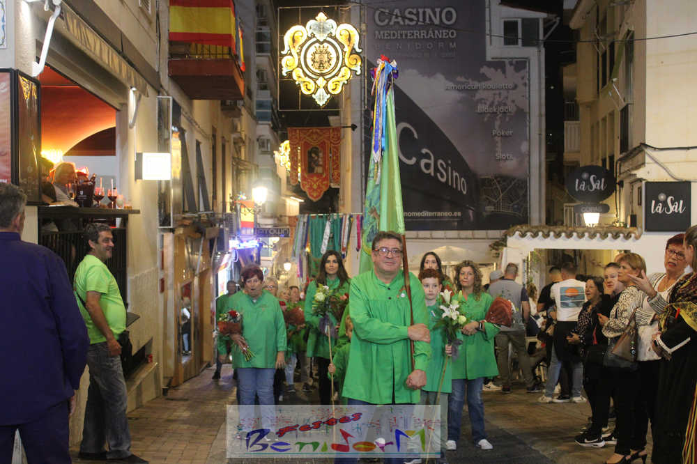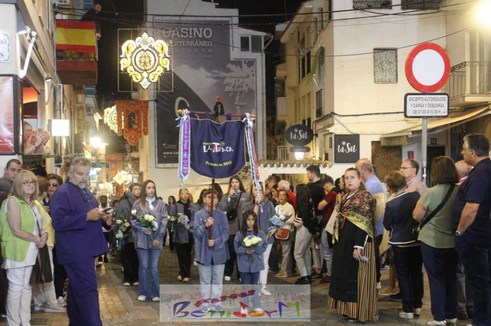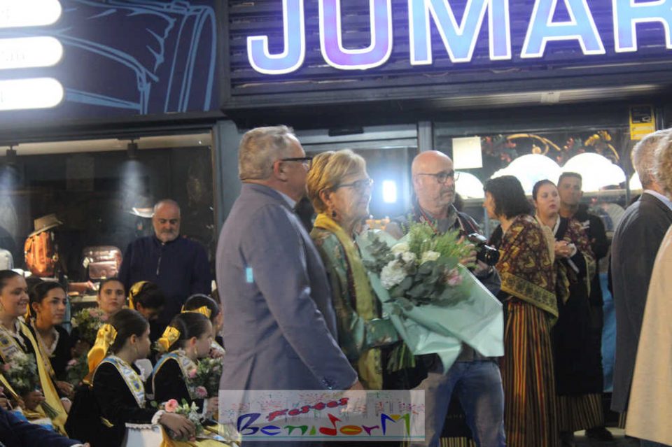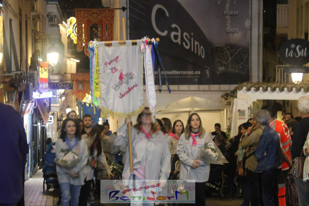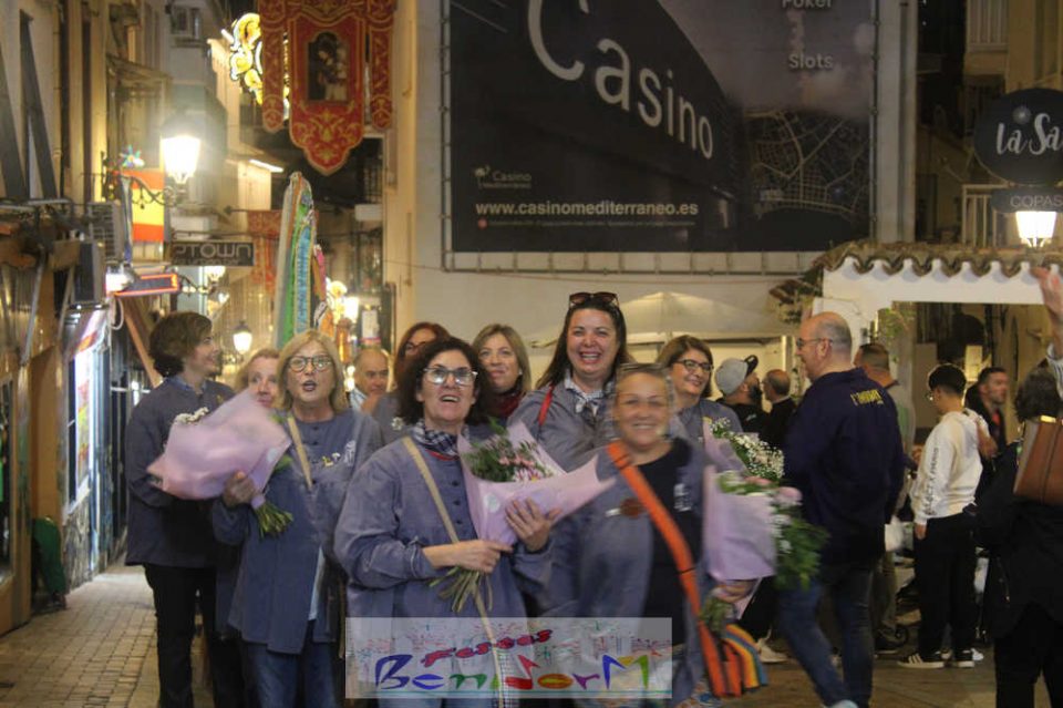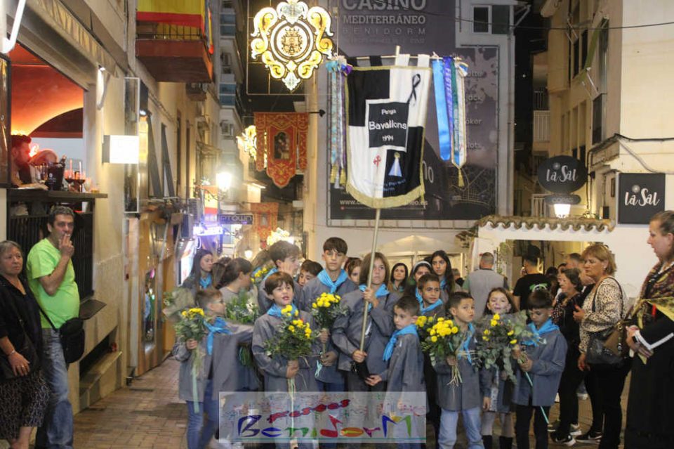 Centenares de benidormenses, vecinos de otras poblaciones y turistas participaron o aplaudieron este desfile a lo largo de todo el recorrido. Y quienes salieron en él lo hicieron portando vistosos y coloridos ramos o cestas de flores en señal de devoción a la patrona, a la que lanzaron besos, pidieron protección o ante la cual derramaron lágrimas de emoción o tristeza por el recuerdo de seres queridos.